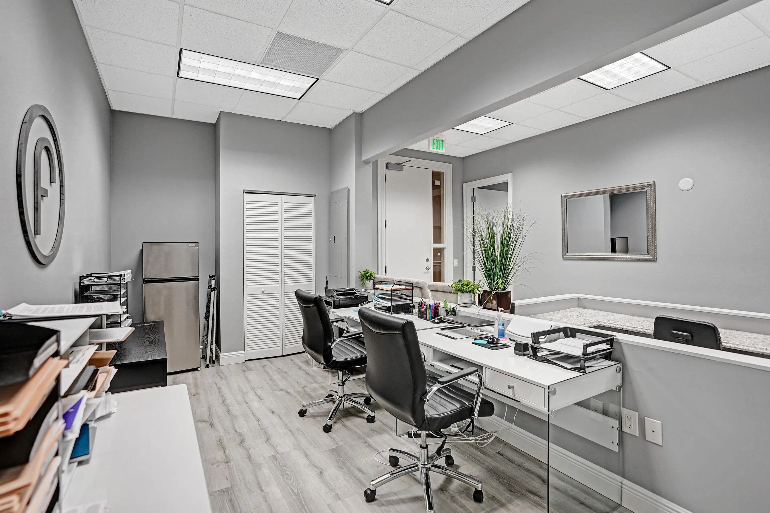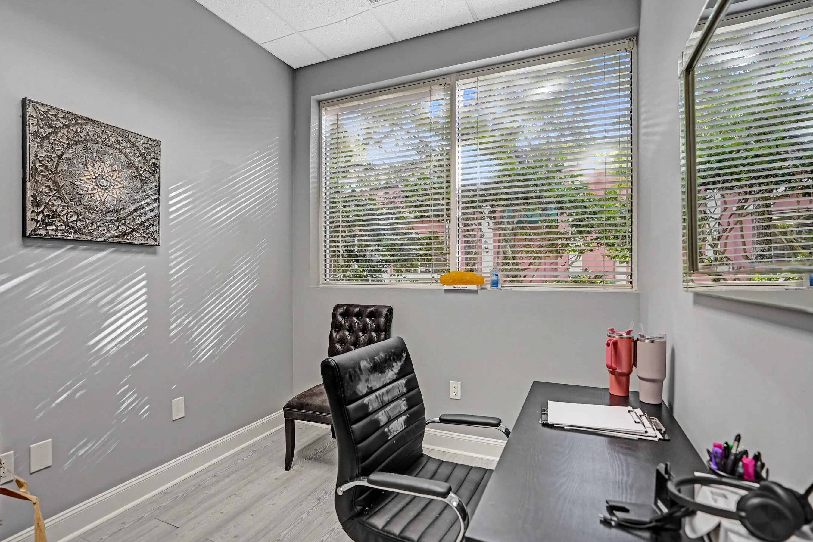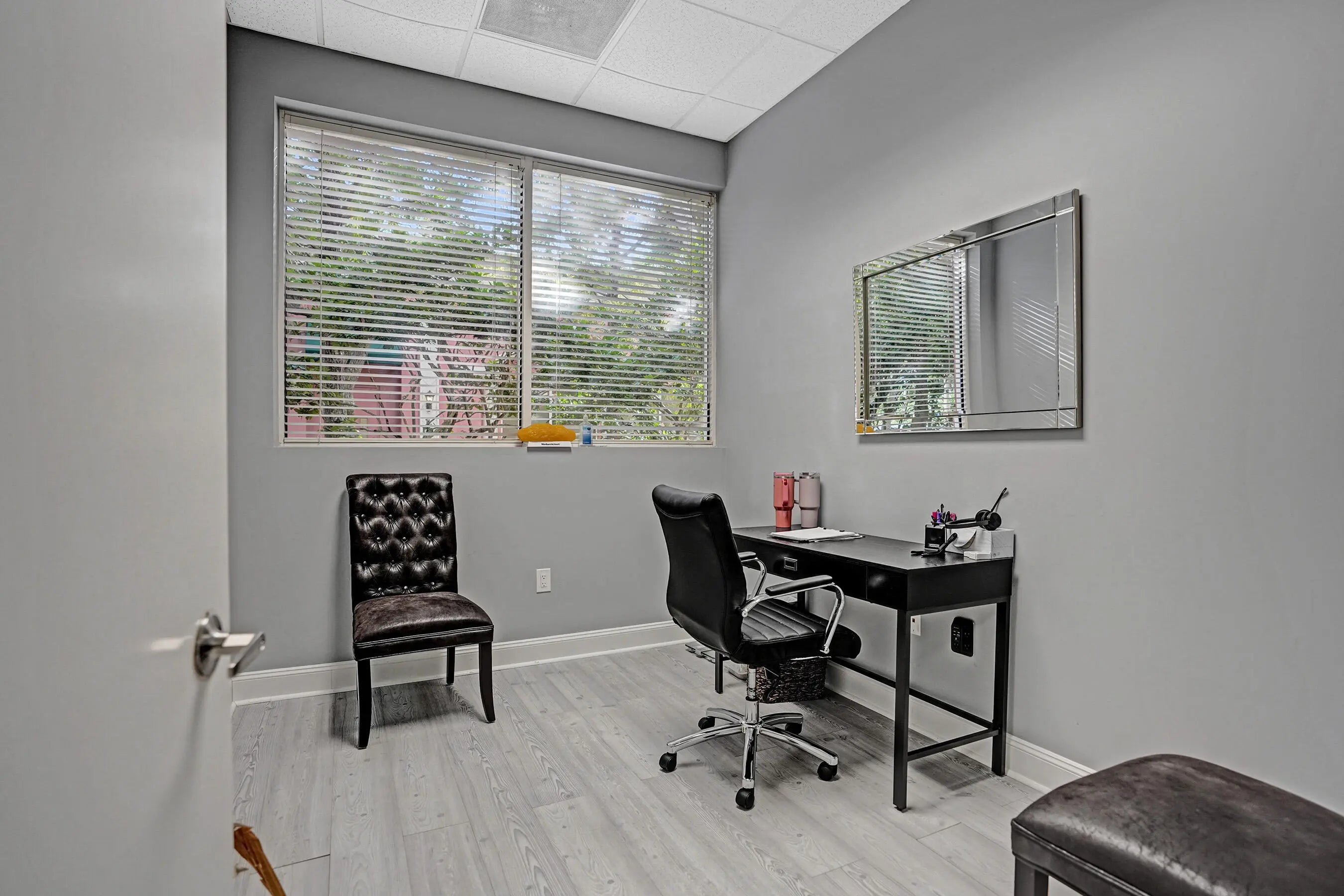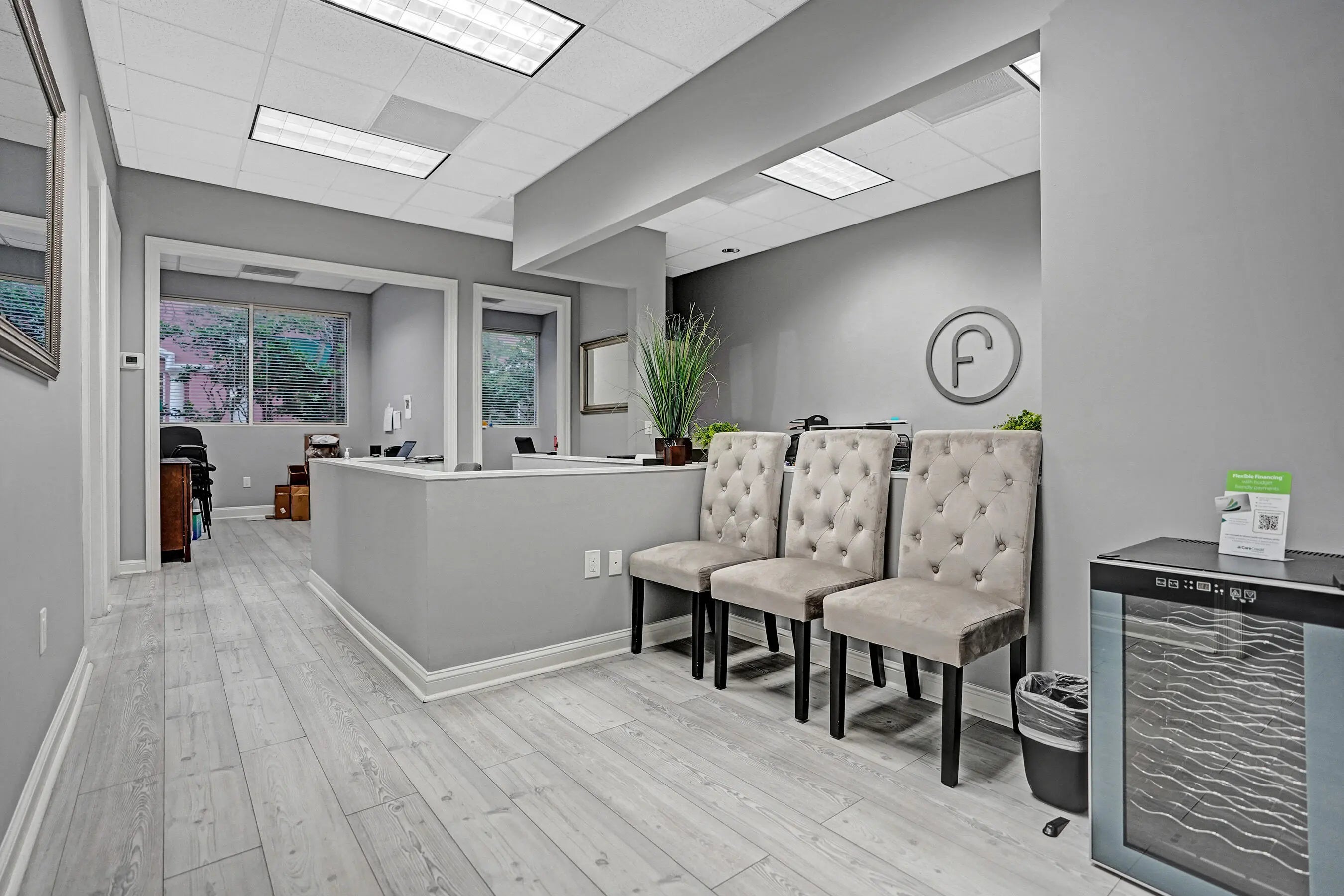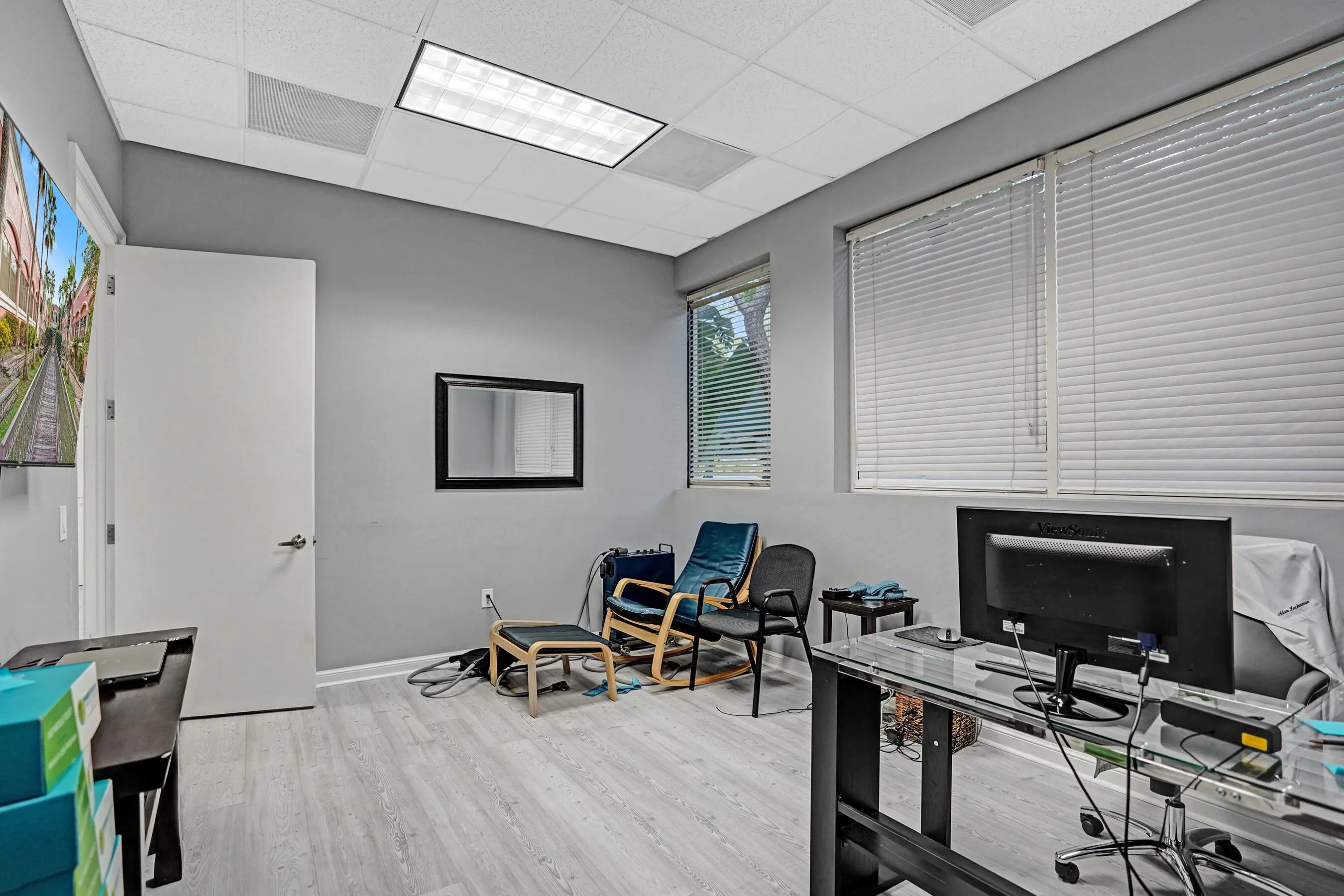 Suite #102 at The Addison features 4 private offices with additional open space that could be a conference room, plus dedicated reception desk, waiting area, & sink station. Great for professional or light medical uses. The recent improvements include updated flooring, lighting, Solid doors, paint, & trim. The suite also includes one (1) assigned and covered parking space, along with 100s of additional employee & visitor parking spaces. Restrooms and mailboxes are just steps down the hall and the campus grounds are kept in excellent condition (by onsite mgmt.) with scenic waiting areas great for any small business in Delray Beach. Very Easy to show with 1 hour notice, schedule a tour Today! Some of the office furnishings can be left; if that helps. Term is thru October of 2027