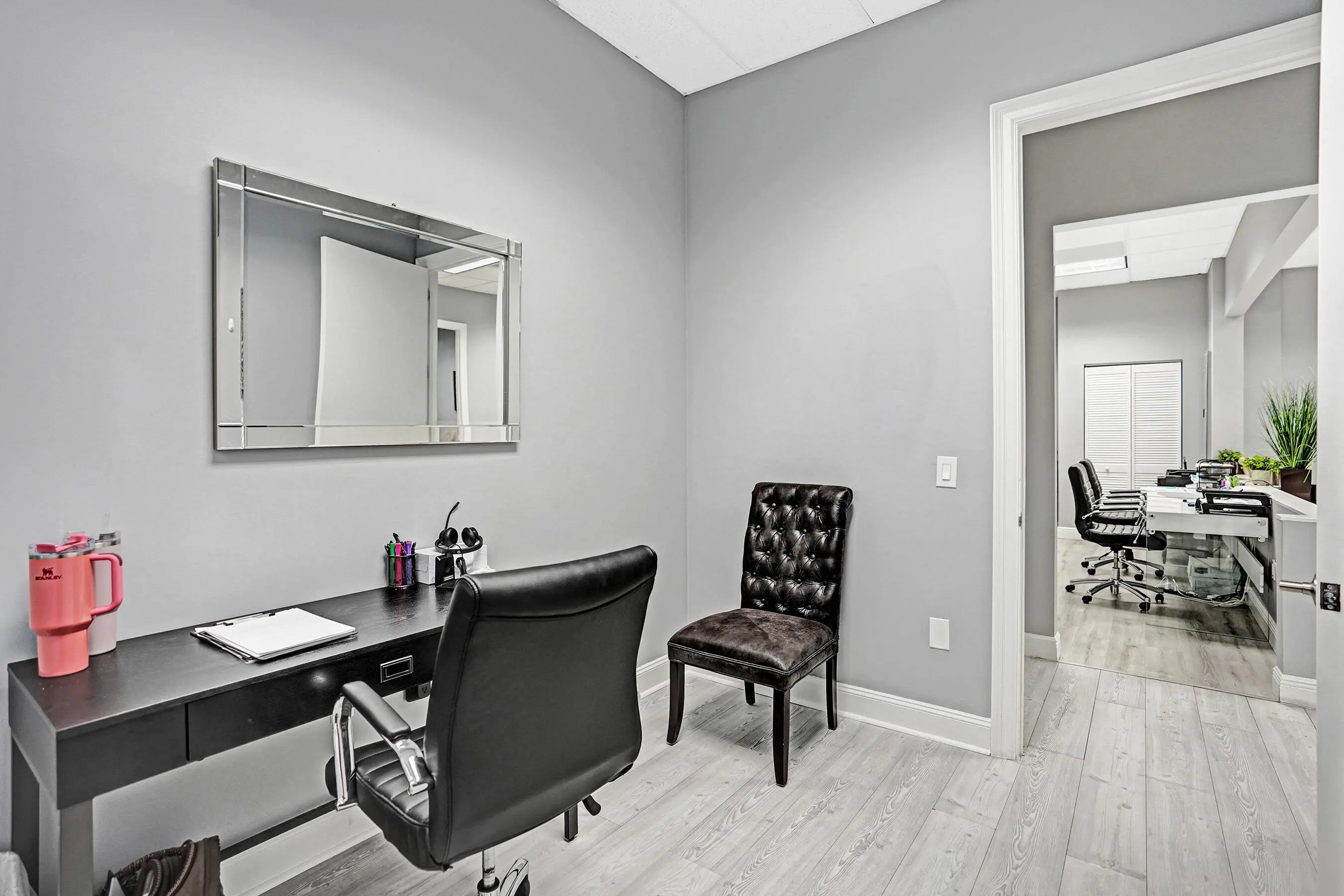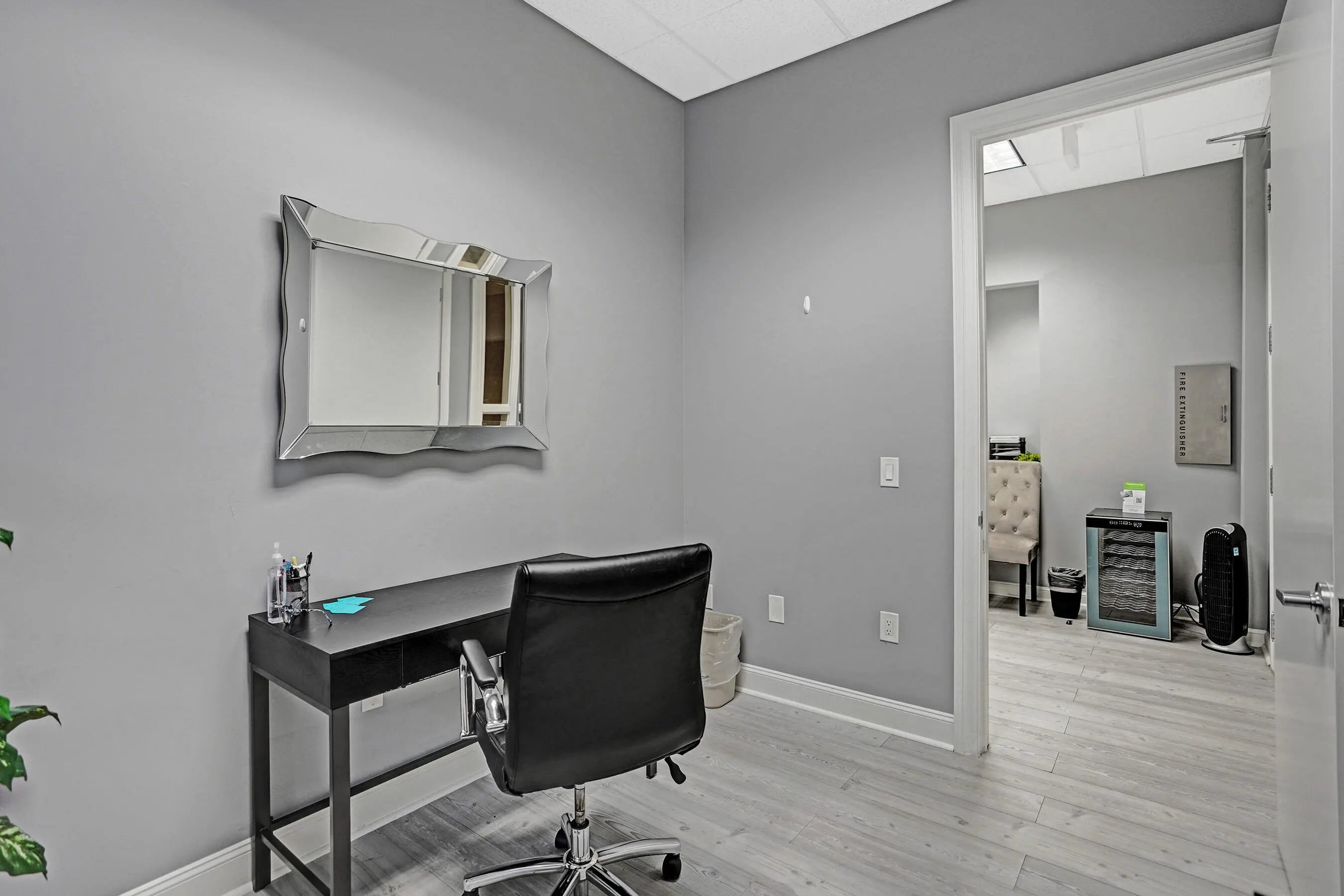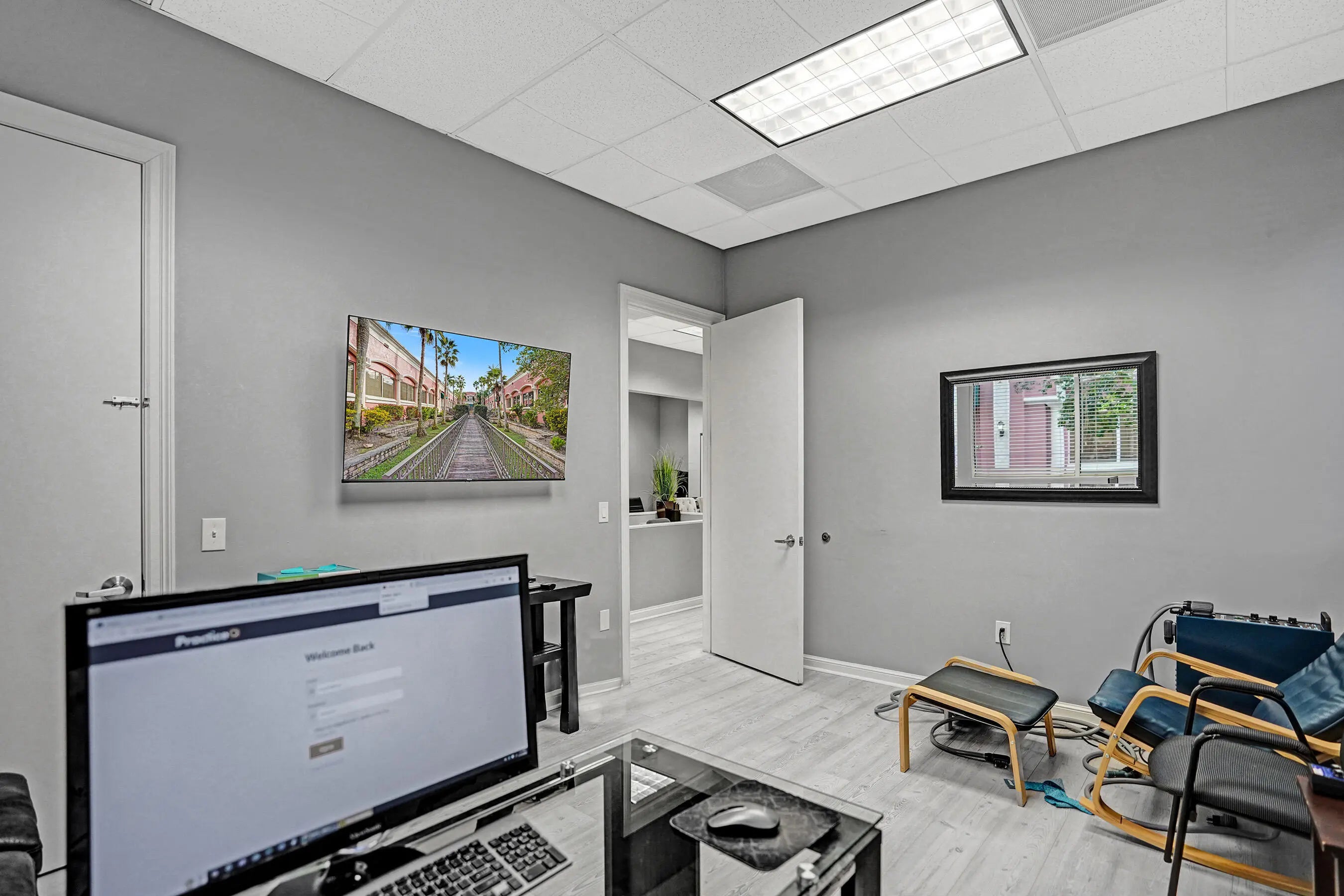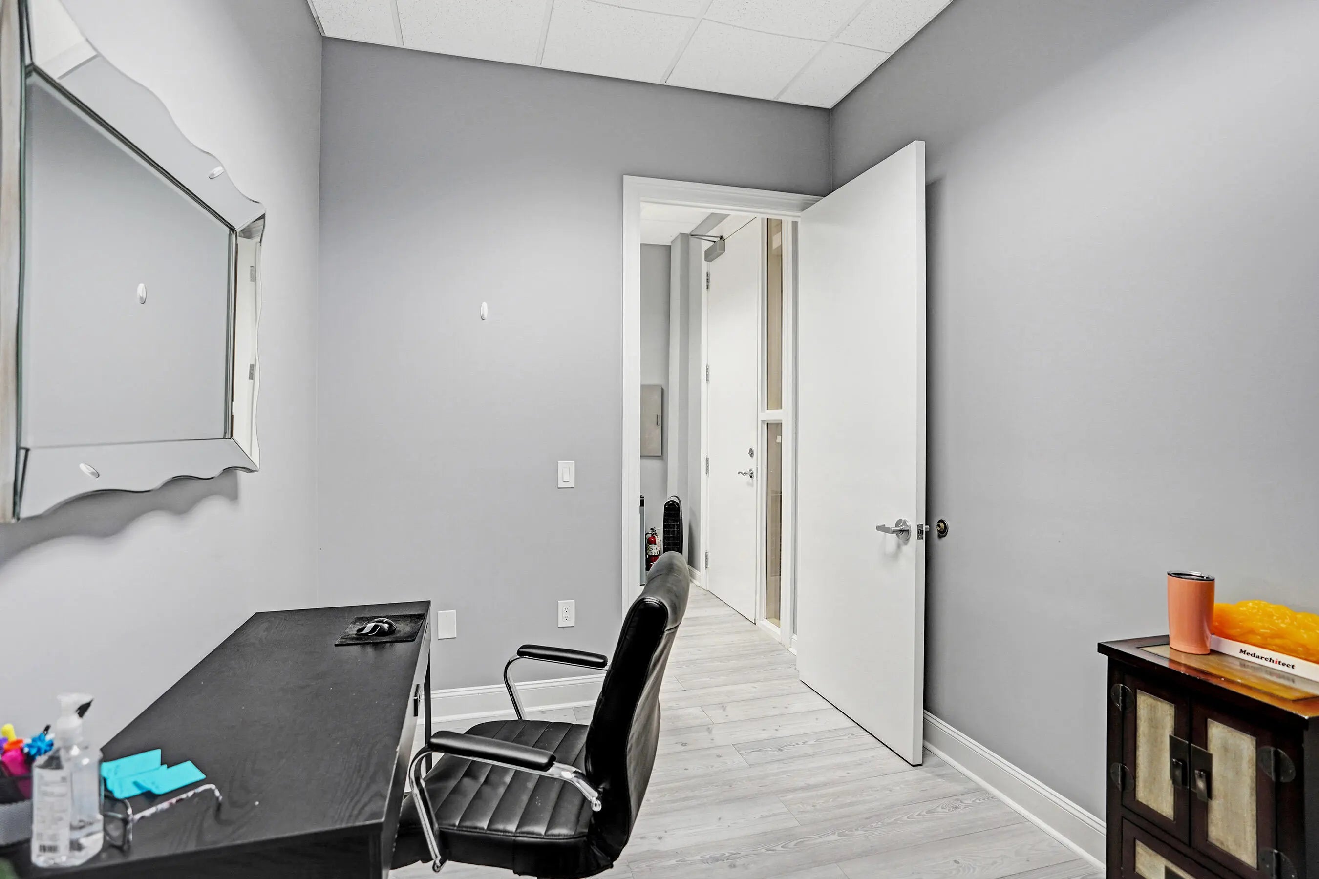 Suite #102 at The Addison features 4 private offices with additional open space that could be a conference room, plus dedicated reception desk, waiting area, & sink station. Great for professional or light medical uses. The recent improvements include updated flooring, lighting, Solid doors, paint, & trim. The suite also includes one (1) assigned and covered parking space, along with 100s of additional employee & visitor parking spaces. Restrooms and mailboxes are just steps down the hall and the campus grounds are kept in excellent condition (by onsite mgmt.) with scenic waiting areas great for any small business in Delray Beach. Very Easy to show with 1 hour notice, schedule a tour Today! Some of the office furnishings can be left; if that helps. Term is thru October of 2027