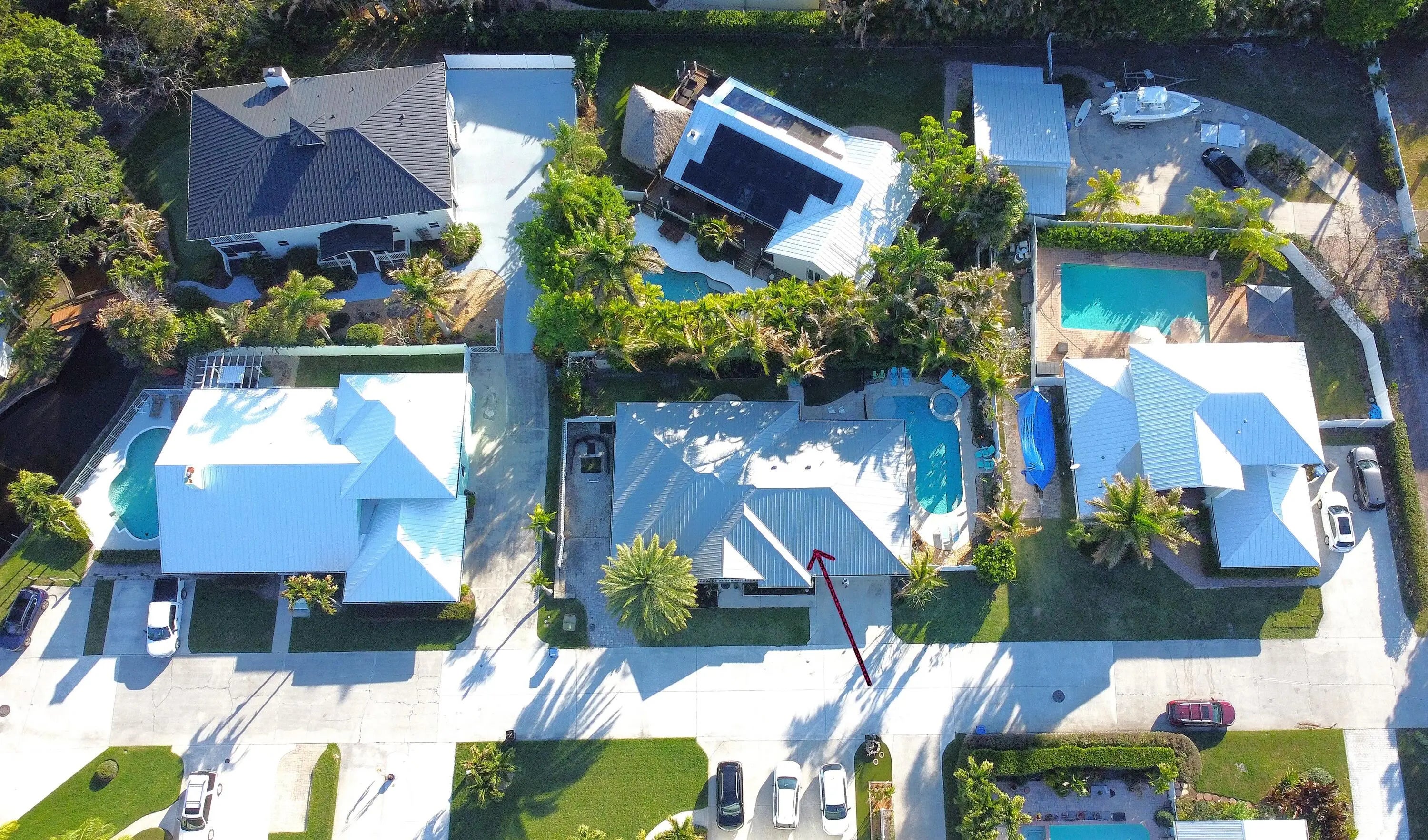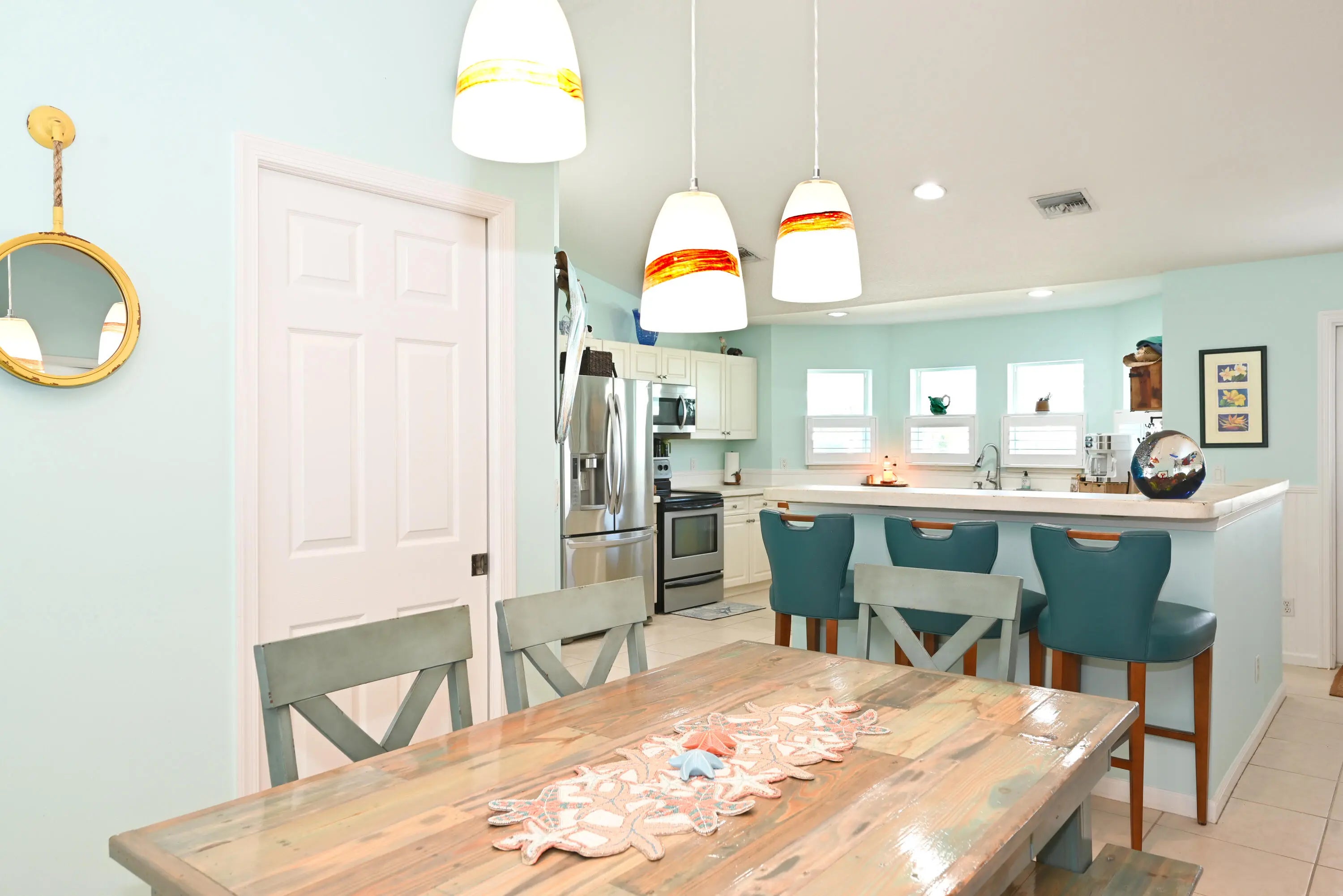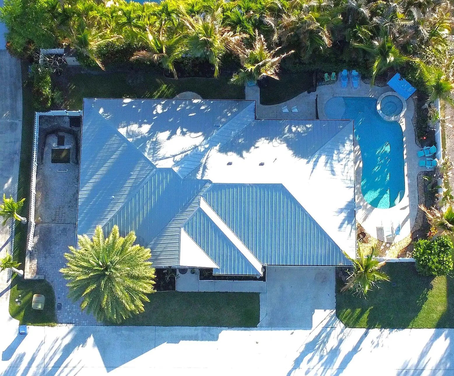 Live the ultimate coastal life in this Key West-style retreat located in the hidden gem community of Sims Cay in Jupiter. This 3-bedroom + den, 2.5-bath home features soaring vaulted ceilings and an open, airy layout designed for relaxed Florida living. The spacious living room features an electric fireplace w/ heat & the adjacent Florida room offers an additional 244 square feet for separate entertaining or relaxation. The kitchen is both functional and artistic, with a butcher-block island, walk-in pantry, and custom concrete countertops accented with sea glass and fossil shell inlays. Step outside to your private tropical oasis complete with an outdoor shower and a large bar with granite countertop, the gas heated pool and jacuzzi are highlighted with a striking mural by an accomplished local artist-perfect for entertaining in paradise! Sims Cay offers an active lifestyle for boaters with easy access to the water with a private boat ramp and day dock with one fixed bridge to the ocean, as well as use of a fish-cleaning station. Live outdoors with a scenic kayak ride to the Jupiter sandbar - only 35 minutes, paddle on up to the Jupiter Lighthouse, take a short 4-mile bike ride to the beach, practice your golf swing with your own unique driving range area, or park your boat right here! The character of this home will help you relax or be active, while still being in the heart of Jupiter. Low HOA fees complete this exceptional lifestyle opportunity. This charming home features impact windows and was the last home built in the community.