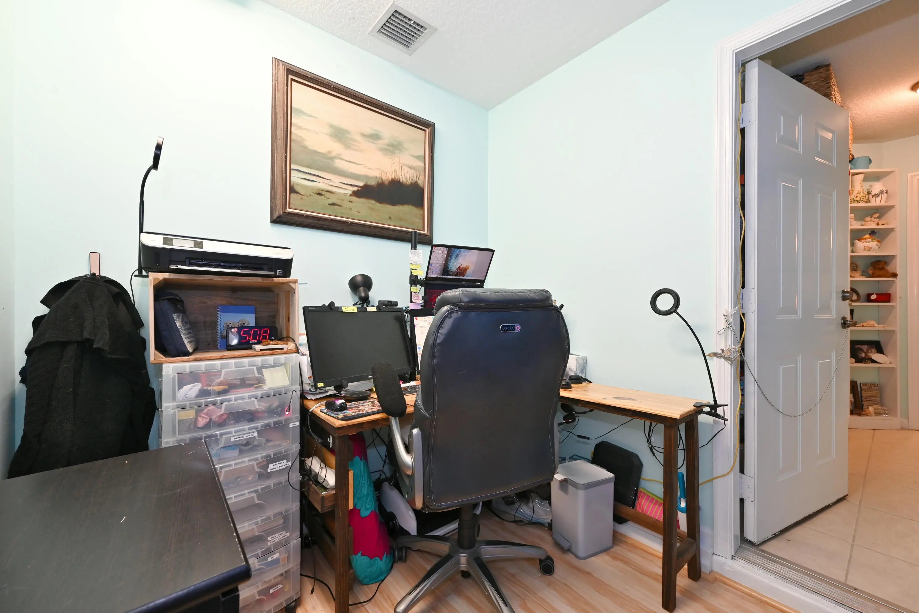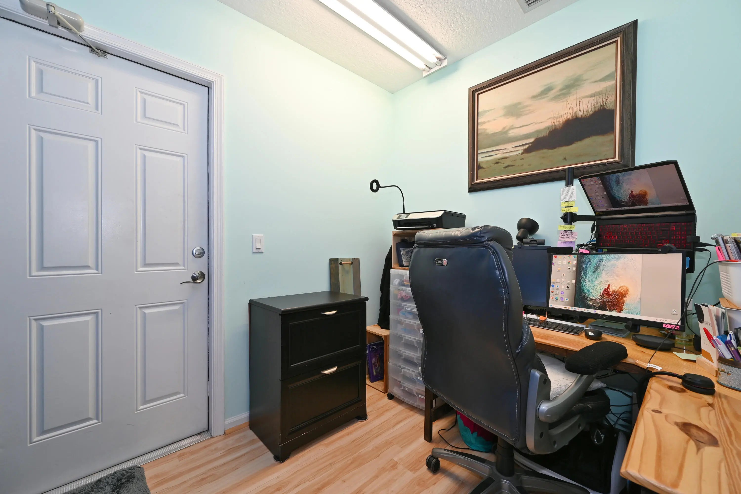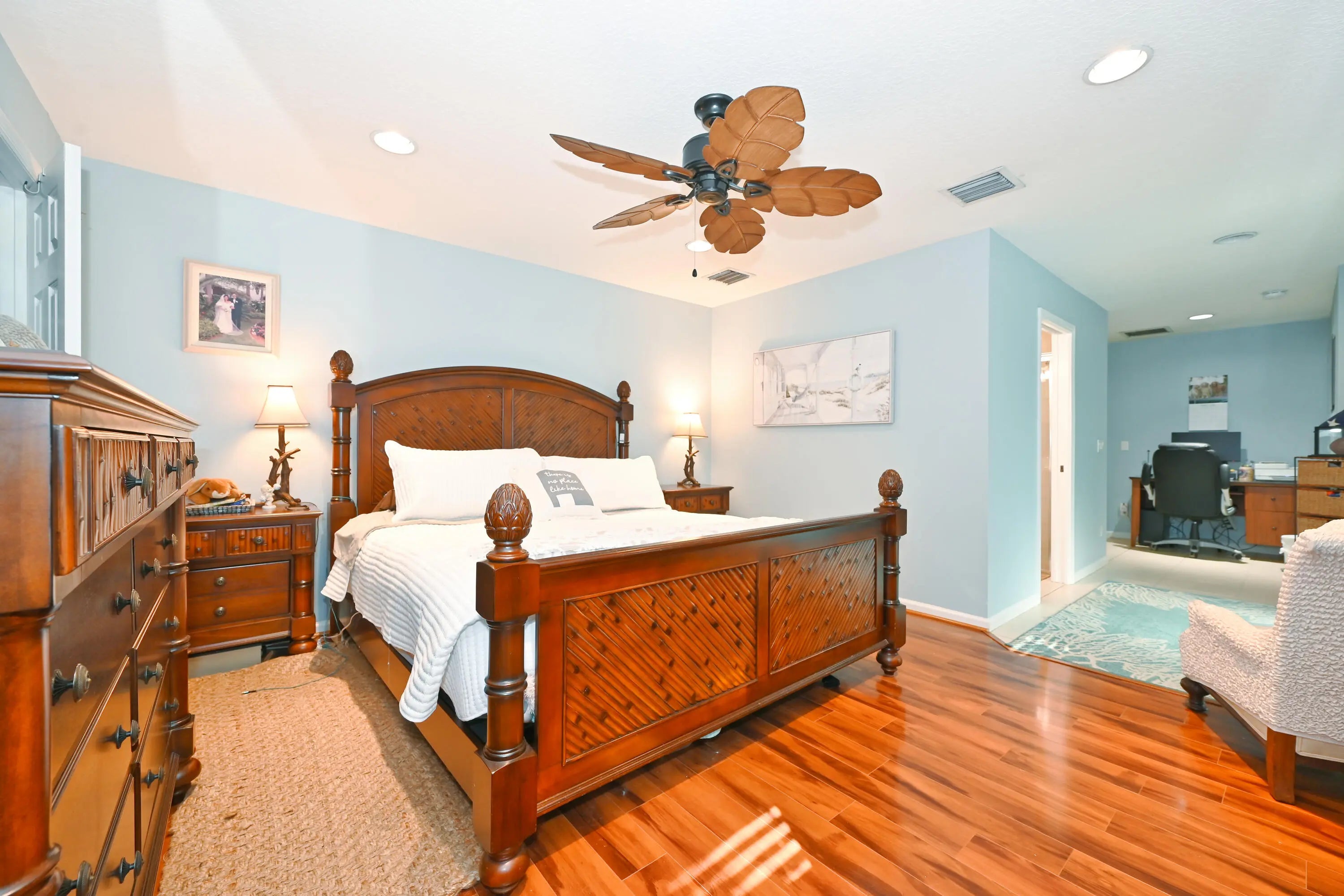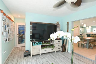 Live the ultimate coastal life in this Key West-style retreat located in the hidden gem community of Sims Cay in Jupiter. This 3-bedroom + den, 2.5-bath home features soaring vaulted ceilings and an open, airy layout designed for relaxed Florida living. The spacious living room features an electric fireplace w/ heat & the adjacent Florida room offers an additional 244 square feet for separate entertaining or relaxation. The kitchen is both functional and artistic, with a butcher-block island, walk-in pantry, and custom concrete countertops accented with sea glass and fossil shell inlays. Step outside to your private tropical oasis complete with an outdoor shower and a large bar with granite countertop, the gas heated pool and jacuzzi are highlighted with a striking mural by an accomplished local artist-perfect for entertaining in paradise! Sims Cay offers an active lifestyle for boaters with easy access to the water with a private boat ramp and day dock with one fixed bridge to the ocean, as well as use of a fish-cleaning station. Live outdoors with a scenic kayak ride to the Jupiter sandbar - only 35 minutes, paddle on up to the Jupiter Lighthouse, take a short 4-mile bike ride to the beach, practice your golf swing with your own unique driving range area, or park your boat right here! The character of this home will help you relax or be active, while still being in the heart of Jupiter. Low HOA fees complete this exceptional lifestyle opportunity. This charming home features impact windows and was the last home built in the community.