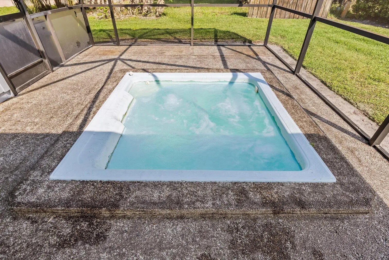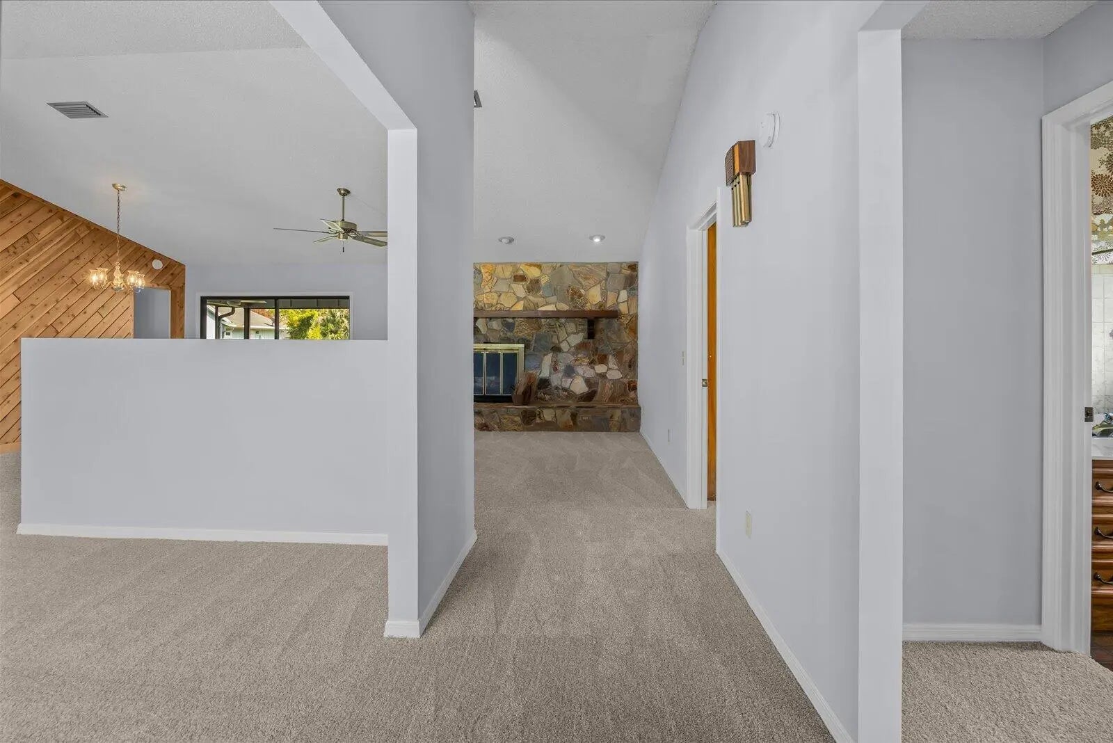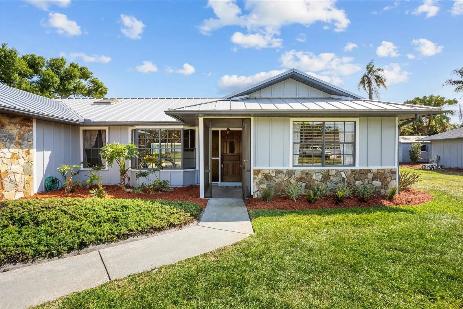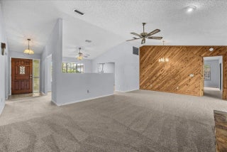 Spacious and beautifully maintained 4-bedroom home offering major upgrades include a new metal roof (2018), brand-new A/C with transferable warranty, and a new water heater (March 2026), giving peace of mind to the next owner. The home also features fresh interior and exterior paint and new carpet throughout, making it truly move-in ready. Inside, you'll love the open and airy feel created by vaulted ceilings and a cozy fireplace that adds warmth and charm to the main living space. Bedrooms 3 and 4 offer a unique and versatile layout with a private entrance and full bathroom—ideal for an in-law suite, guest quarters, or multi-generational living. Bedroom 3 can also serve as a separate living room, creating a fully private section of the home. Step outside to a large screened-in patio and unwind in the in-ground spa, conveniently accessible from three separate entrances—perfect for relaxing or entertaining. Additional highlights include an indoor laundry room, a spacious and functional floor plan, and a voluntary HOA of just $5/month.