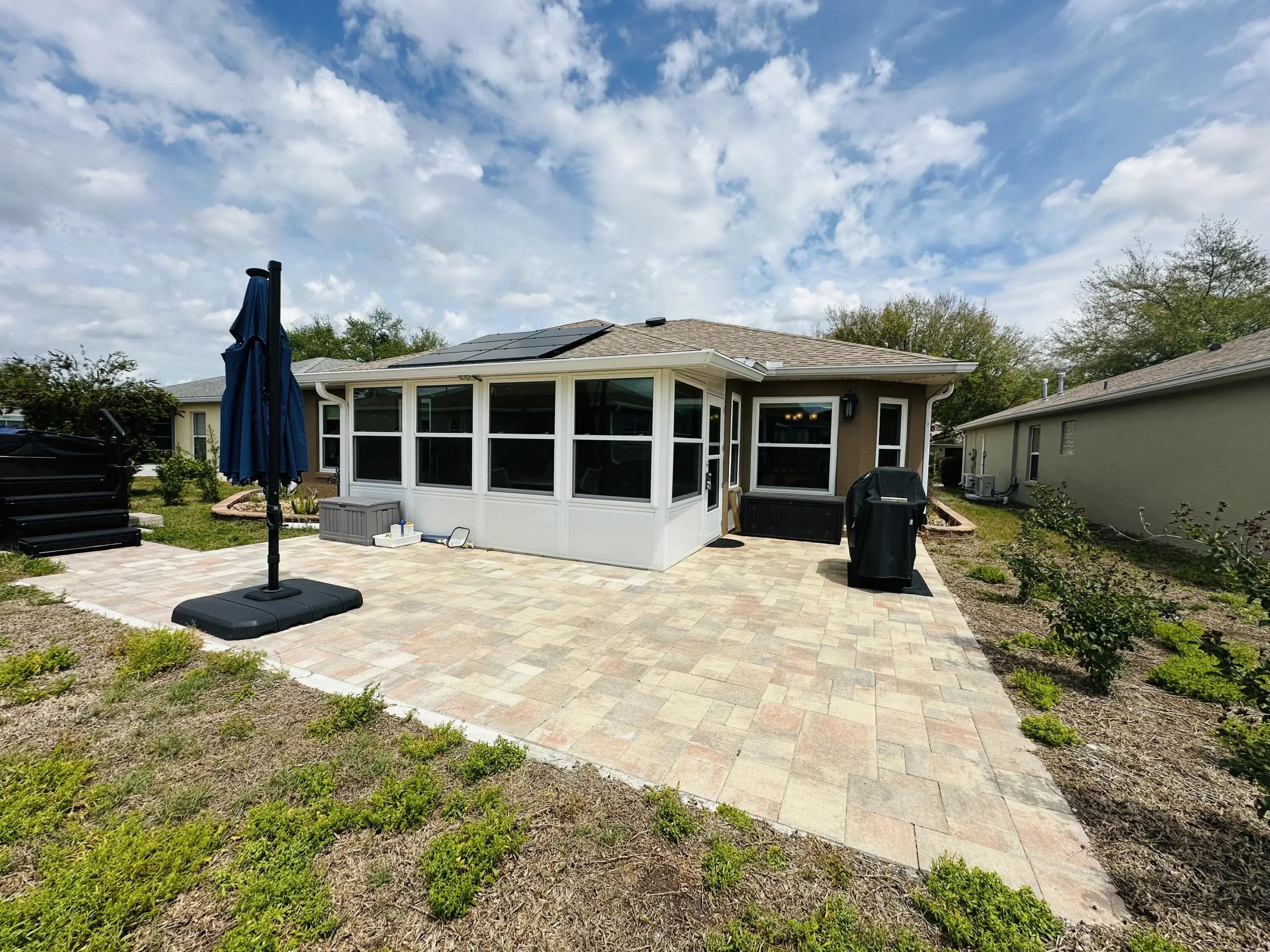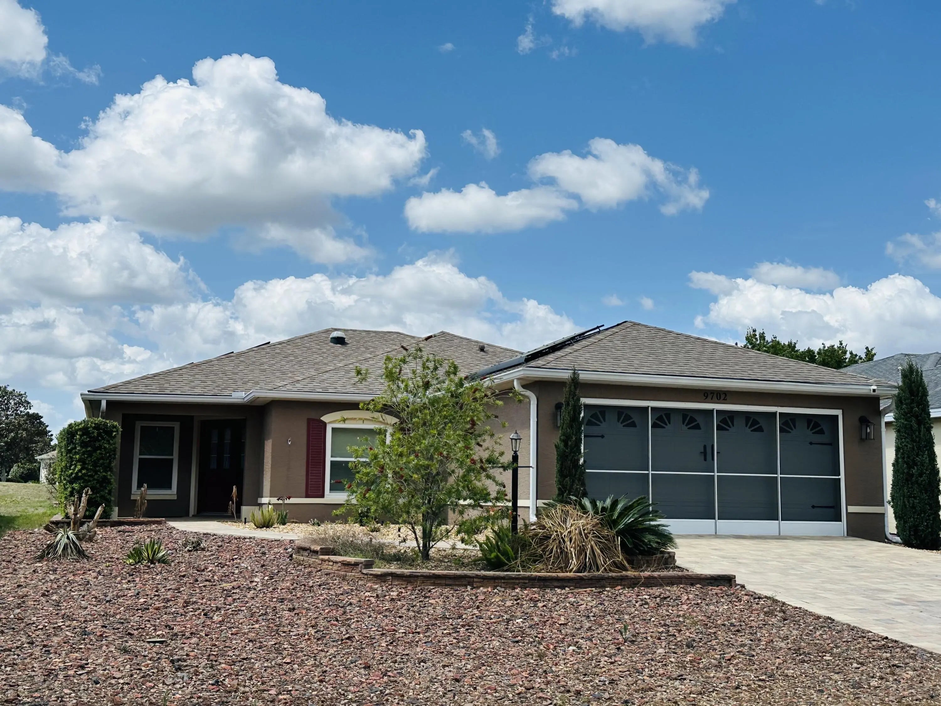 Over $150,000 has been invested in remodeling this highly desirable Wakefield Model home located in the Providence neighborhood of On Top of the World—a premier, award-winning 55+ community designed for active adults. This move-in-ready home offers peace of mind with a BRAND-NEW ROOF and luxury vinyl plank flooring throughout—NO CARPET anywhere. Major updates include NEWER windows, air conditioning system, water heater, water softener, brick pavers, landscaping, and freshly repainted interior and exterior. Solar panels provide excellent energy efficiency and long-term savings. The HOA Fee includes lawn care, basic cable, roof repairs and exterior painting. The updated kitchen features newer stainless-steel appliances, including a gas range, wood cabinetry, and granite countertops— perfect for everyday living and entertaining. The spacious primary suite includes an ensuite bathroom and a walk-in closet. Both bathrooms have been upgraded with wood cabinets and granite countertops. Enjoy relaxing in the enclosed porch with newer windows overlooking a beautifully maintained backyard. Additional highlights include an indoor utility room with washer and gas dryer, newer fixtures and ceiling fans throughout, epoxy-coated garage flooring, ample storage, gutters with gutter guards, and window treatments. On Top of the World "OTOW" is a Leader in the Retirement Community. It is Pet Friendly, and Provides a Magnitude of Recreational Activities & Amenities including Gated Community, Clubhouses, 3 Golf Courses, Driving Range, Practice Facility & Pro Shop, Restaurants with Full Service Bars, Recreation & Fitness Centers, Indoor & Outdoor Swimming Pools, Jacuzzi, Sauna, Steam Room, Live Entertainment, Dancing, "Doggie" Happy Hour, Tennis, Basketball & Pickleball Courts, Softball Field, Private Flying Field w/RC Planes, Remote-Control Airplane Field & Car Track, RV Parking, Bus (Courtesy), Archery Club, Billiard Room with Tournament Pool Tables, Horseshoe, Miniature Golf, Arcade, Hobby Building, Art Studios, Wood Working Shop, Card Rooms, Library, Education Center, Arbor Club, Ballrooms & Meeting Rooms Available for Rental at No Cost to Residents. Approximately 200 Organized Clubs, Wide Selection of Community Activities, Events & Classes Offered Daily Will Keep You Busy & Socially Active. Minutes from the World Equestrian Center, Hospitals, Medical Professionals, Theaters, Hwys and Downtown Ocala. Enjoy Golf Cart Accessibility to Restaurants, Entertainment, Grocery Stores, Shopping... You can take the Community's Courtesy Bus. Ocala/Marion County is officially named the "Horse Capital of the World®", a testament to the County's unique involvement in all things equestrian and its record of producing some of the finest champions. *** INVESTORS: There is No wait to Lease after Closing. Can lease 6 months and one week Furnished or one (1) year lease Unfurnished.