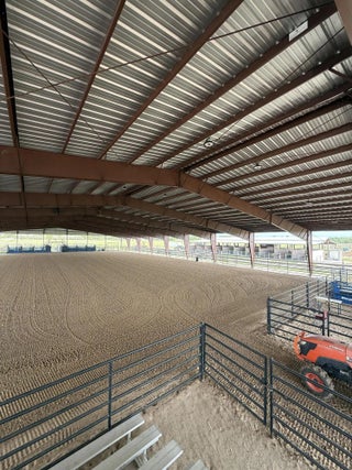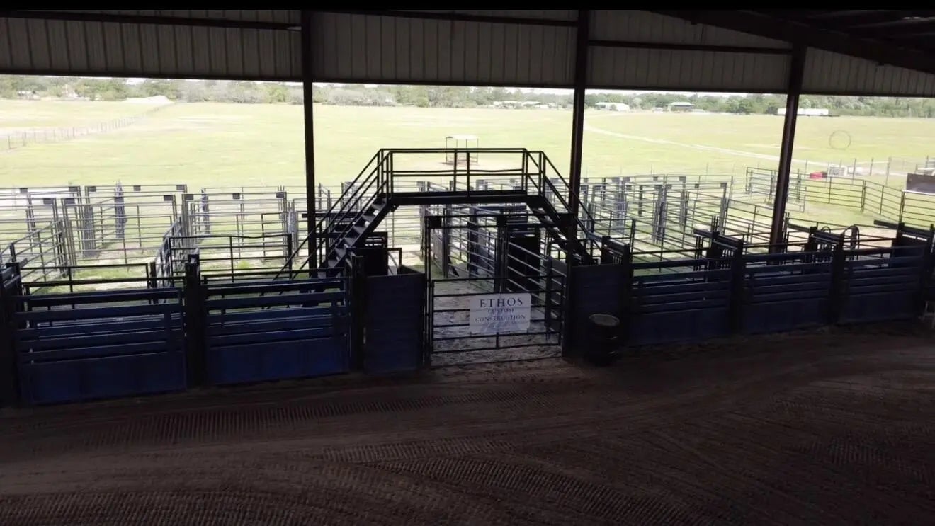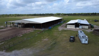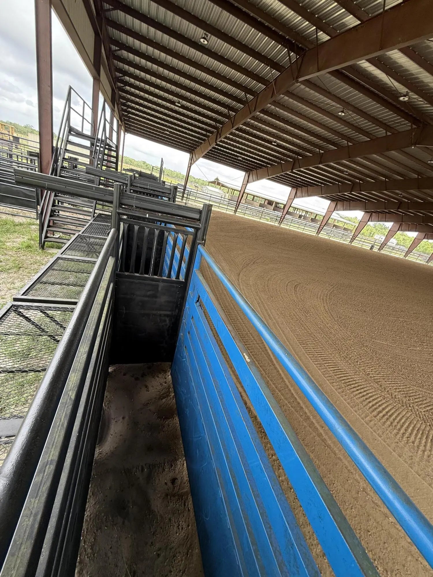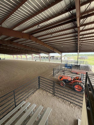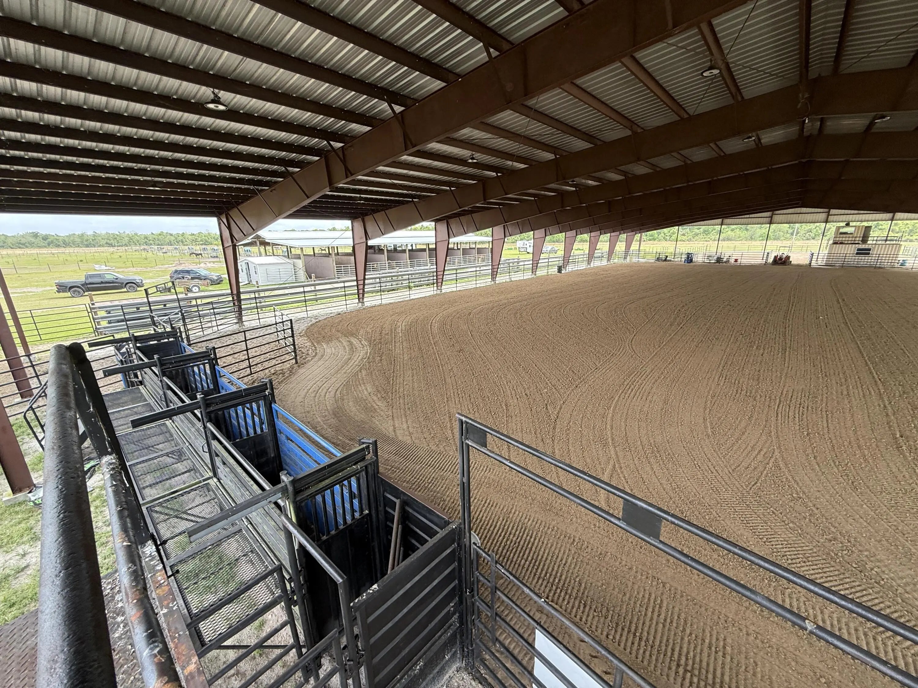 Rare opportunity to own a fully equipped 222.9-acre turnkey rodeo and equestrian facility built for serious operations and large-scale events. This one-of-a-kind property features a covered, lighted 140x250 arena, 6 bucking chutes, and a professional roping chute with box. Entertain and host with ease from the announcer's birdhouse overlooking three sets of bleachers. Designed for performance and capacity, the property includes a 16x32 round pen, 6 fenced pastures, and 16 oversized horse paddocks (approx. 200x100 each). The impressive 18-stall center-aisle barn offers 12x24 stalls, feed room, wash rack, and tack room. Complete with a 12x24 A/C office, full electric, 50-amp service, three septic systems, and five bathrooms. Built for rodeo, training, or income-producing events.