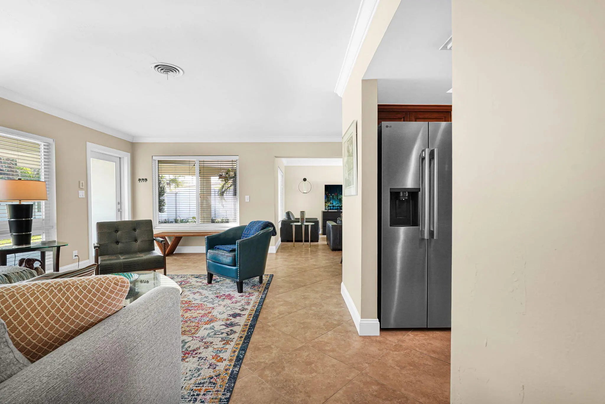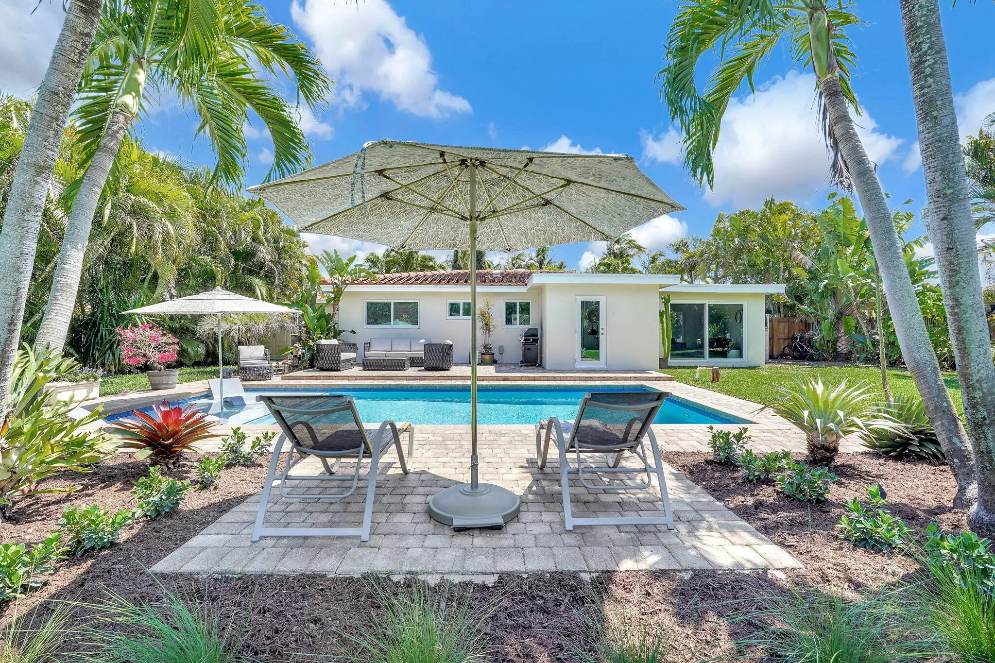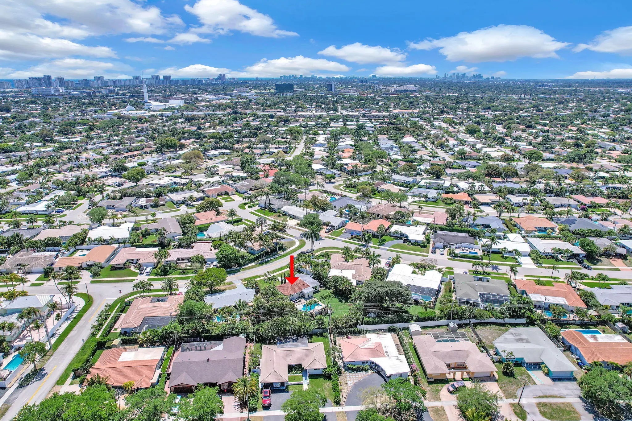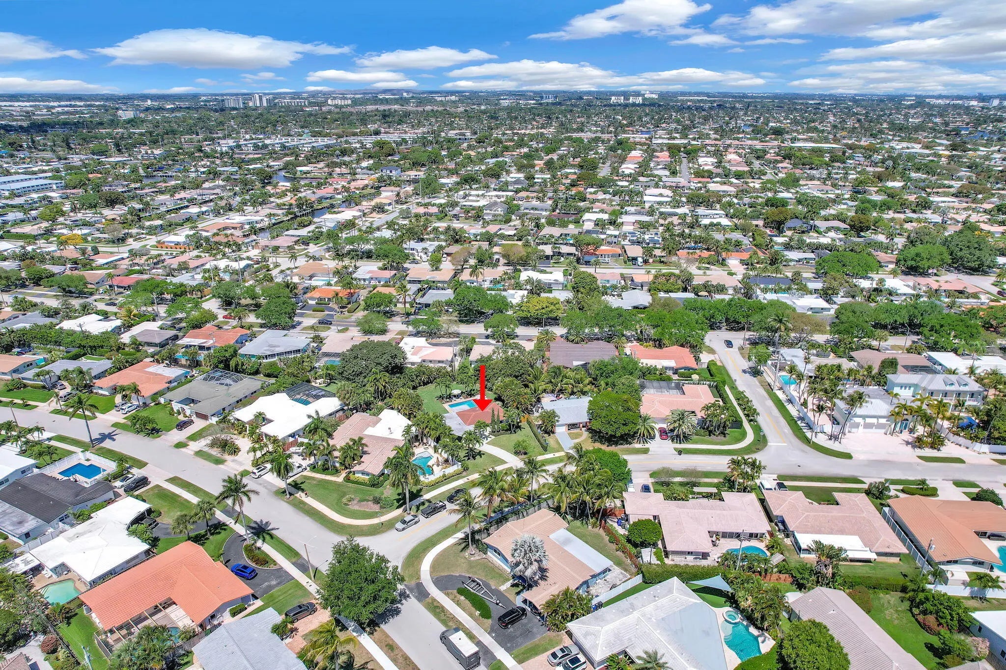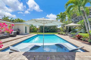 Largest lot currently available in Imperial Point. This 2-bed, 2-bath home sits on a sprawling 12,981 sq ft lot on a quiet street—offering a rare combination of privacy, outdoor space, and future potential. The home is equipped with hurricane-impact windows, providing both protection from the elements and peace of mind. The backyard is a true showstopper, showcasing a beautifully landscaped, resort-style pool area surrounded by lush greenery—perfect for entertaining. The expansive property offers exceptional space rarely found in the neighborhood—comparable in size to approximately 4 pickleball courts—creating ample room for outdoor living, recreation, or future expansion. This is a unique opportunity to enjoy one of the most spacious properties currently available in Imperial Point.
