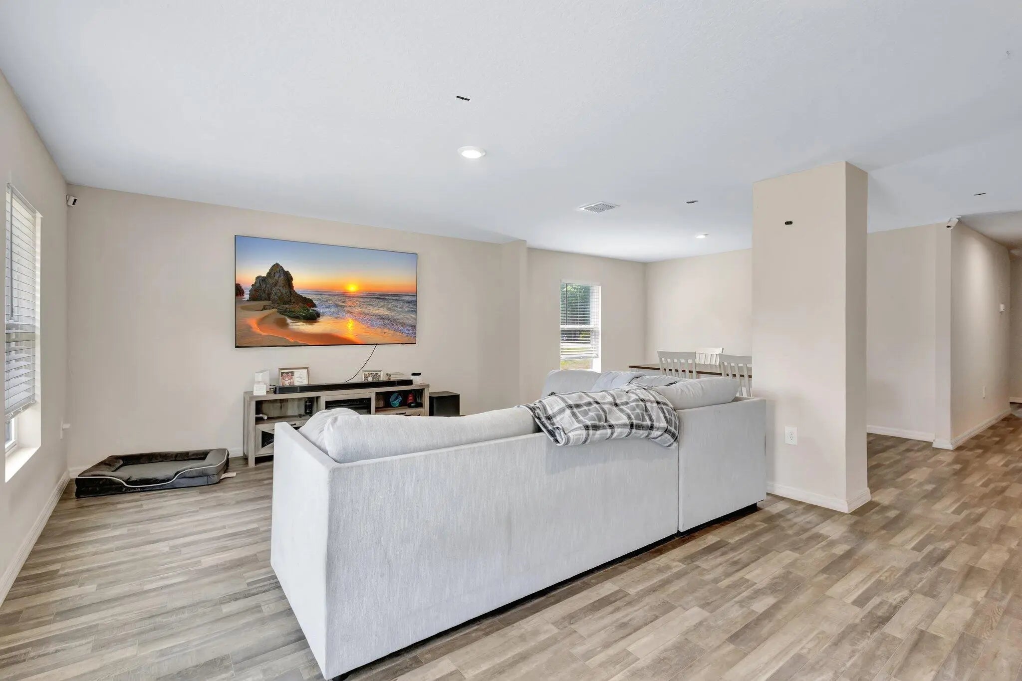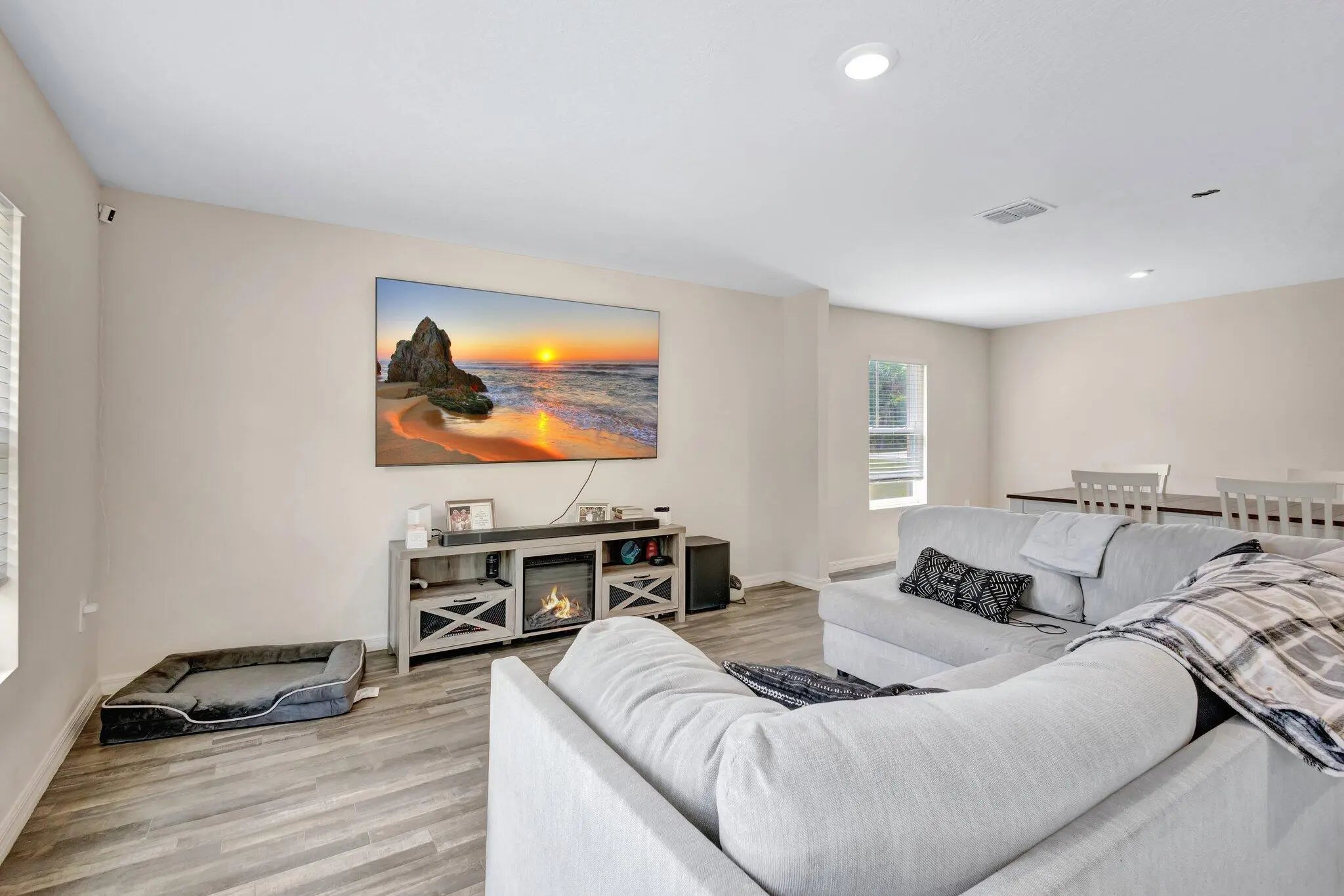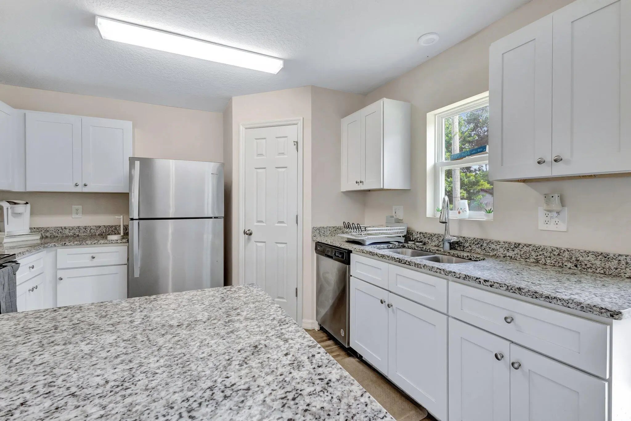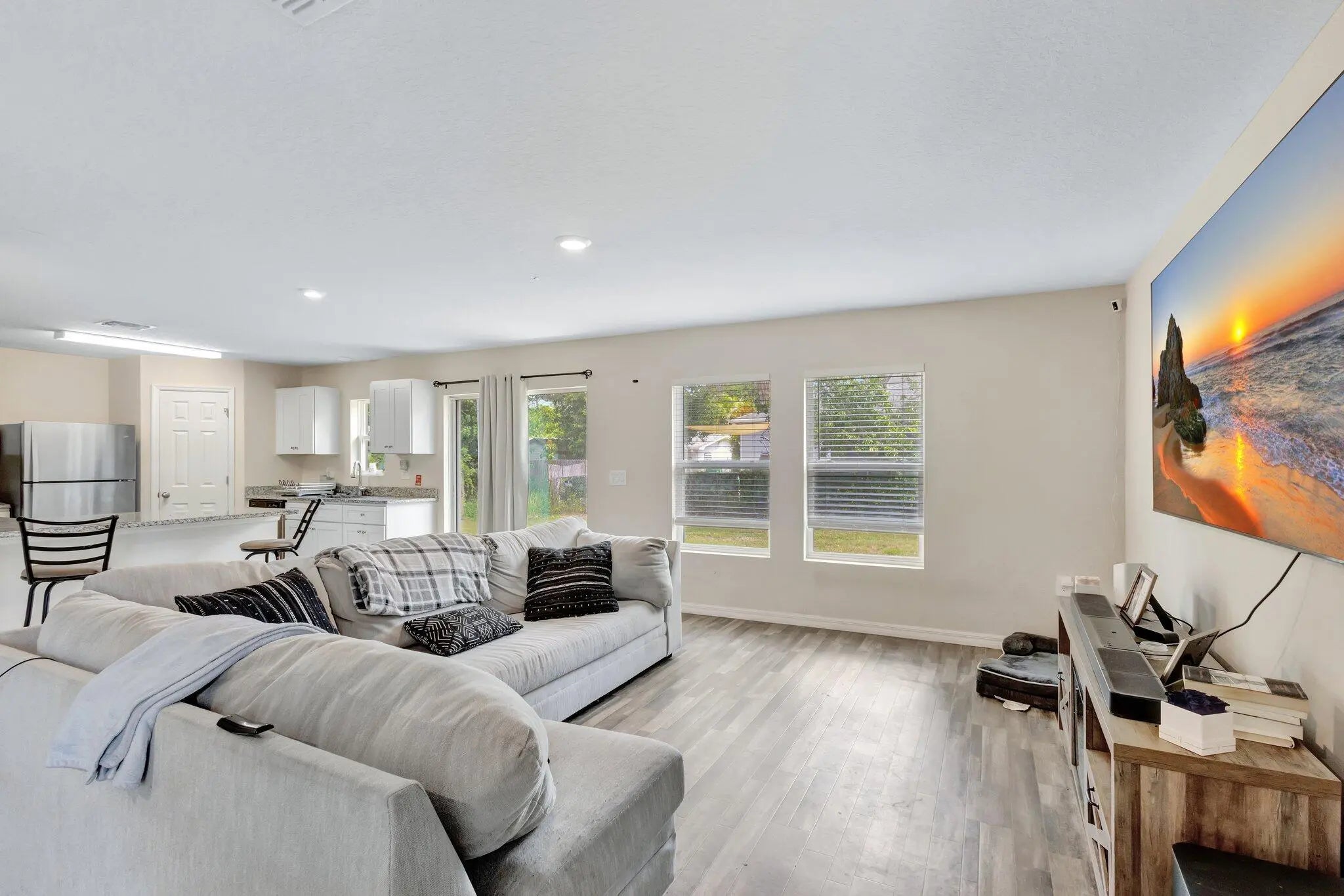 Beautiful 2022-built 4-bedroom, 2-bath home with a 2-car garage located in Fort Pierce. This modern home features an open-concept layout with a spacious living and dining area filled with natural light. The kitchen offers granite countertops, ample cabinetry, stainless steel appliances, and a breakfast bar. Split-bedroom floor plan provides privacy, with a primary suite featuring a walk-in closet and private bath. Three additional bedrooms offer flexibility for guests or office space. Enjoy the covered front porch and sliding doors leading to the backyard. Conveniently located near shopping, dining, and major roadways. Move-in ready!