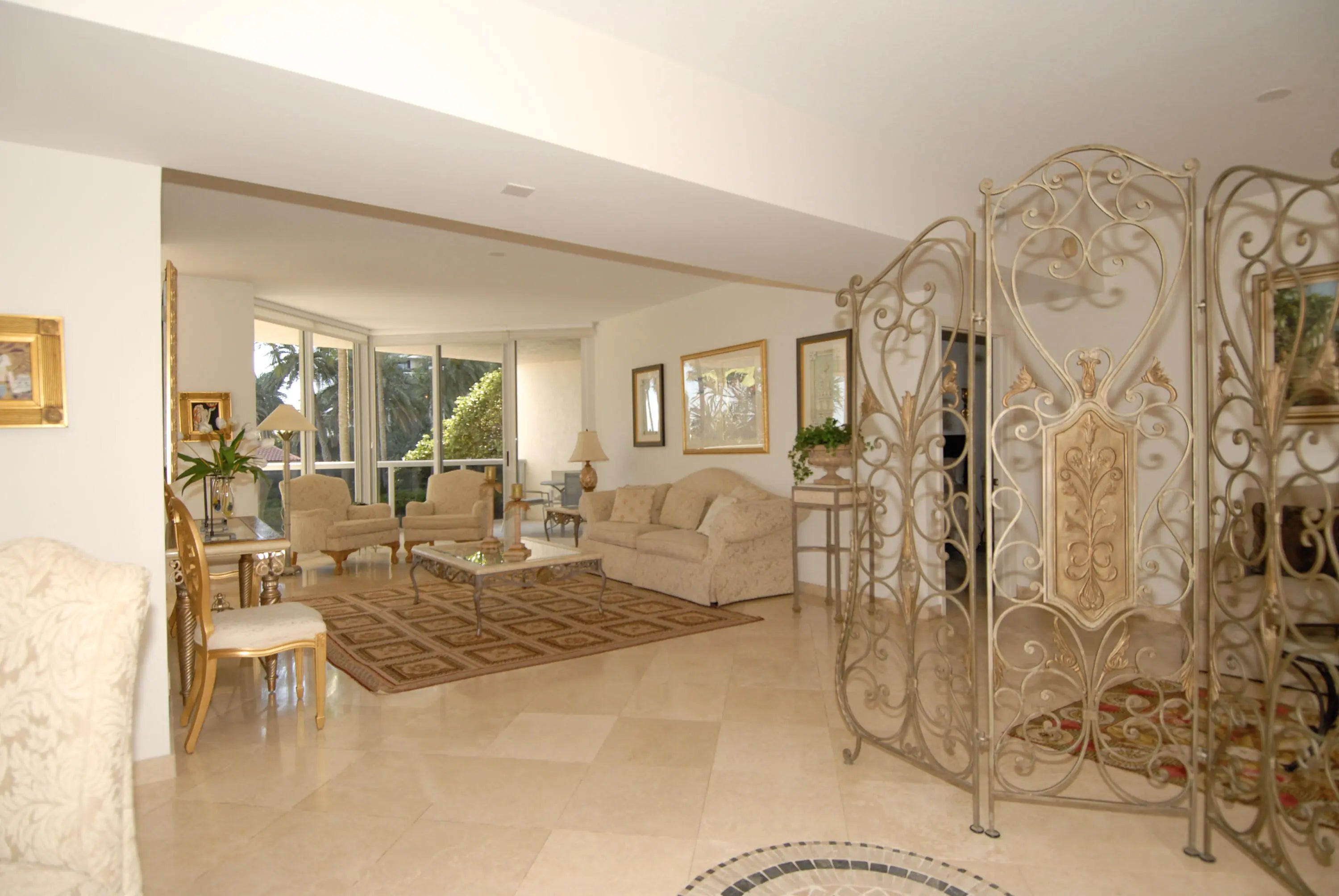 Two bed/ two bath split plan beautiful fully furnished apartment with marble throughout main living, dining, kitchen, laundry & balcony. Floor-to-ceiling windows fitted with custom Silhouette Blinds; both bedrooms fitted with wood Plantation shutters. California King bed in Master & King (twin conv.) Guest bedroom. SE exposure facing pool and tropical lanai with partial ocean views. Enjoy all the amenities of this resort-style beachfront property- 2 swimming pools, a poolside cafe, jacuzzis, beach cabanas, beach attendants, state-of-the-art gym, locker rooms with steam and sauna, clay tennis courts, billiard room, brand new renovated Lobby, Concierge, and 24 hour Security team. Also available for the winter season at $7,900/ month or annually at $6,200/ month. 13% sales tax on any lease less than 6 months plus 1 day. The association reqires a security deposit equals to 1 month rent.