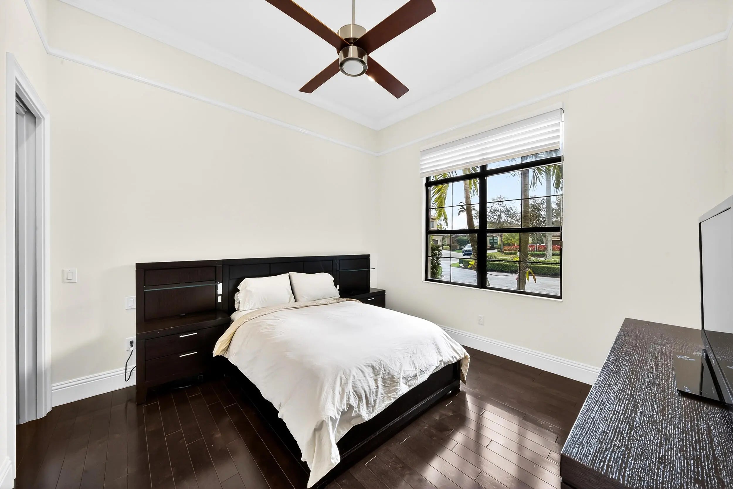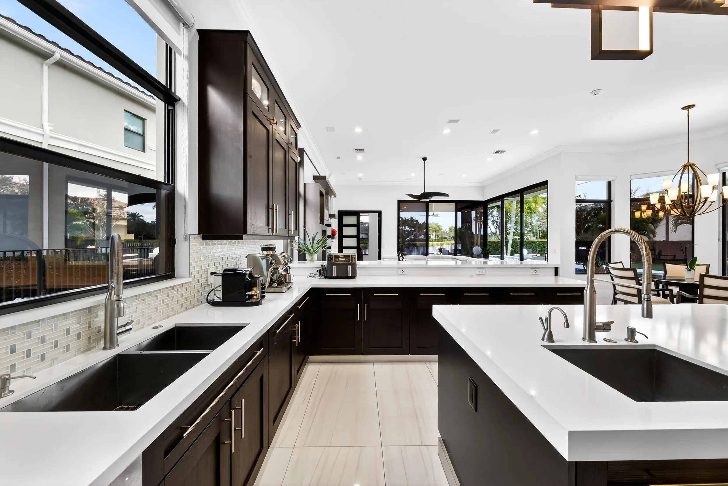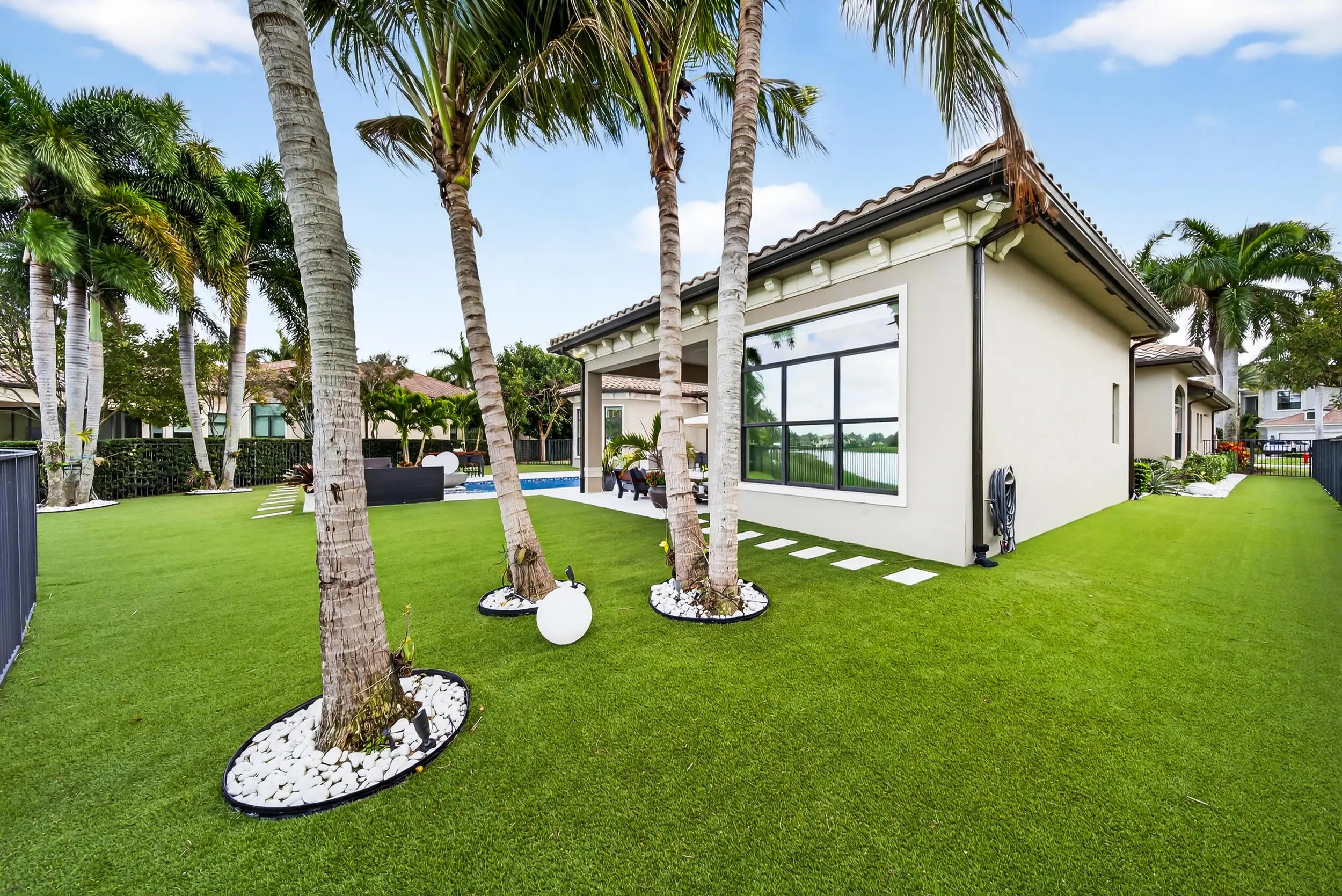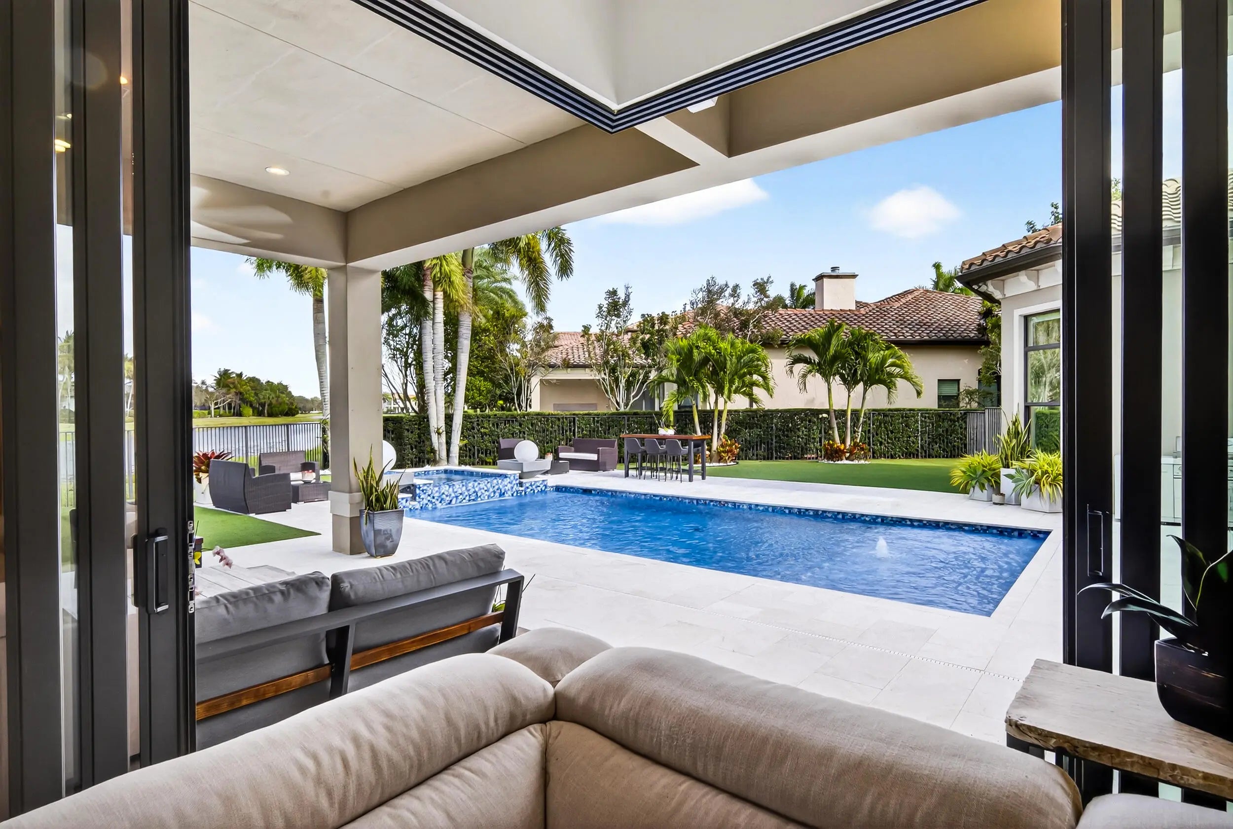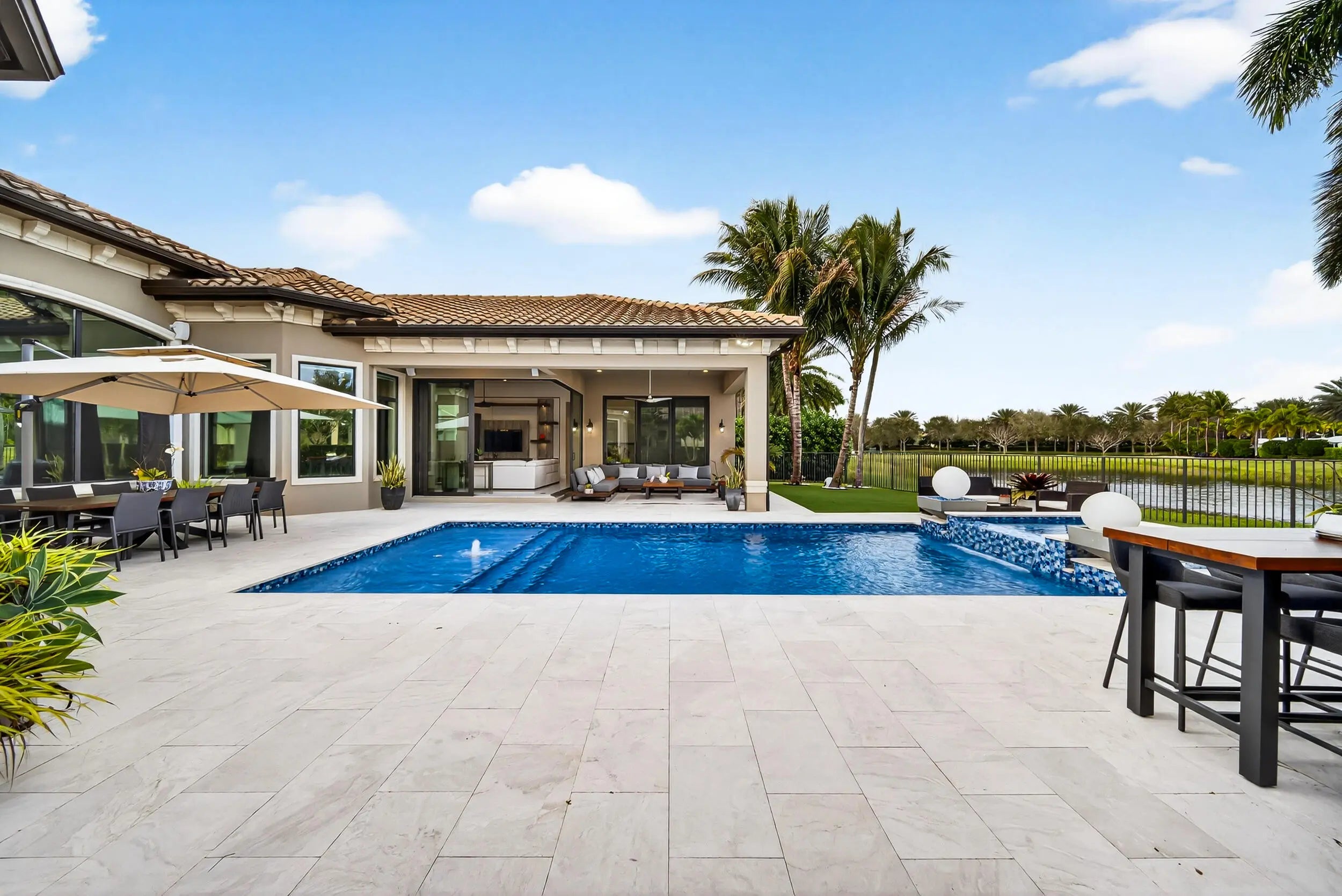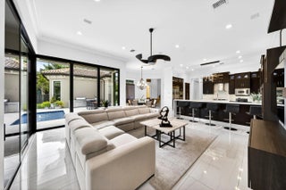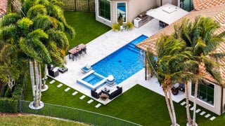 Nestled within the exclusive community of The Bridges, this stunning lakefront estate exudes elegance and modern luxury. Boasting 5 bedrooms, an office with poolside access, and 6.5 bathrooms, every corner of this home is designed for sophistication and comfort. The heated pool, spa, and summer kitchen create the ultimate outdoor sanctuary. Inside flooring consists of white porcelain tile, wood floors, and custom closets elevate the interiors. Wet Bar and a gourmet kitchen, complete with quartz counters, glass tile backsplash, and stainless steel appliances, is a chef's dream. With impact windows, remote-controlled blackouts & blinds, and surround sound throughout, convenience meets style at every turn. Community amenities rival a five-star resort, with a pool, gym, courts for tennis, pickleball, and basketball, plus a kids' water park. Top-rated schools and proximity to Delray's best dining and shopping complete this unparalleled offering.