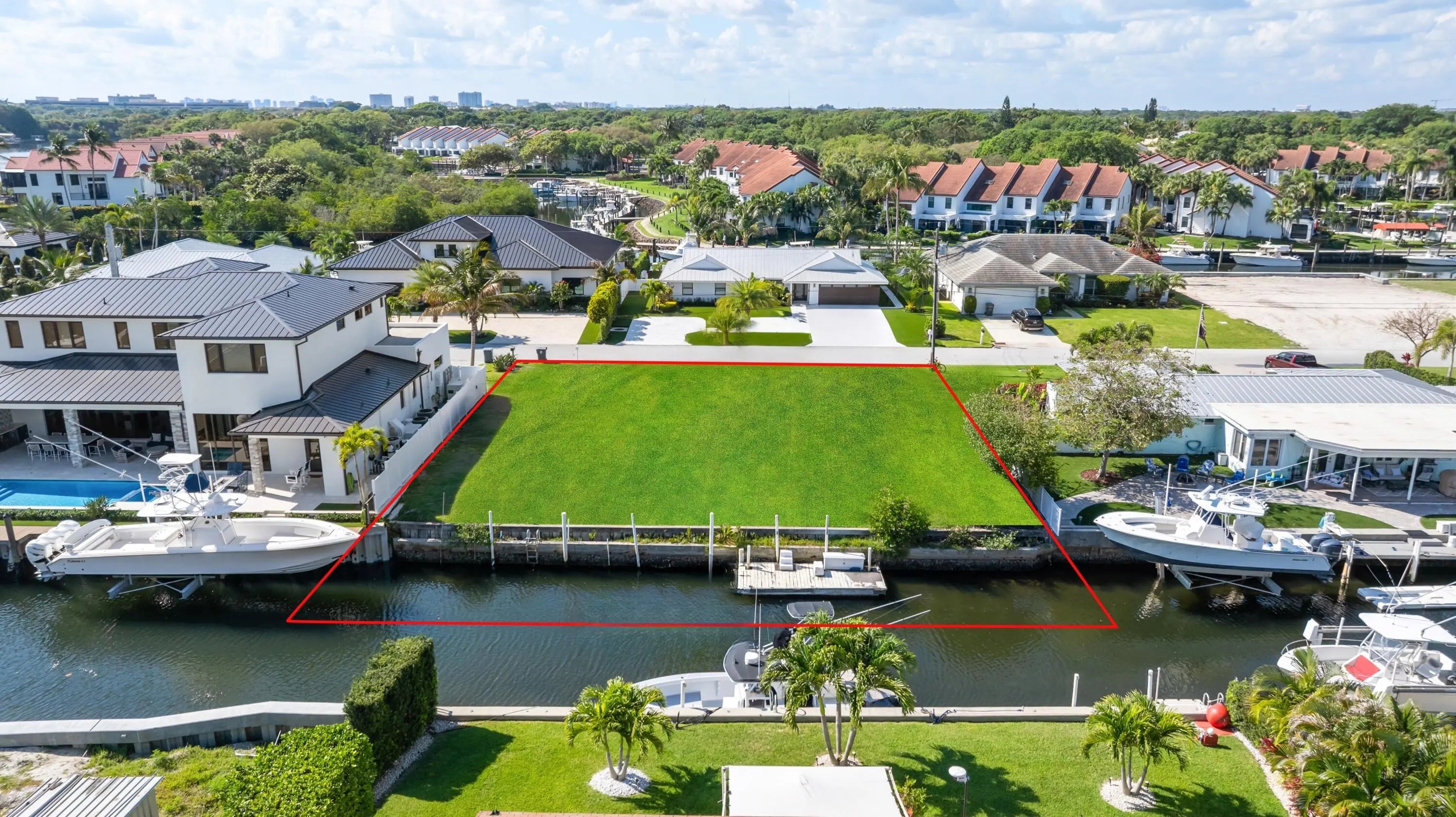 Rare opportunity to build on a .29-acre deepwater lot with 100 feet of waterfront just a few lots from the Intracoastal. No HOA, no fixed bridges, and a good seawall make this an ideal property for boaters. Located on the desirable south side of Edward Road, with a deep, well-maintained inlet that can accommodate a large vessel. New sewer lines recently installed for easy tie-in. Excellent location just south of Donald Ross Road and minutes to the beach, dining, and shopping.