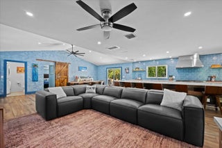 Welcome to this stunning Jupiter Farms home, where every day feels like a vacation! Set on a fully fenced 1+ acre lot, it offers privacy and luxury. The backyard is a true oasis, featuring a lazy river-style pool with a peninsula design. The tiki hut with outdoor kitchen includes a built-in grill, double burners, and fridge. Relax around the fire pit and take in Florida's beautiful sunsets. A travertine deck and outdoor shower add elegance and convenience to this retreat. Inside, the chef-inspired kitchen is a showstopper, highlighted by a 20-foot quartz waterfall-edge island with seating for 8. Features a luxury Monogram appliance package, Sub-Zero-style refrigerator, Viking-style gas range, and custom coffee bar. A detached 40 x 30 garage/outbuilding that can hold 4-6 cars and also includes an air-conditioned room perfect for a gym or office. Located in desirable Jupiter Farms, close to shopping, dining, and beaches this is one not to miss!!