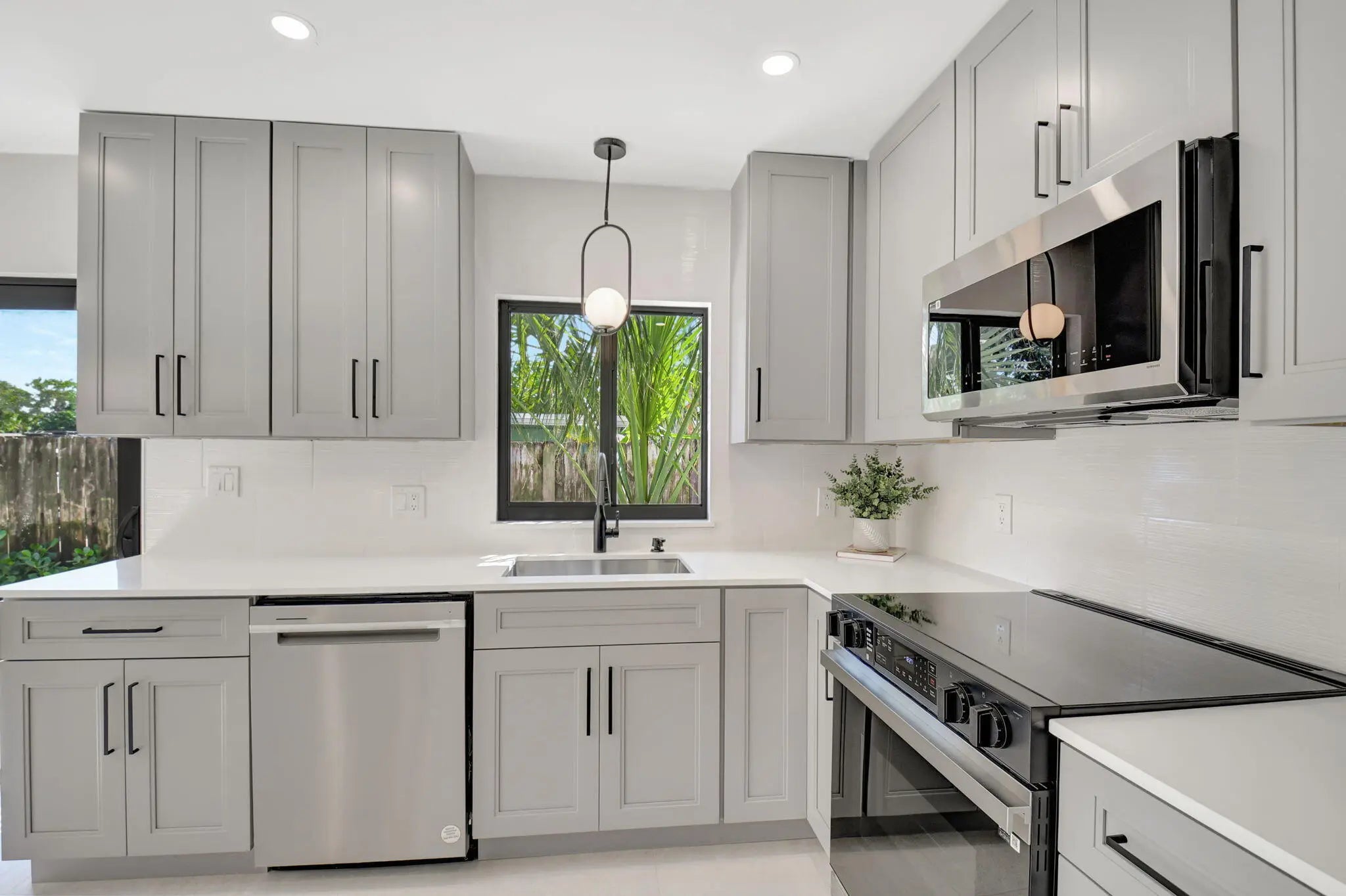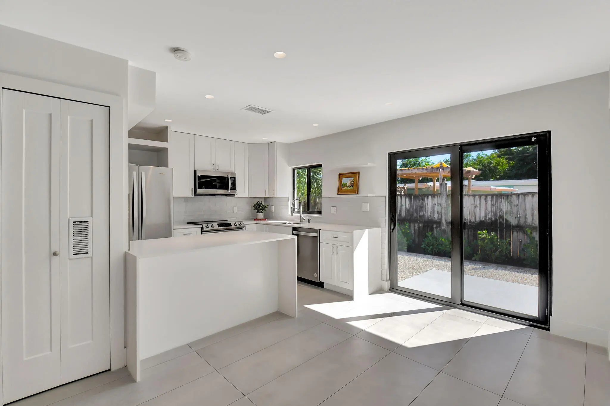 Remodeled duplex for rent! Unit features 2 bd and 2 ba, a bright open-concept layout, and a modern kitchen with quartz countertops, white shaker cabinets, and stainless steel appliances. Enjoy the convenience of an in-unit washer and dryer, beautifully designed bathrooms, and a private patio. The property is professionally landscaped and includes two parking spaces per unit. Ideally located in a prime area just minutes from the beach, shopping, and dining. Don't miss out on this incredible rental opportunity!