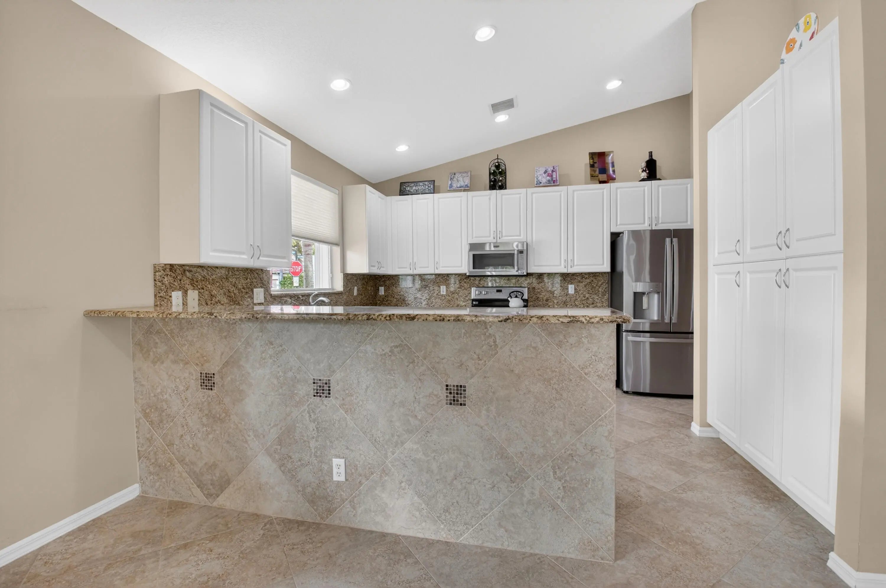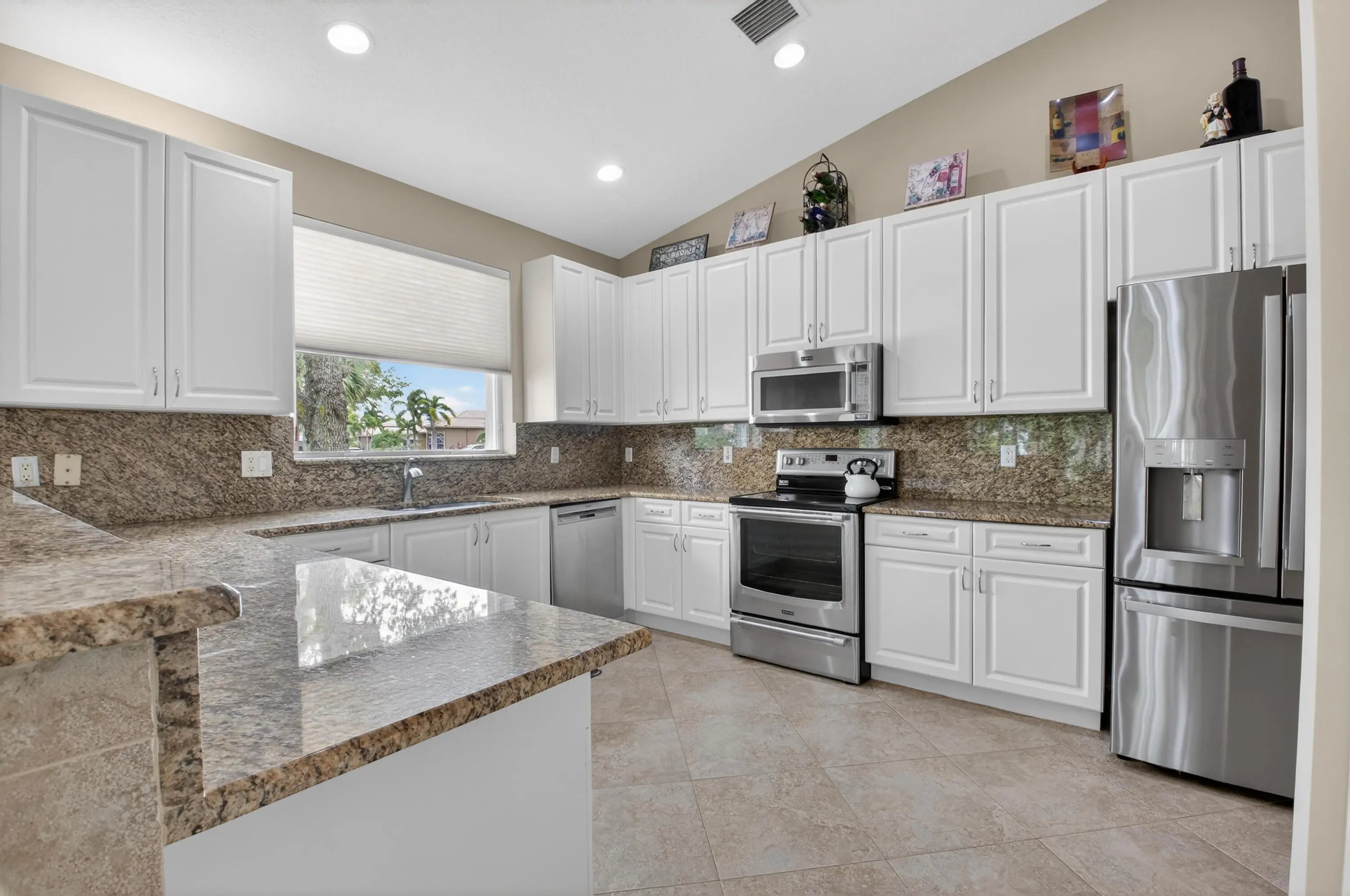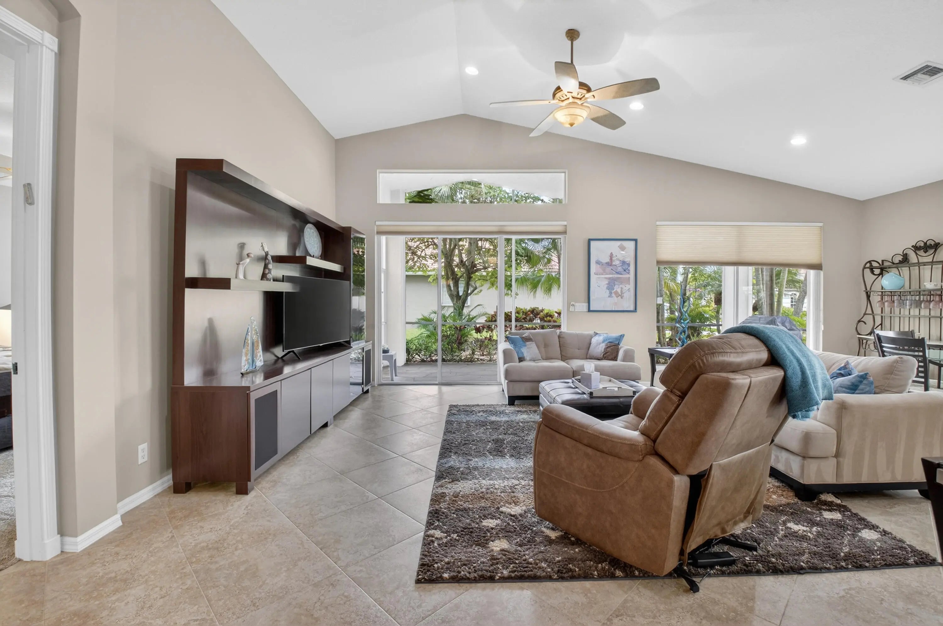 THIS DESIRABLE PORTOFINO MODEL (GREAT ROOM CONCEPT) IS BEING SOLD TURNKEY WITH SOME PERSONAL SELLER EXCEPTIONS. BEAUTIFUL NEUTRAL TILE SET ON A DIAGONAL WITH MARBLE INSERTS. GORGEOUS ONYX COUNTERS IN BATHROOMS, UPGRADED PLUMBING /LIGHTING FIXTURES, FRAMED MIRRORS & NO TUB IN GUEST BATHROOM. THE KITCHEN HAS A HUGE PANTRY, PULL-OUT SHELVES, 80/20 UNDERMOUNT SINK, NEWER FRENCH DOOR REFRIGERATOR, GRANITE COUNTERS & BACKSPLASH, SNACK BAR TILED SO NO SCUFF MARKS ON THE WALL. 3RD BEDROOM HAS A CONVENIENT MURPHY BED FOR GUESTS PLUS A BUILT IN WALL UNIT. CUSTOM CLOSET IN MASTER SUITE. SCREENED EURO-TILED ENTRY & PATIO. PROFESSIONALLY LANDSCAPED, EXTENDED SCREENED/COVERED PATIO, ACCORDION SHUTTERS, PEEK-A-BOO WATER VIEW & LEADERS/GUTTERS. THIS HOUSE IS A GREAT BUY & READY FOR YOU TO MOVE IN. COME JOIN THE VERY ACTIVE VILLAGGIO LIFESTYLE: 2 CLUBHOUSES (SOCIAL/ATHLETIC), 2 POOLS (INDOOR/OUTDOOR), CAFE, FULL-SERVICE SALON, PICKLEBALL, TENNIS, BOCCE, PING PONG, SHOW SERIES, CARDS & EXERCISE CLASSES 6 DAYS A WEEK AT NO ADDITIONAL CHARGE. A VERY WARM & WELCOMING COMMUNITY.