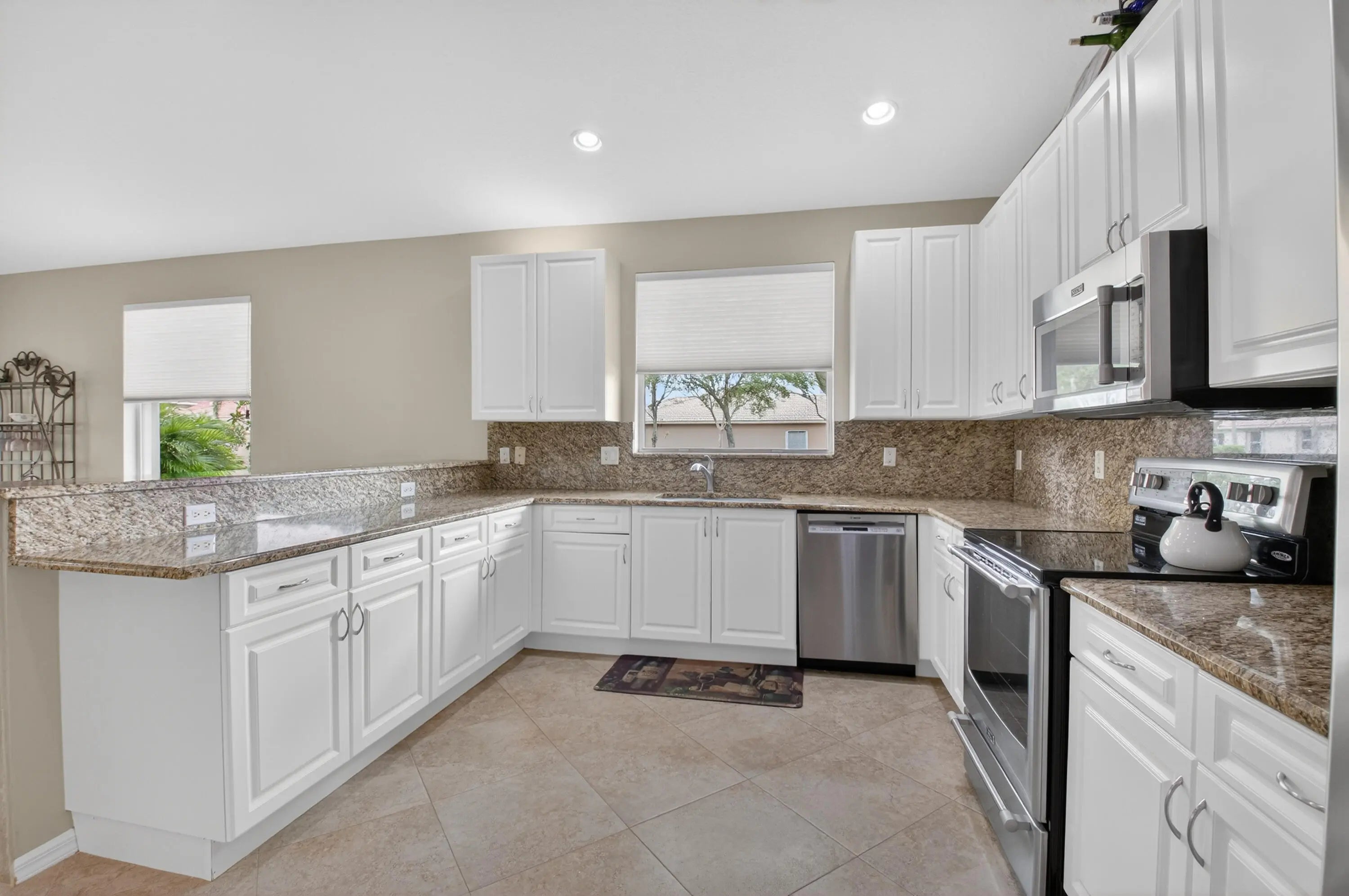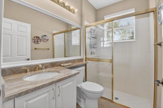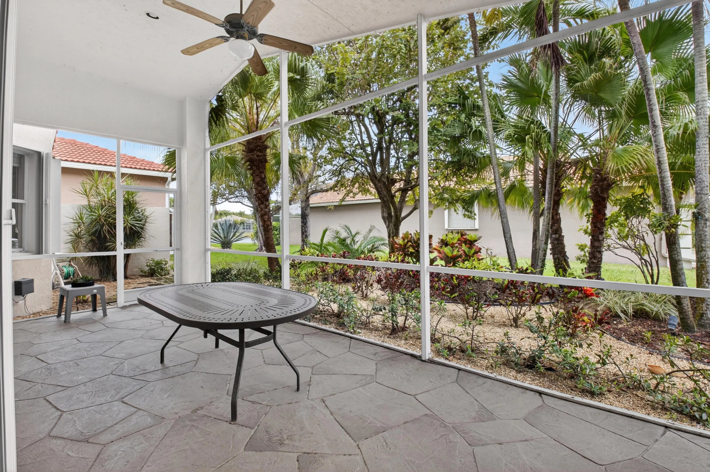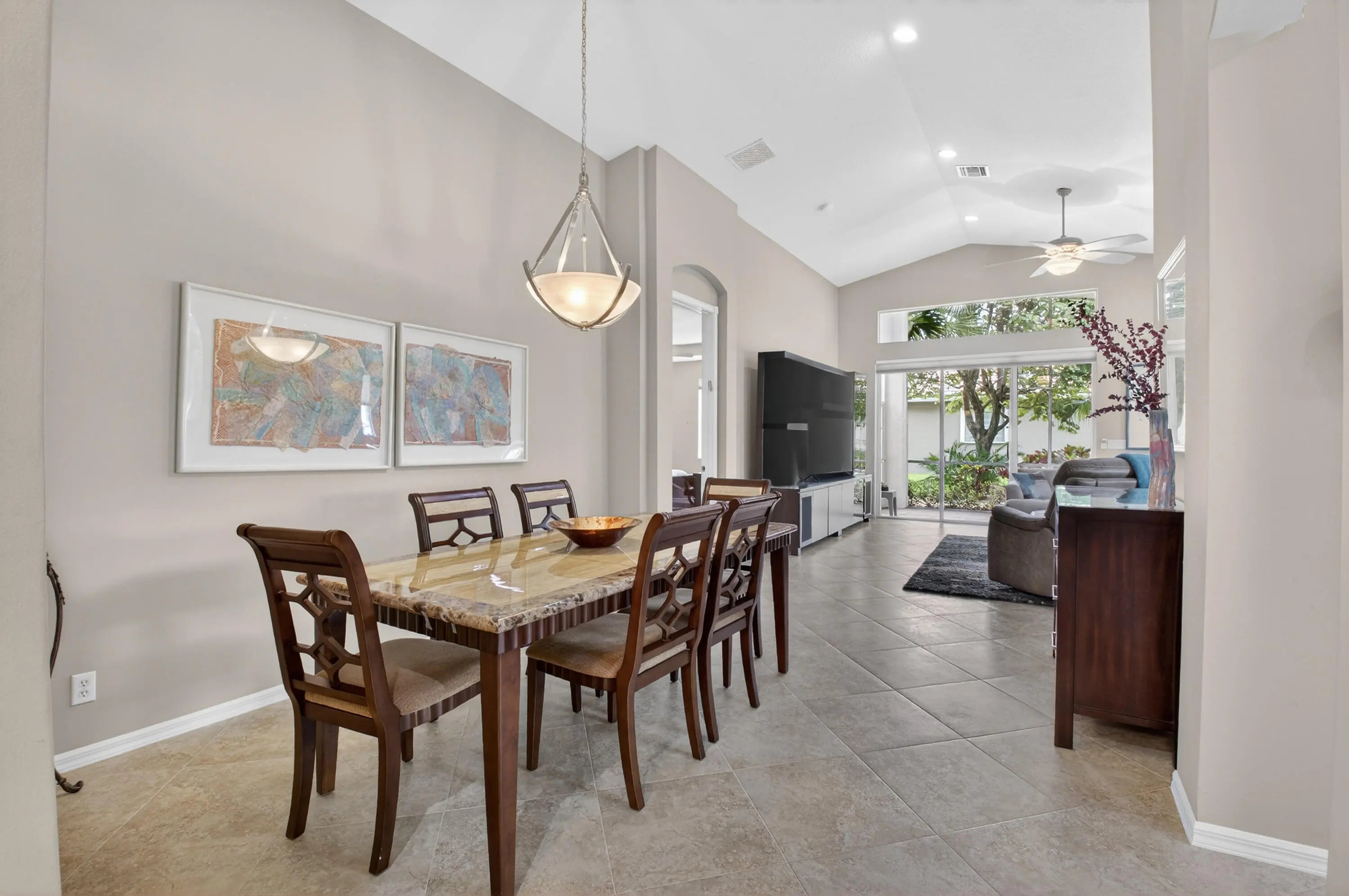 THIS DESIRABLE PORTOFINO MODEL (GREAT ROOM CONCEPT) IS BEING SOLD TURNKEY WITH SOME PERSONAL SELLER EXCEPTIONS. BEAUTIFUL NEUTRAL TILE SET ON A DIAGONAL WITH MARBLE INSERTS. GORGEOUS ONYX COUNTERS IN BATHROOMS, UPGRADED PLUMBING /LIGHTING FIXTURES, FRAMED MIRRORS & NO TUB IN GUEST BATHROOM. THE KITCHEN HAS A HUGE PANTRY, PULL-OUT SHELVES, 80/20 UNDERMOUNT SINK, NEWER FRENCH DOOR REFRIGERATOR, GRANITE COUNTERS & BACKSPLASH, SNACK BAR TILED SO NO SCUFF MARKS ON THE WALL. 3RD BEDROOM HAS A CONVENIENT MURPHY BED FOR GUESTS PLUS A BUILT IN WALL UNIT. CUSTOM CLOSET IN MASTER SUITE. SCREENED EURO-TILED ENTRY & PATIO. PROFESSIONALLY LANDSCAPED, EXTENDED SCREENED/COVERED PATIO, ACCORDION SHUTTERS, PEEK-A-BOO WATER VIEW & LEADERS/GUTTERS. THIS HOUSE IS A GREAT BUY & READY FOR YOU TO MOVE IN. COME JOIN THE VERY ACTIVE VILLAGGIO LIFESTYLE: 2 CLUBHOUSES (SOCIAL/ATHLETIC), 2 POOLS (INDOOR/OUTDOOR), CAFE, FULL-SERVICE SALON, PICKLEBALL, TENNIS, BOCCE, PING PONG, SHOW SERIES, CARDS & EXERCISE CLASSES 6 DAYS A WEEK AT NO ADDITIONAL CHARGE. A VERY WARM & WELCOMING COMMUNITY.
