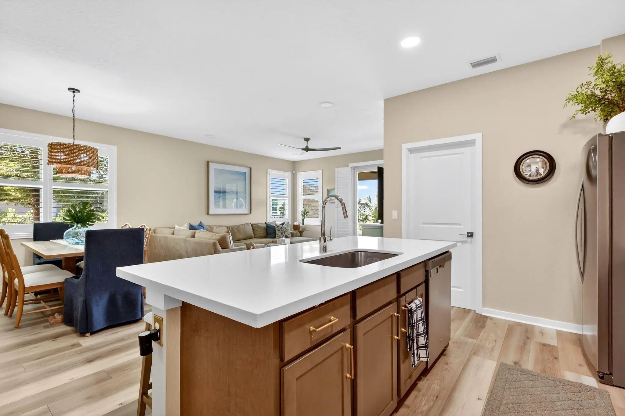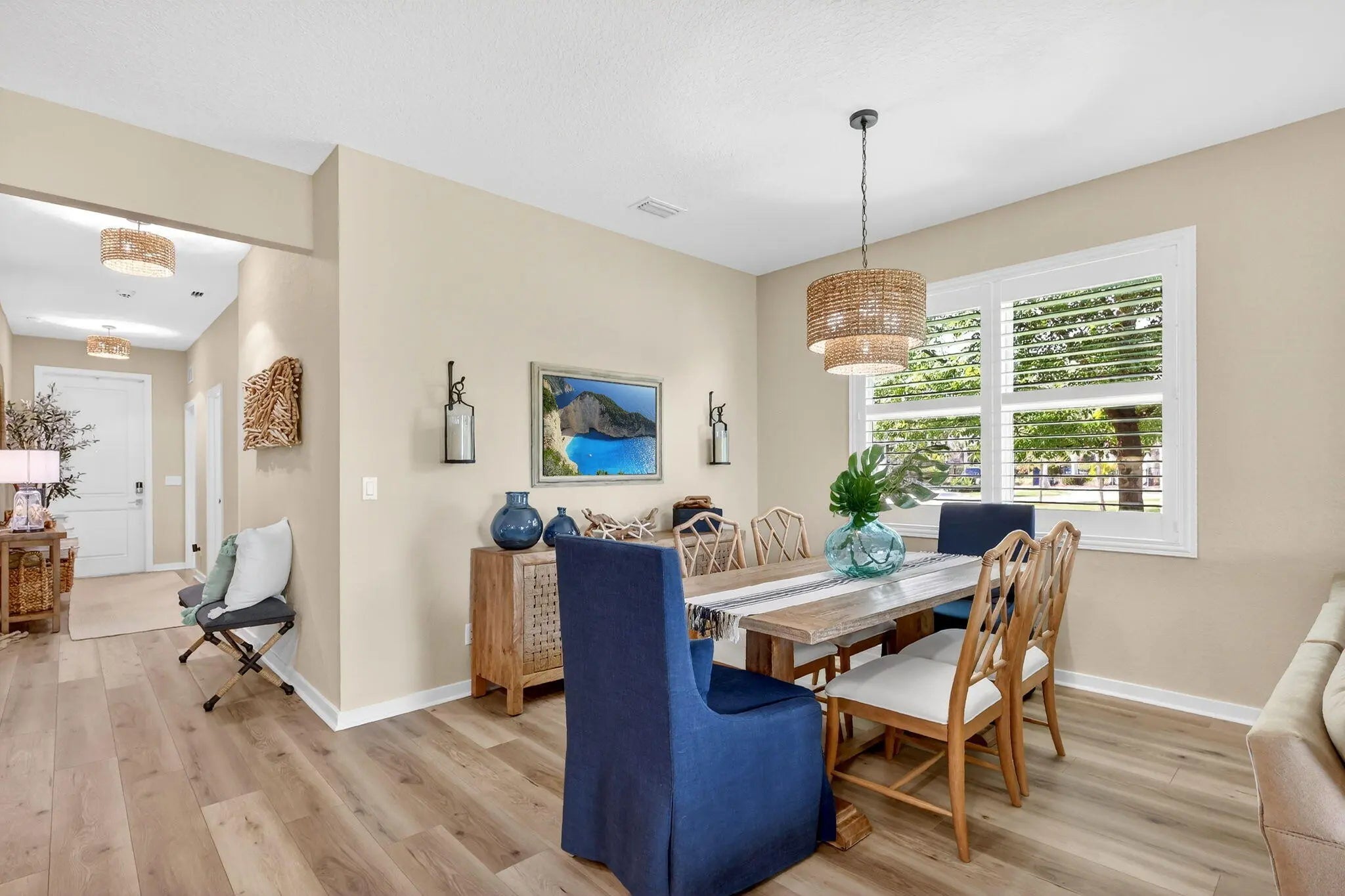 Stunning 3-bedroom, plus 11x10 flex room (4th bedroom), 2-bathroom with a two car garage. Nestled in a gated community of 50 homes, surrounded by nature preserves and a beautiful golf course. 2020 build with CBS construction, hurricane impact windows & doors. Perfect for entertaining and everyday life, the open concept living, dining and kitchen include a spacious large eat-in island, wood cabinetry, quartz counters and pantry have views of the Preserve. Neutral LVP and paint colors through the house giving it a serene space. The primary suite offers tranquil nature preserve views; it's ensuite bath includes dual sinks, a private water closet, and custom walk-in closet. Spacious 11x10 flex room, which could easily serve as a 4th bedroom, office or creative space. Additional features include a separate indoor laundry room, high-hat lighting and gorgeous white plantation shutters on the windows and sliding door, a two car garage with epoxy floors and custom cabinetry and slat walls for storage. Preserve view offers a tranquil backdrop, perfect for unwinding on your covered patio while enjoying nature. Canopy Cove's HOA, Seabranch, covers maintenance of the common areas, homeowners' landscaping & lawn care, community pool and entry gate all for a low monthly fee.. Pet friendly and rental friendly (a minimum of 6 months, up to 2 times per year). Hobe Sound's public beach is 5 miles away, and the charming downtown Hobe Sound offers a variety of local shops, dining options, and a coffeehouse. Jupiter and Stuart provide even more choices for shopping, entertainment, and everyday conveniences.