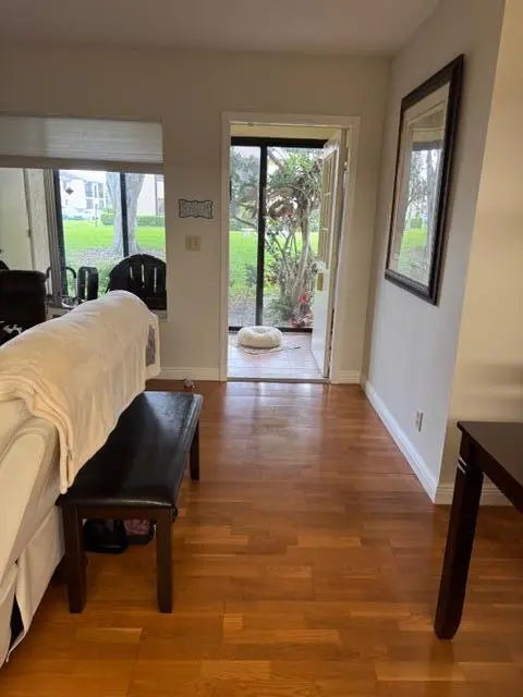 Spacious 2 bedroom with sliding glass enclosed balcony overlooking the courtyard. Enjoy beautiful sunsets, community pool and clubhouse overlooking the lake. BBQ available in the courtyard. Friendly 55+ community. Easy access to shopping and restaurants, I95 and the Turnpike. New ac 2023, roof 2024, building electrical panel 2023, club house updated 2022.