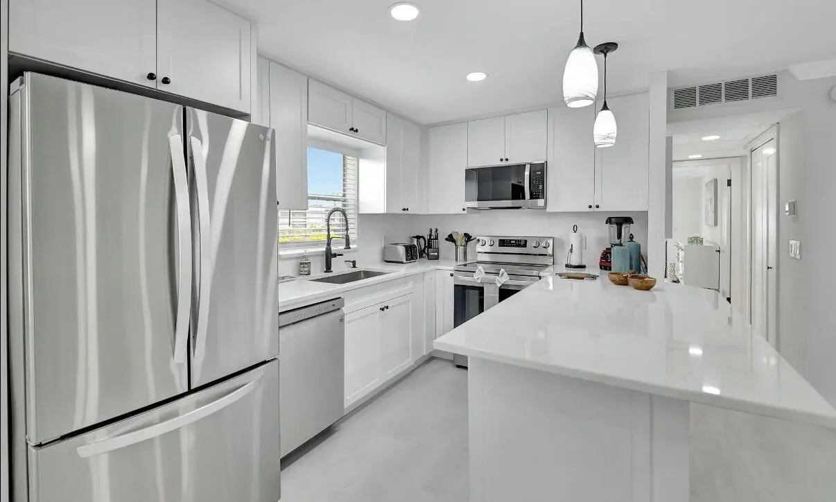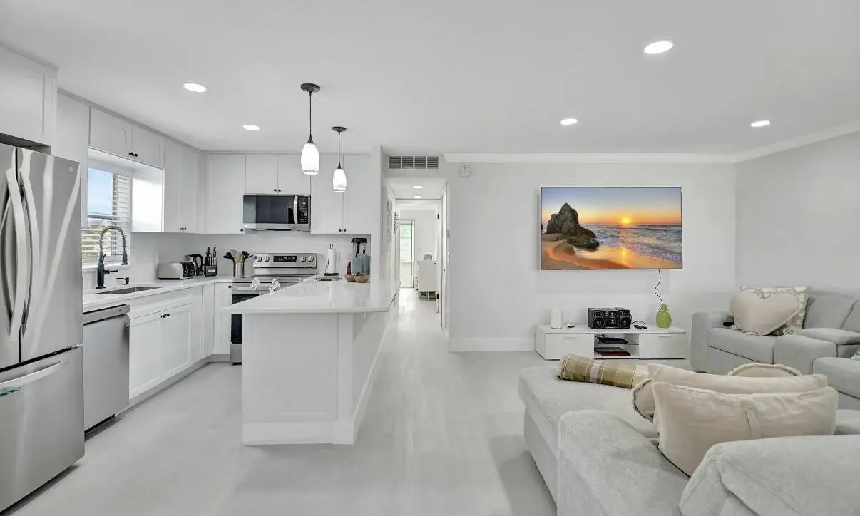 Completely remodeled ground-floor 2BR/2BA unit offered tastefully furnished and move-in ready. Features include a state-of-the-art kitchen, beautifully updated bathrooms, and an enclosed patio with washer and dryer in the utility closet. Stylish contemporary finishes throughout create a fresh, modern feel. Ideally situated just steps from the Monaco Clubhouse and close to shopping and dining. Enjoy Kings Point's exceptional amenities and vibrant lifestyle. A must-see!
