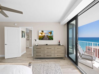 Enjoy fabulous, unobstructed long Ocean and Intracoastal views from this beautifully renovated and redesigned residence with a sunny southern exposure, large balcony space, and breathtaking sunrise-to-sunset vistas! This sophisticated condo offers a reconfigured floor plan with two spacious split-bedroom suites, each with its own private bath, along with high-end finishes throughout. Floor-to-ceiling impact glass windows and sliders fill every room with natural light. The 2023 kitchen has designer cabinetry, premium countertops, top-of-the-line appliances, a bar area, and a full-size washer and dryer. Beautifully renovated baths; primary features lighted mirrors, new shower, and Japanese-style fixtures. Furniture negotiable. The building is pet friendly, and recently completed balcony restoration, a roof replacement, and residential corridor modernization. SIRS is fully funded through 2026. Resort-style amenities including a pool, spa, sauna, fitness center, garage parking, 24/7 security, bike storage, and a stylish new social room. Ideally located between Boca Raton and Delray Beach, and just two buildings down from the Delray Sands Resort and only oceanfront restaurant in town!