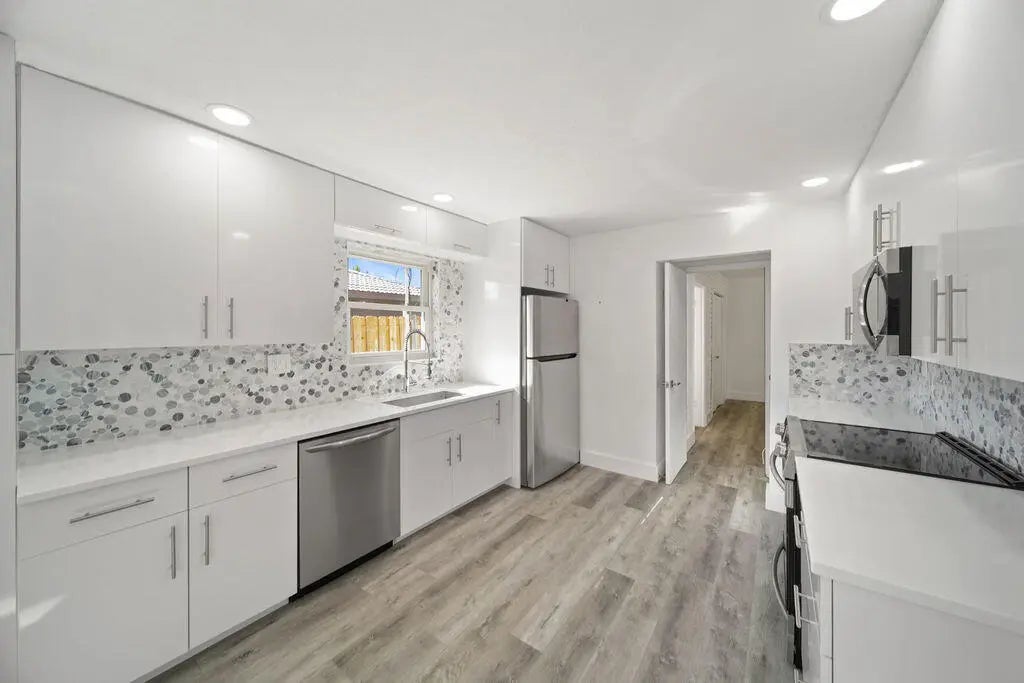 Modern well maintained residence with 3 bedrooms and a large extra room. This floor plan has been thoughtfully designed with the primary bedroom on suite. Enjoy comfortable living and entertaining in this spacious home which has been totally updated with a large beautiful and functional open kitchen with lots of extra cabinets and storage and is in the highly desirable Delray Beach area. Close to Atlantic Avenue with shops and restaurants. Bike or take a short drive to the beach.