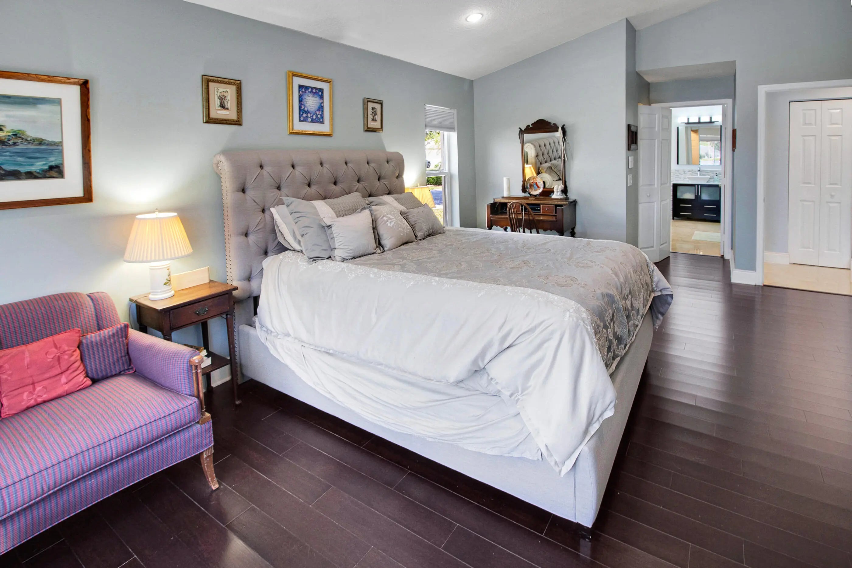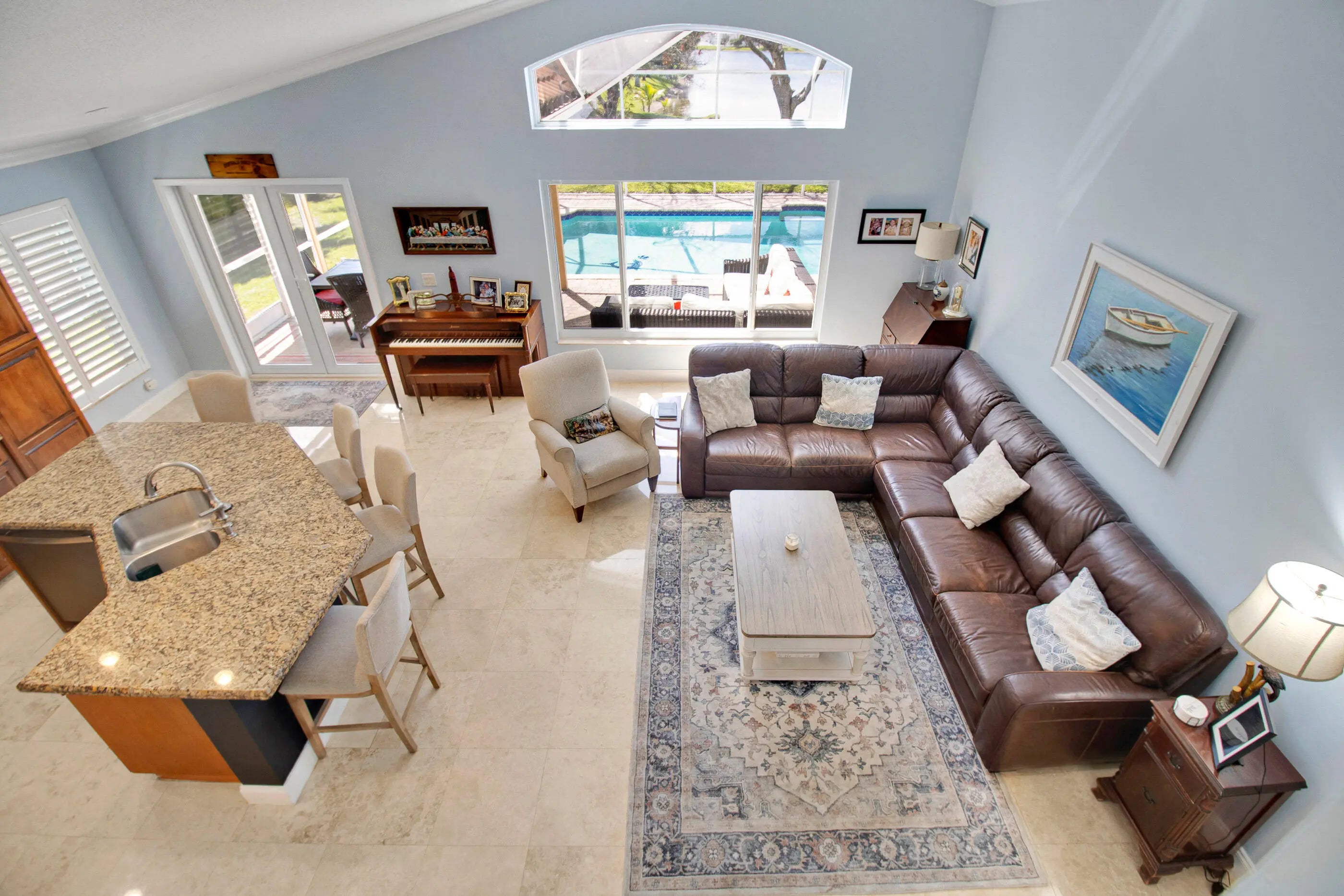 Known for its resort-style amenities, Pembroke Falls is the most desirable community in the city, and this affordable 4/3 home has every feature you desire. Begin outdoors, with its new roof, long lake views and a full-size screened pool, then step inside to a downstairs master suite. Impact windows and the garage door is impact too! Travertine marble flooring in the common area, dark cognac bamboo in the bedrooms and stairwell. Modern baths. Everything has been replaced, as needed; the roof in 2021, the AC in 2023, the dishwasher in '25, the dryer in '24, the pool pump in '25. There's a large open patio to enjoy the sunsets; granite countertops, and a gas range for the picky cook. The home is located on one of the community's rare cul-de-sacs, cable, security and internet are included.