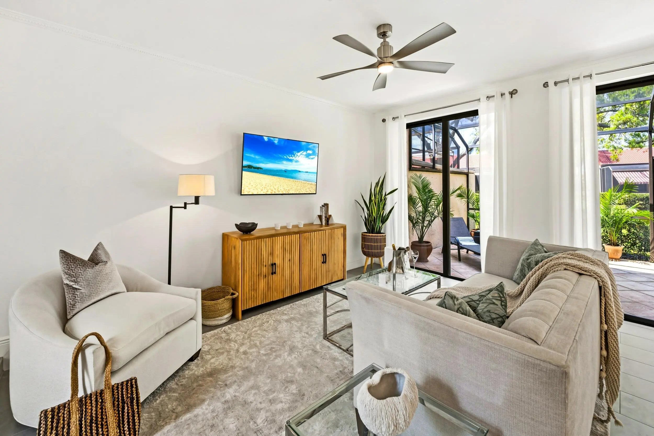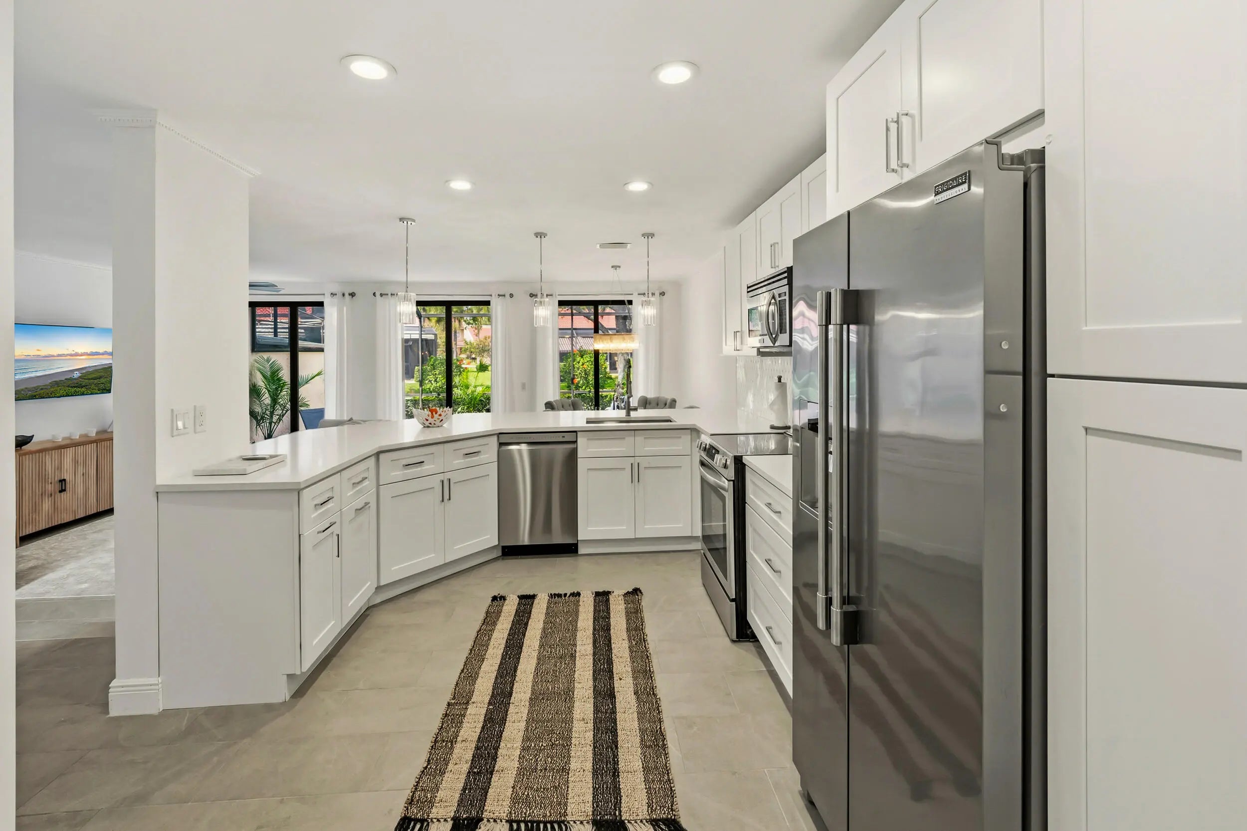 Welcome to luxury living in the prestigious PGA National Resort & Spa home of the renowned Cognizant Classic. This completely renovated townhome is a true showpiece, designed with high-end finishes and impeccable attention to detail, offering the look and feel of a professionally curated model home. Step inside to an open-concept floor plan featuring an oversized chef's kitchen with premium cabinetry, sleek countertops, and top-tier appliances—perfect for both everyday living and entertaining. The spacious living and dining areas flow seamlessly to a screened-in patio, where you'll enjoy tranquil views of a lush greenway, creating a private and serene outdoor retreat. Upstairs, you'll find two generously sized bedrooms, each with its own en-suite bath, providing comfort and privacy for residents and guests alike. Located in one of Palm Beach Gardens' most desirable communities, this exceptional property combines modern elegance with resort-style surroundings—just moments from world-class golf, dining, and amenities.