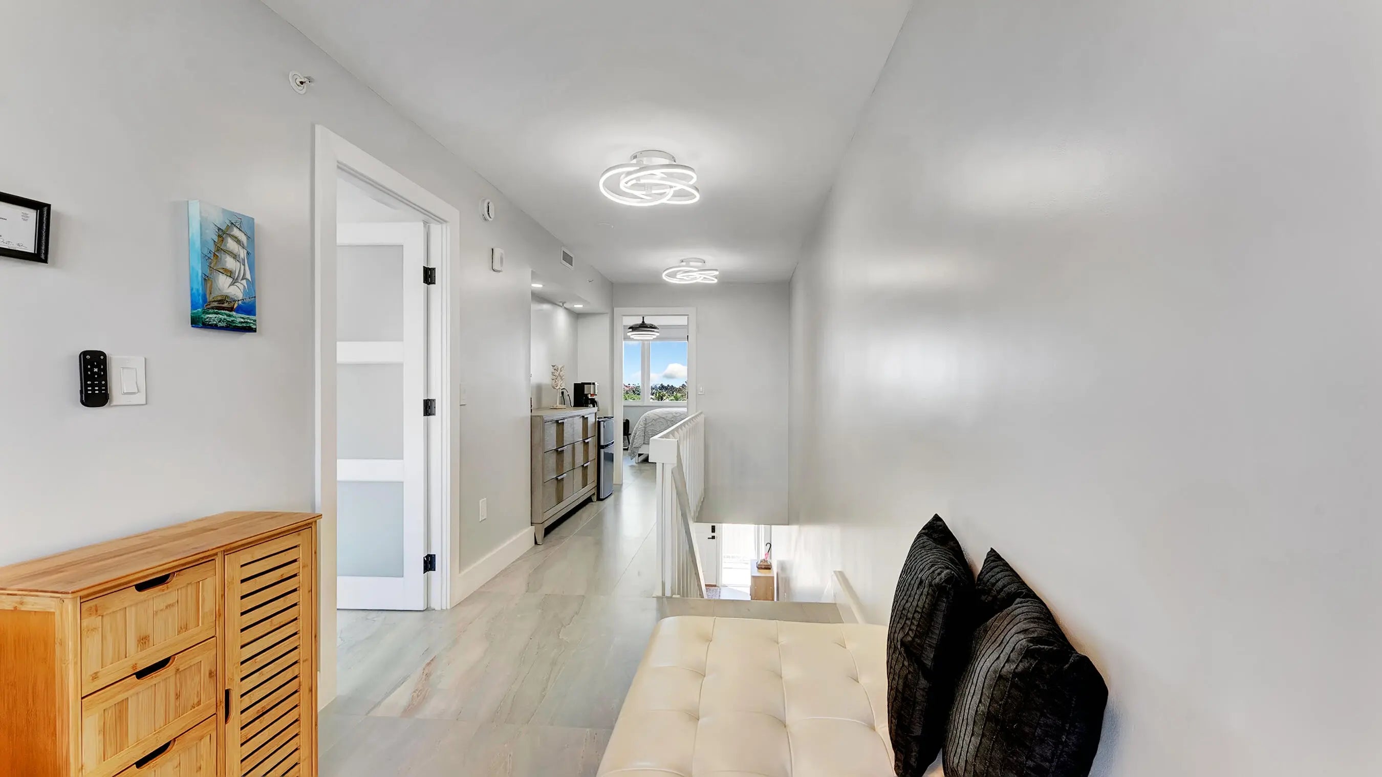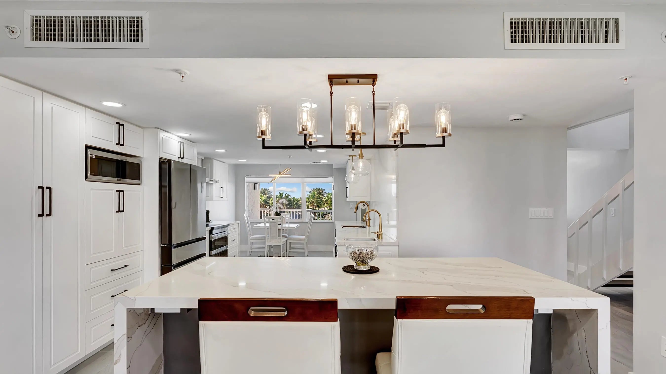 Exquisite multi-level penthouse with a beautiful beach view offering 2 bedrooms plus a versatile mezzanine/loft/office and 2.5 bathrooms, completely renovated. This move-in-ready residence features new electrical and plumbing, designer bathrooms with smart toilets, and a custom chef's kitchen with handcrafted cabinetry, pantry, island, and brand-new appliances. Upstairs includes a convenient laundry area and a thoughtfully designed pet station. Ideal for sophisticated buyers seeking peace of mind with modern finishes and functional elegance. Located in a unique community spanning from the ocean to the Intracoastal, residents enjoy private beach access with tiki huts, and boat docks available for purchase (subject to availability), offering the ultimate South Florida lifestyle.