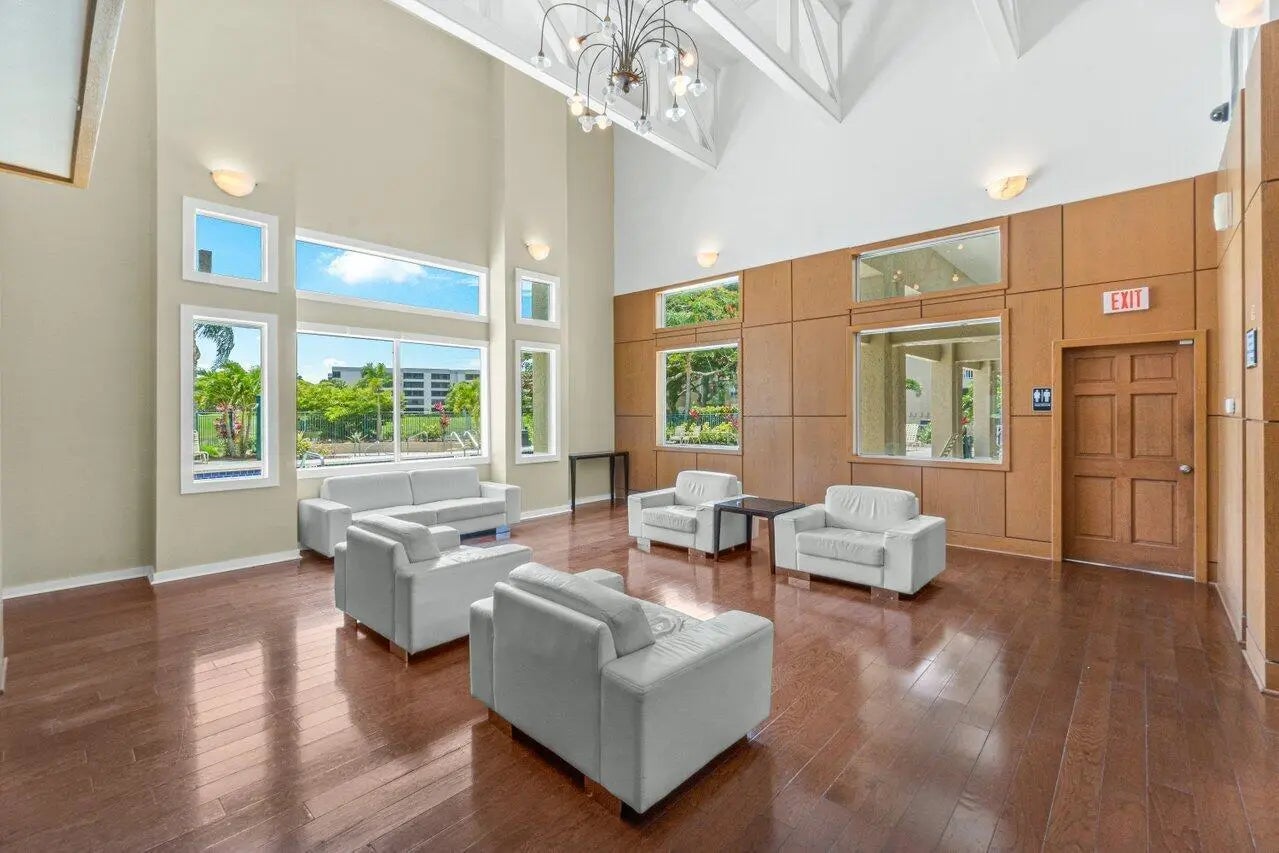 Large 1st floor 2bed/2 bath condo. open floor plan, renovated kitchen with granite countertops, SS appliances, tile floorings , standing shower and bathtub, screened patio, nice view to gardens & tennis courts. Great community with pool & gym. Located on Linton, close to 95 & commercial plaza.