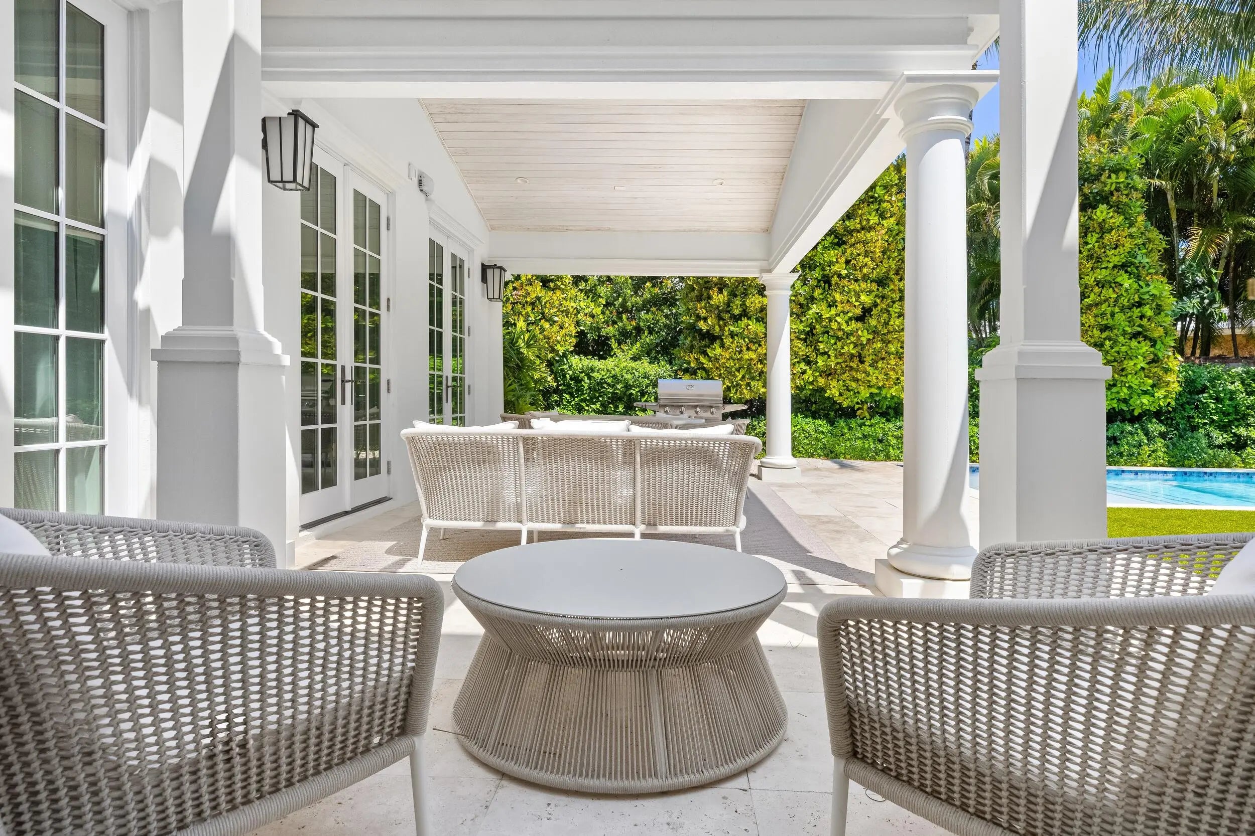 Gorgeous North End 4BR/5.1BA plus library home on a cabana street. Custom built in 2020 and designed by Smith and Moore Architects. Oversized great room with elegant fireplace. Library features wet bar and wine fridge. Gourmet kitchen with breakfast nook opens to family room. Primary Suite features morning bar, dual baths and closets, and balcony overlooking pool and gardens. First floor VIP Guest suite. Additional highlights include elevator, generator, and 2 car garage. Beautiful outdoor spaces including loggia, patio, pool, and spa.