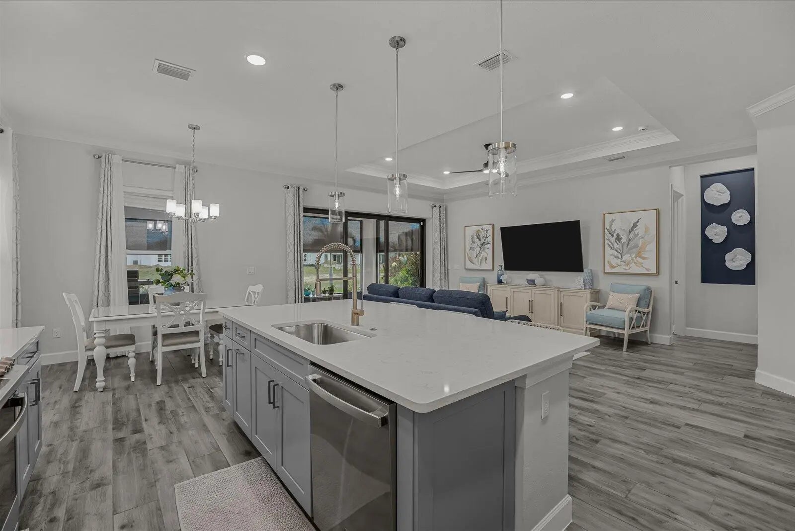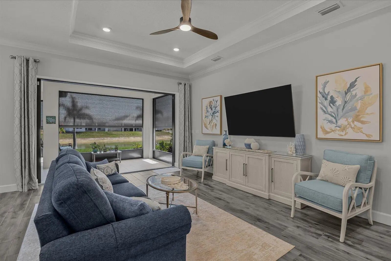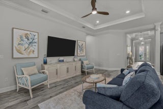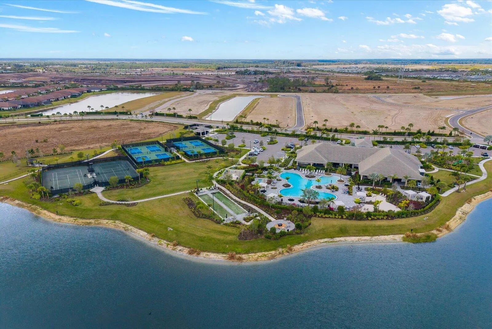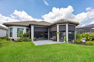 Presenting this Exquisite Custom Designed Lakefront Home in the Esplanade at Tradition! The Mediterranean- inspired architectural style offers an exceptional one-story layout that beautifully emphasizes the indoor and outdoor living spaces. Pride of ownership shines through & the attention to detail is unparalleled. The Gourmet Kitchen features GE Cafe Stainless Steel appliances with a GE Gas Range + a custom single basin, Quartz Countertops & 42" Cabinetry. The Interior features Full Impact windows, Sliders, an Impact glass front door, Crown moldings, 10' Volume/Tray Ceilings, 8"x 40" Porcelain Plank flooring, Custom blinds, Light fixtures & Ceiling fans + neutral paint tones to enhance the Coastal theme. The Large 595sq ft. Garage features tandem 3 car parking + Tank less water heater. An Oversized 420sq ft. Screened Lanai has pocket doors that fully retract for a true indoor & outdoor experience & offers serene views out to the Lake. A gas stub & water line are available for an Outdoor kitchen + oversized 7" gutters protect the foundation with buried down spouts. Privacy is ensured by fully Motorized Solar screens. Enjoy "La Dolce Vita" and live your life to the fullest! Luxury & sophistication combine to offer you an inviting oasis of leisure-focused resort amenities. The "Venue" is a state-of-the-art 16,800 sq. ft. premium amenity center showcasing the resort style pool, first class fitness center, a luxurious Spa, a grand community room, a catering kitchen, the Toasted Cafe, a large Veranda with alfresco dining & all surrounded by perfectly manicured gardens/landscaping.