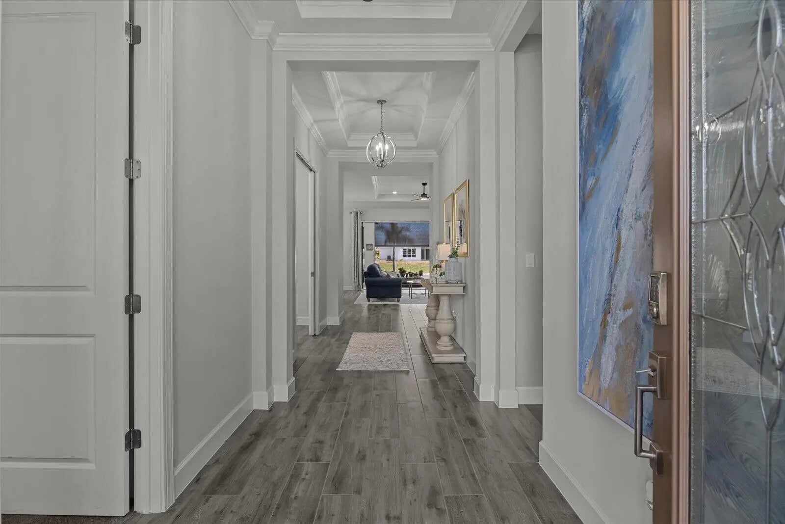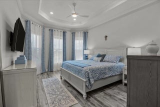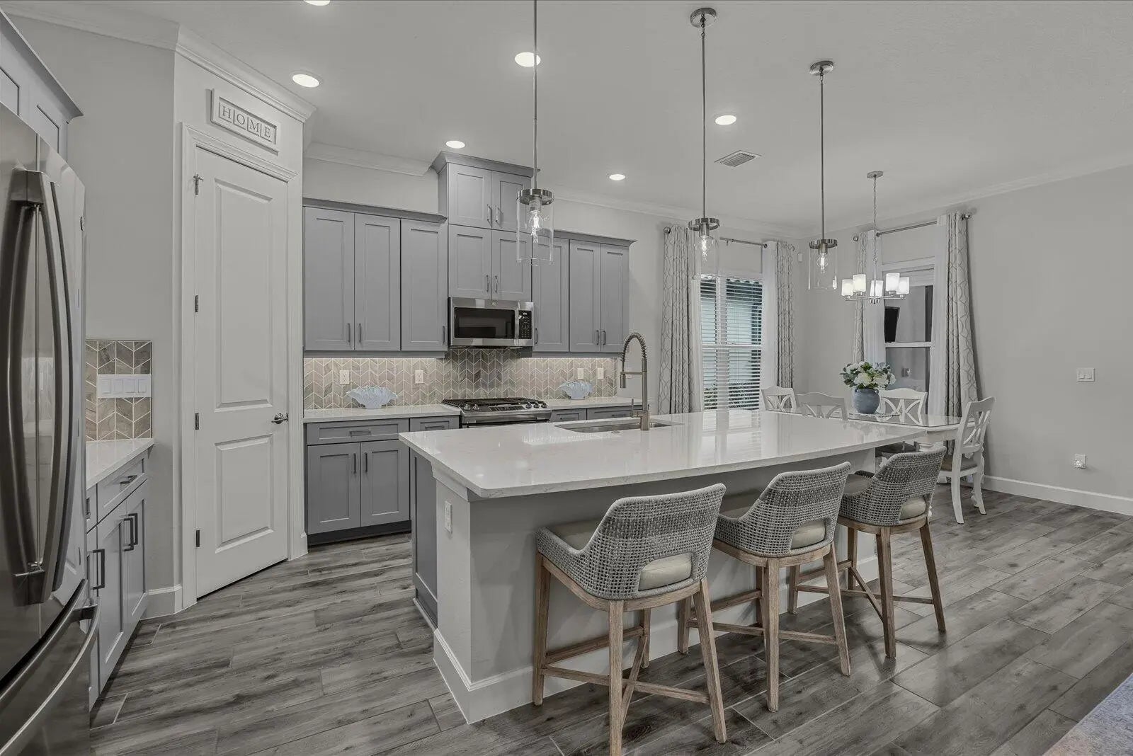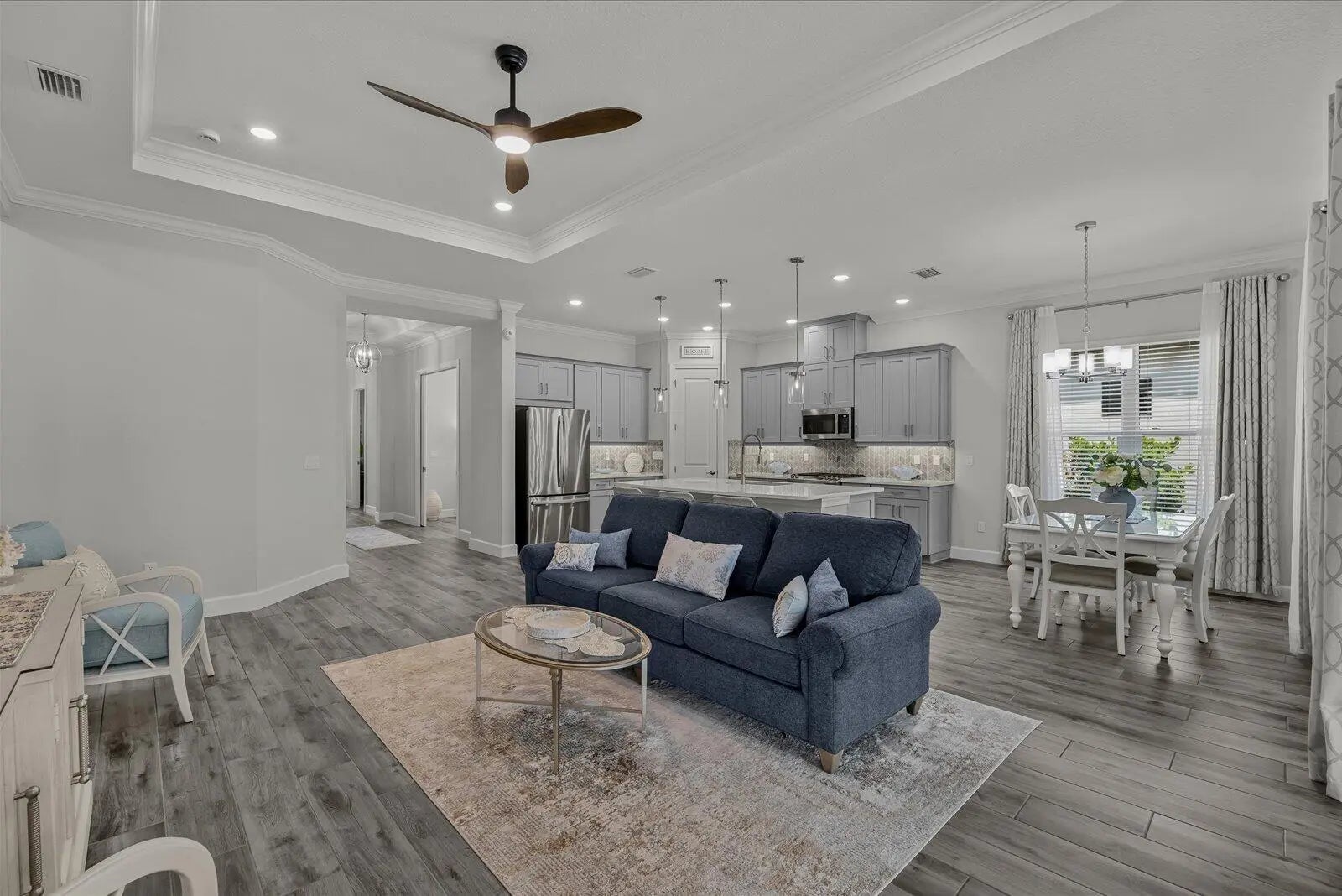 Presenting this Exquisite Custom Designed Lakefront Home in the Esplanade at Tradition! The Mediterranean- inspired architectural style offers an exceptional one-story layout that beautifully emphasizes the indoor and outdoor living spaces. Pride of ownership shines through & the attention to detail is unparalleled. The Gourmet Kitchen features GE Cafe Stainless Steel appliances with a GE Gas Range + a custom single basin, Quartz Countertops & 42" Cabinetry. The Interior features Full Impact windows, Sliders, an Impact glass front door, Crown moldings, 10' Volume/Tray Ceilings, 8"x 40" Porcelain Plank flooring, Custom blinds, Light fixtures & Ceiling fans + neutral paint tones to enhance the Coastal theme. The Large 595sq ft. Garage features tandem 3 car parking + Tank less water heater. An Oversized 420sq ft. Screened Lanai has pocket doors that fully retract for a true indoor & outdoor experience & offers serene views out to the Lake. A gas stub & water line are available for an Outdoor kitchen + oversized 7" gutters protect the foundation with buried down spouts. Privacy is ensured by fully Motorized Solar screens. Enjoy "La Dolce Vita" and live your life to the fullest! Luxury & sophistication combine to offer you an inviting oasis of leisure-focused resort amenities. The "Venue" is a state-of-the-art 16,800 sq. ft. premium amenity center showcasing the resort style pool, first class fitness center, a luxurious Spa, a grand community room, a catering kitchen, the Toasted Cafe, a large Veranda with alfresco dining & all surrounded by perfectly manicured gardens/landscaping.