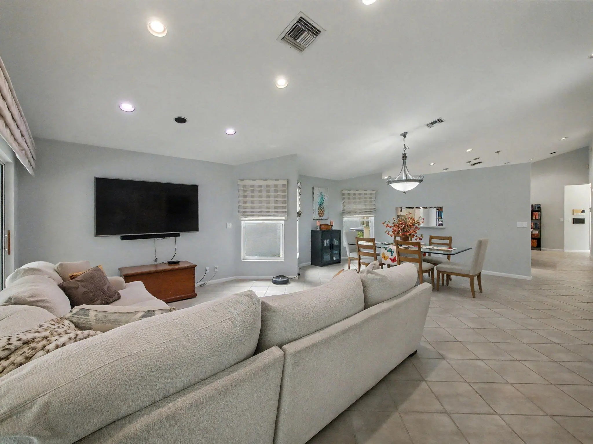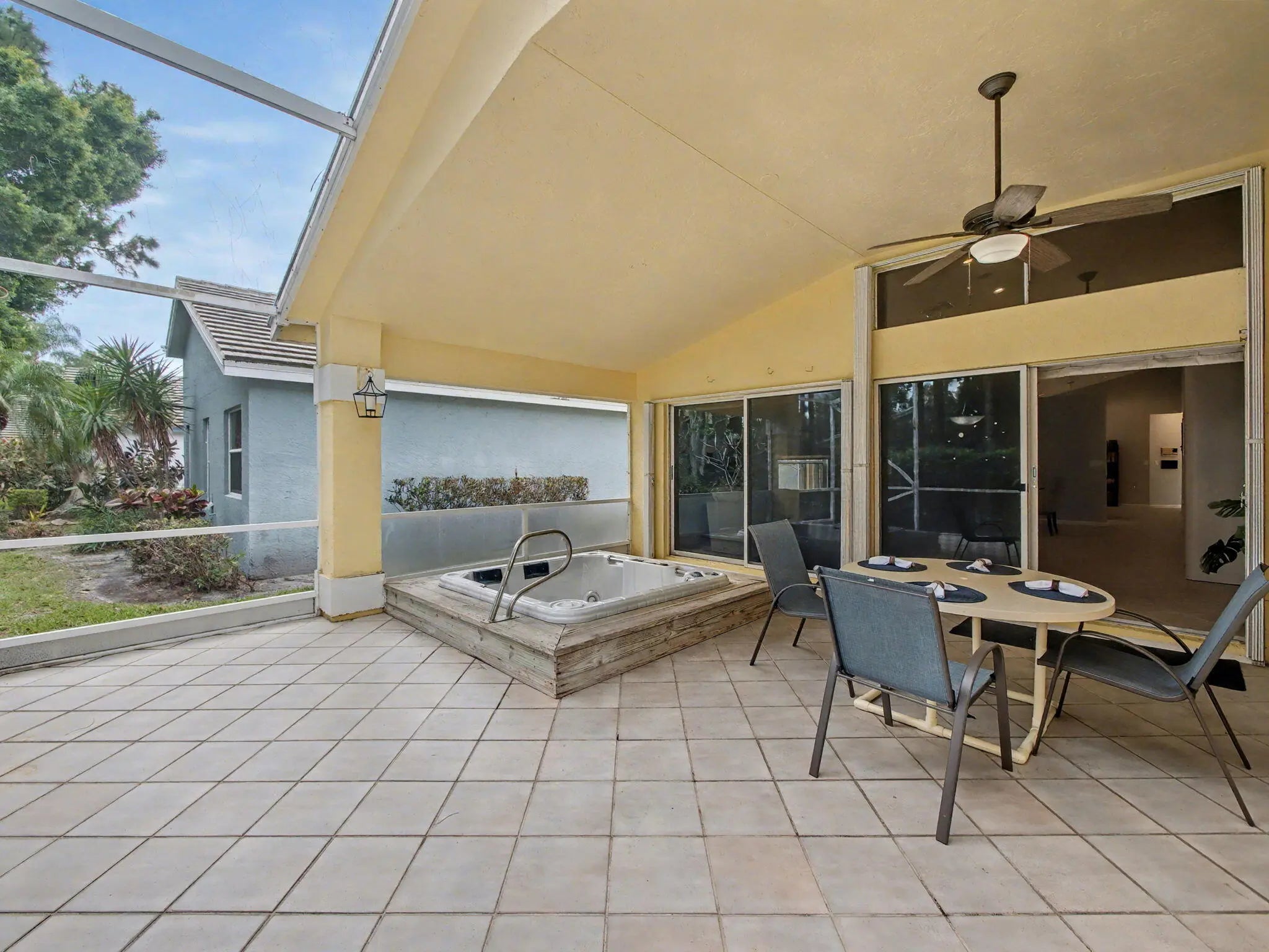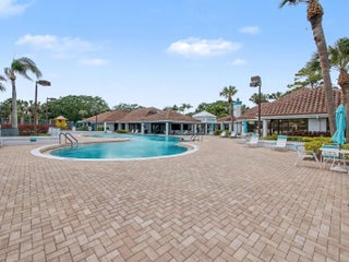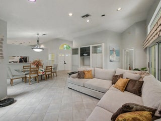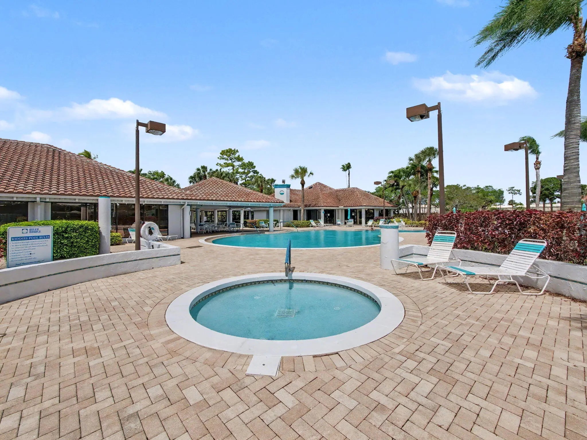 Beautifully maintained and truly move-in ready, this 3-bedroom, 2-bathroom home with a 2-car air-conditioned garage is located in the highly sought-after, all-ages community of River Bridge. This 24/7 manned gated community is known for its well maintained grounds and amenities. This home offers peace of mind with a 2020 roof and a 2026 water heater. A charming screened front porch welcomes you in, setting the tone for the bright and inviting interior. Inside, you'll find an open layout with neutral tones, elevated ceilings, and recessed lighting. Tile flooring flows seamlessly throughout the main living areas. The updated eat-in kitchen features updated cabinetry with new hardware, newer stainless steel appliances, and a large island, perfect for entertaining or casual dining. The spacious primary suite offers double walk-in closets with custom organizers. The ensuite bathroom features dual vanities, a walk-in shower, a relaxing soaking tub, a linen closet, and a bidet. Step outside to enjoy the Florida lifestyle year-round from your covered and screened-in patio. The laundry area is conveniently located in the garage and includes a brand-new Samsung washer and dryer. River Bridge offers resort-style amenities and is conveniently located near shopping, dining, and just minutes from Okeeheelee Park. HOA includes lawn maintenance, cable, Internet, 24-hour manned gate and security.