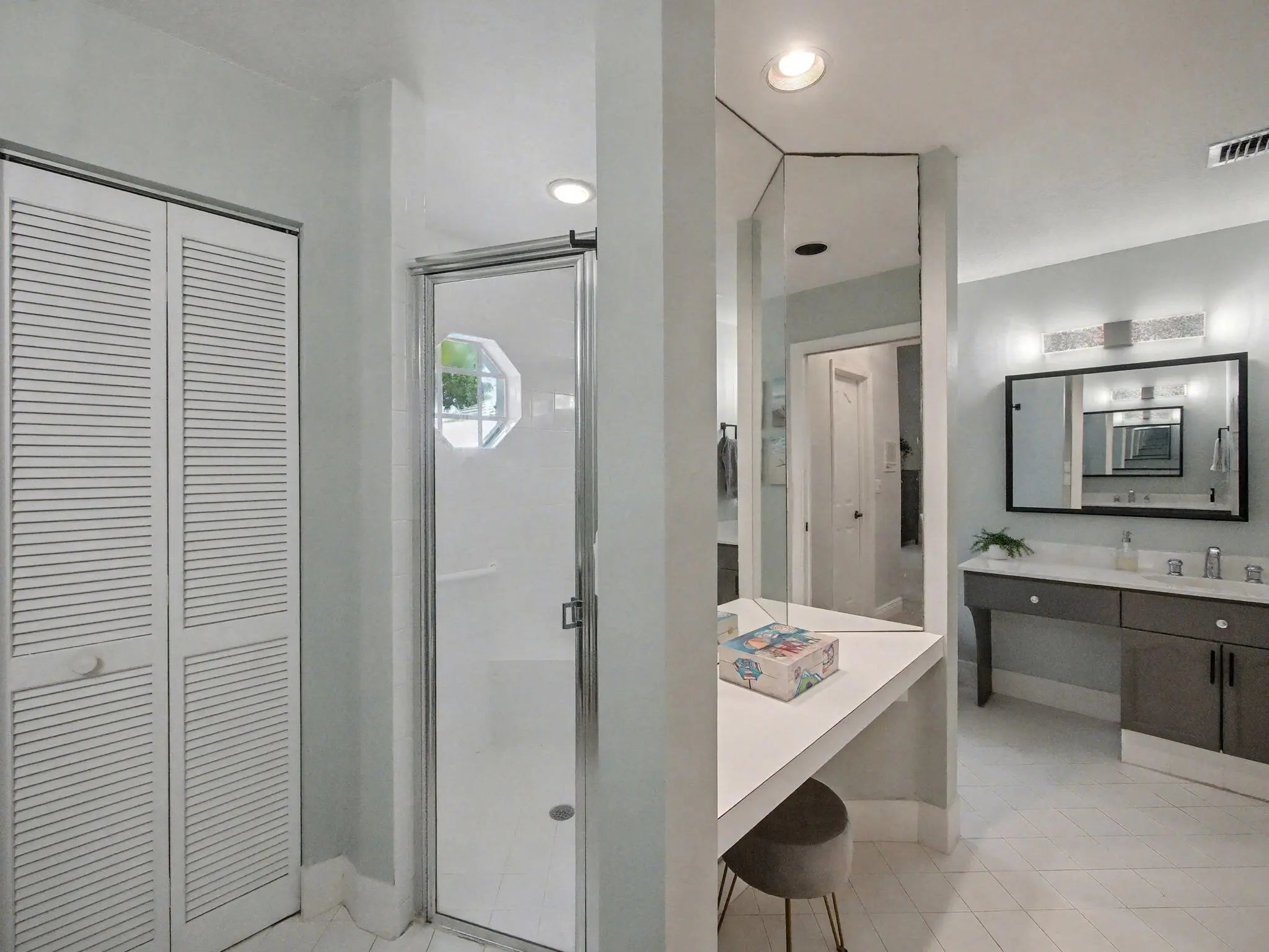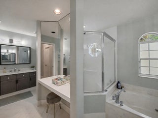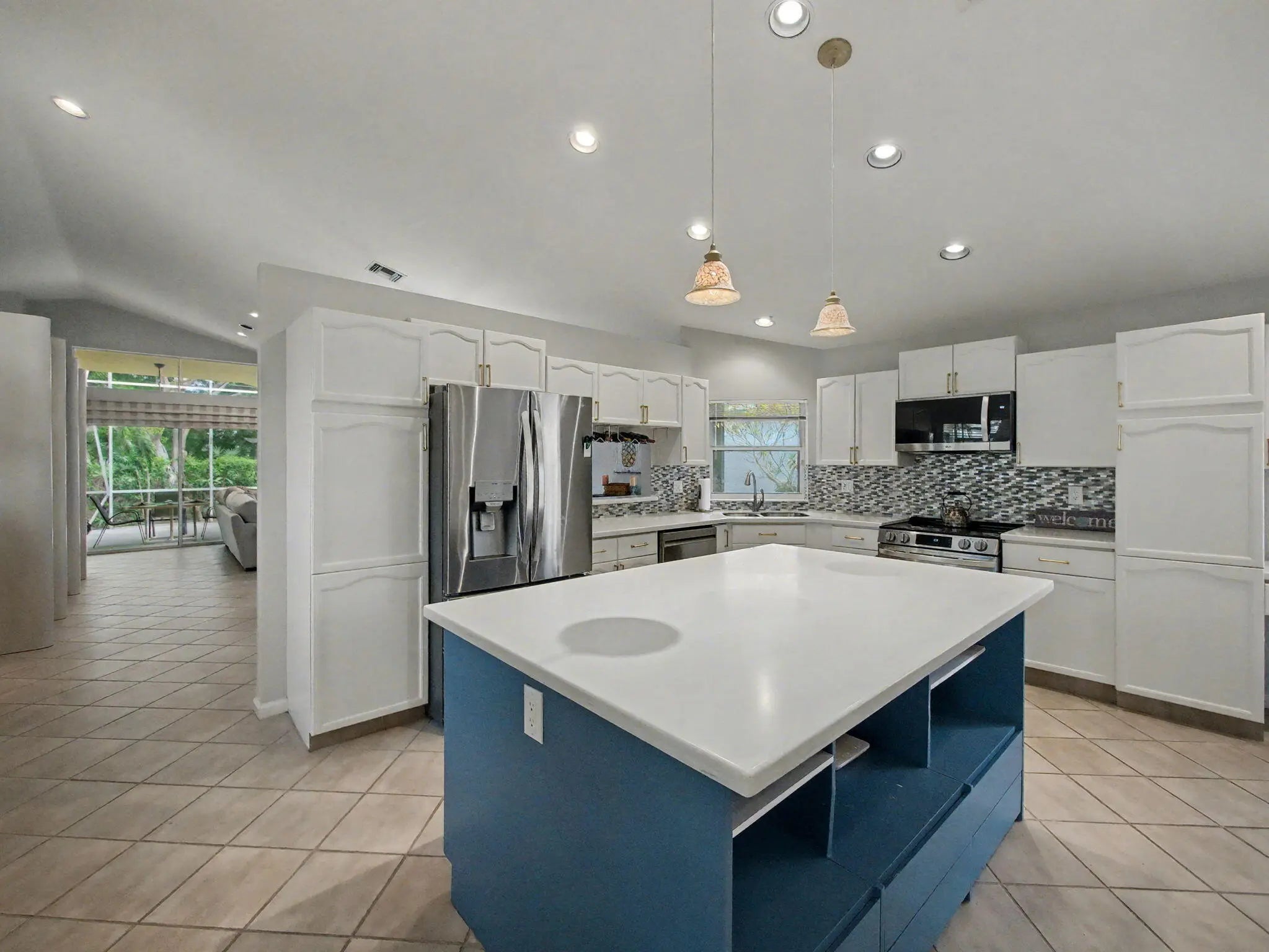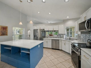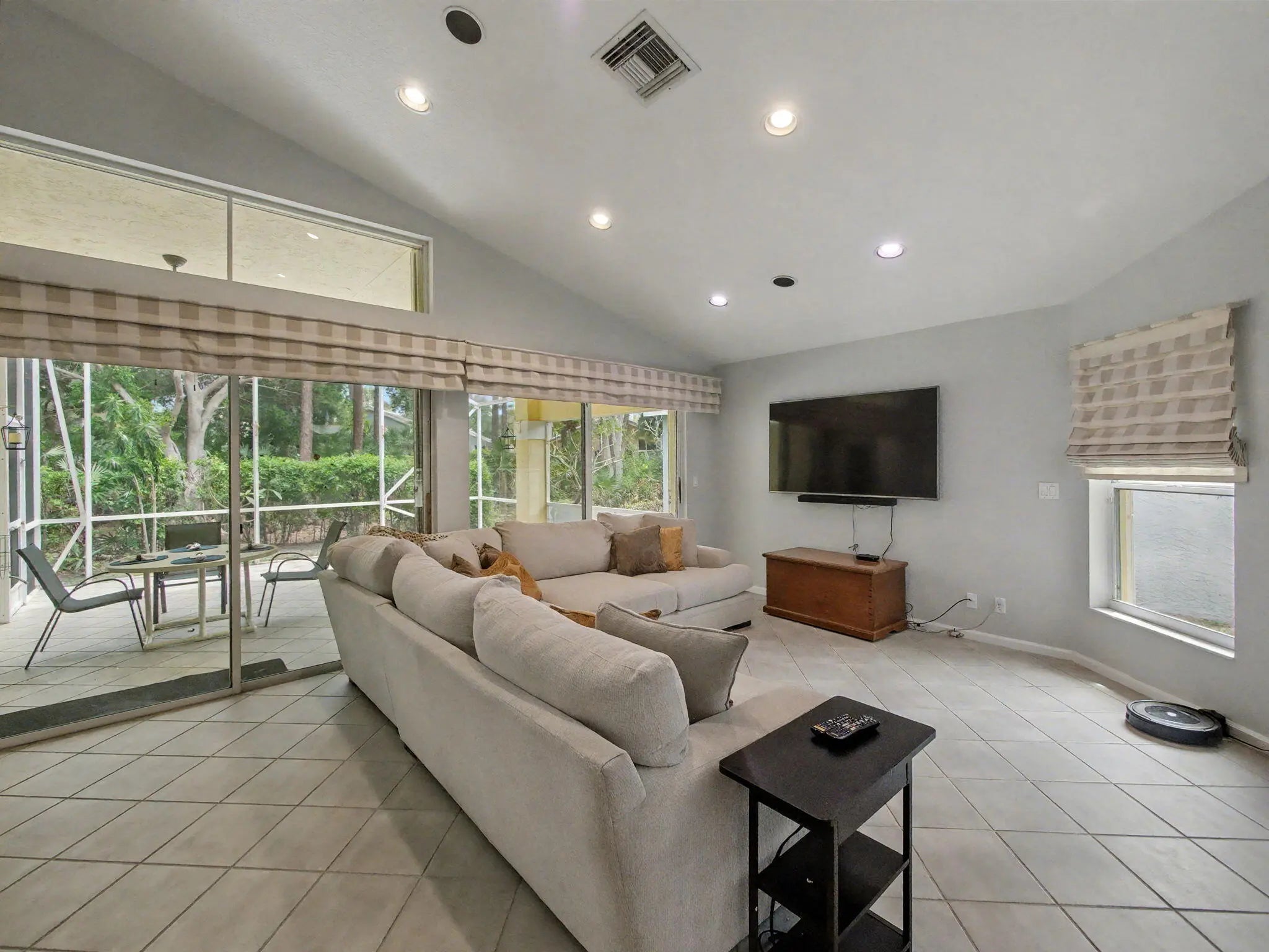 Beautifully maintained and truly move-in ready, this 3-bedroom, 2-bathroom home with a 2-car air-conditioned garage is located in the highly sought-after, all-ages community of River Bridge. This 24/7 manned gated community is known for its well maintained grounds and amenities. This home offers peace of mind with a 2020 roof and a 2026 water heater. A charming screened front porch welcomes you in, setting the tone for the bright and inviting interior. Inside, you'll find an open layout with neutral tones, elevated ceilings, and recessed lighting. Tile flooring flows seamlessly throughout the main living areas. The updated eat-in kitchen features updated cabinetry with new hardware, newer stainless steel appliances, and a large island, perfect for entertaining or casual dining. The spacious primary suite offers double walk-in closets with custom organizers. The ensuite bathroom features dual vanities, a walk-in shower, a relaxing soaking tub, a linen closet, and a bidet. Step outside to enjoy the Florida lifestyle year-round from your covered and screened-in patio. The laundry area is conveniently located in the garage and includes a brand-new Samsung washer and dryer. River Bridge offers resort-style amenities and is conveniently located near shopping, dining, and just minutes from Okeeheelee Park. HOA includes lawn maintenance, cable, Internet, 24-hour manned gate and security.