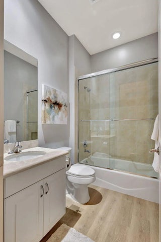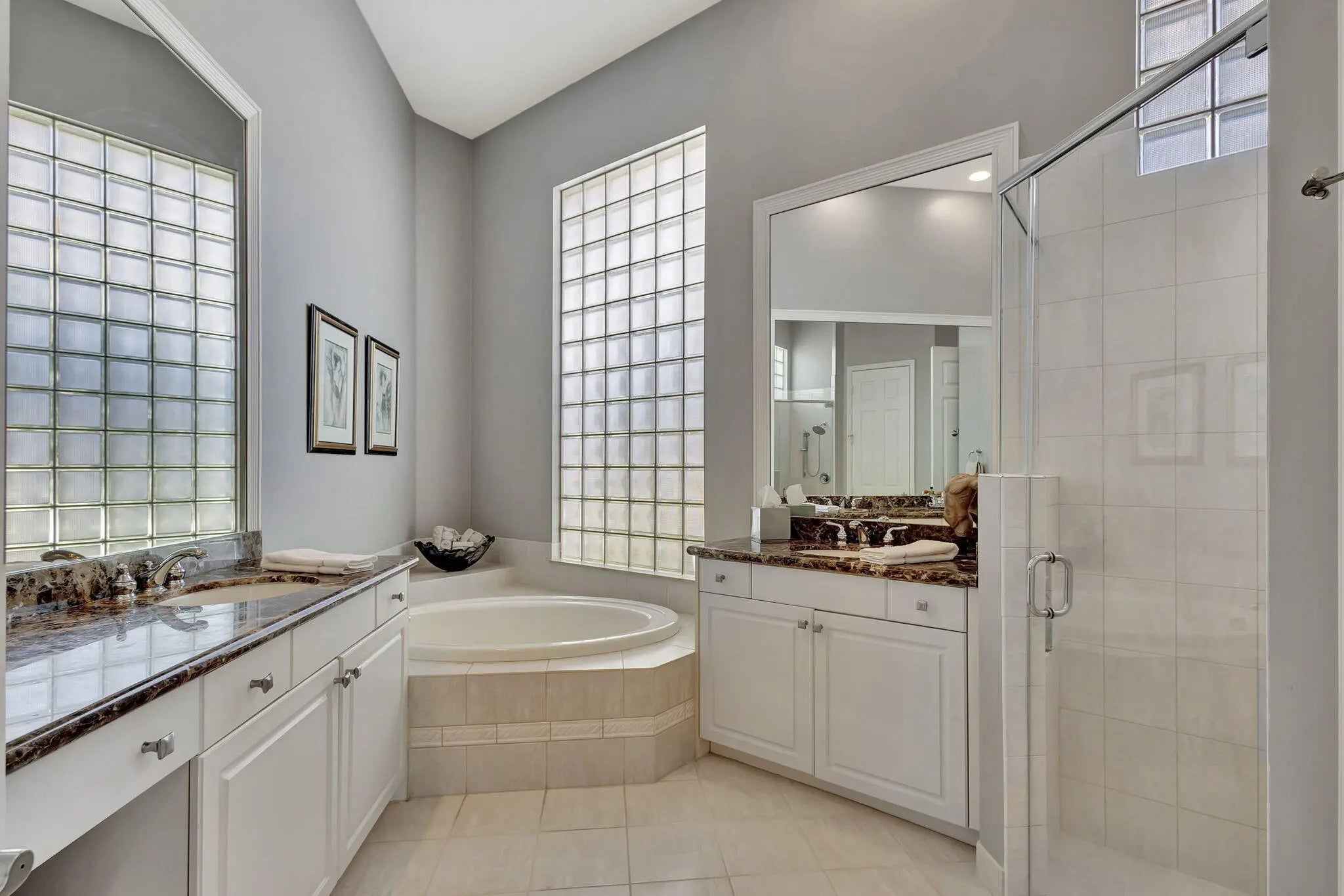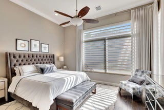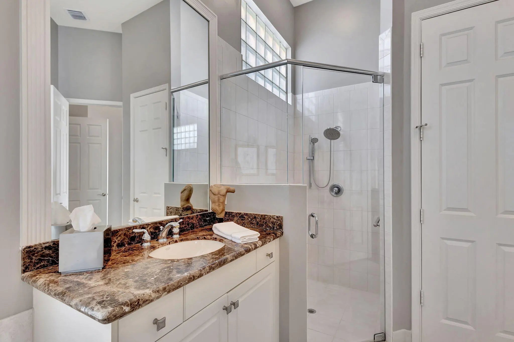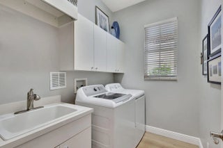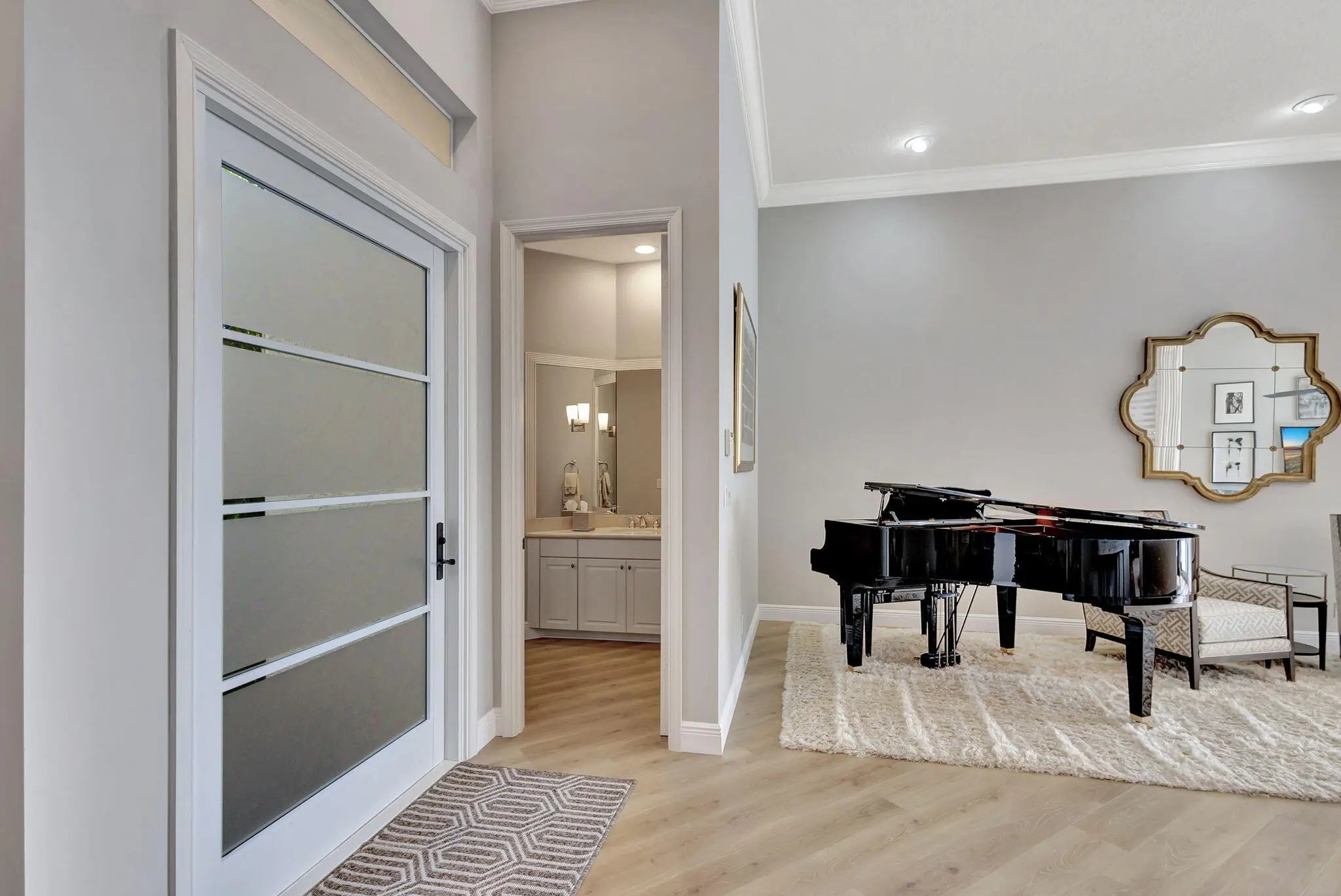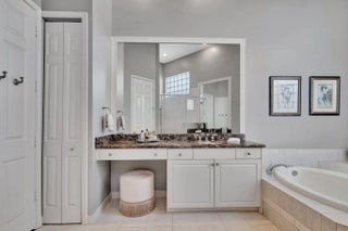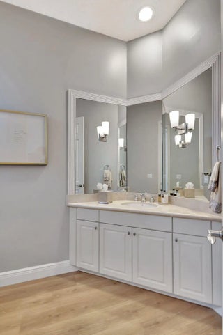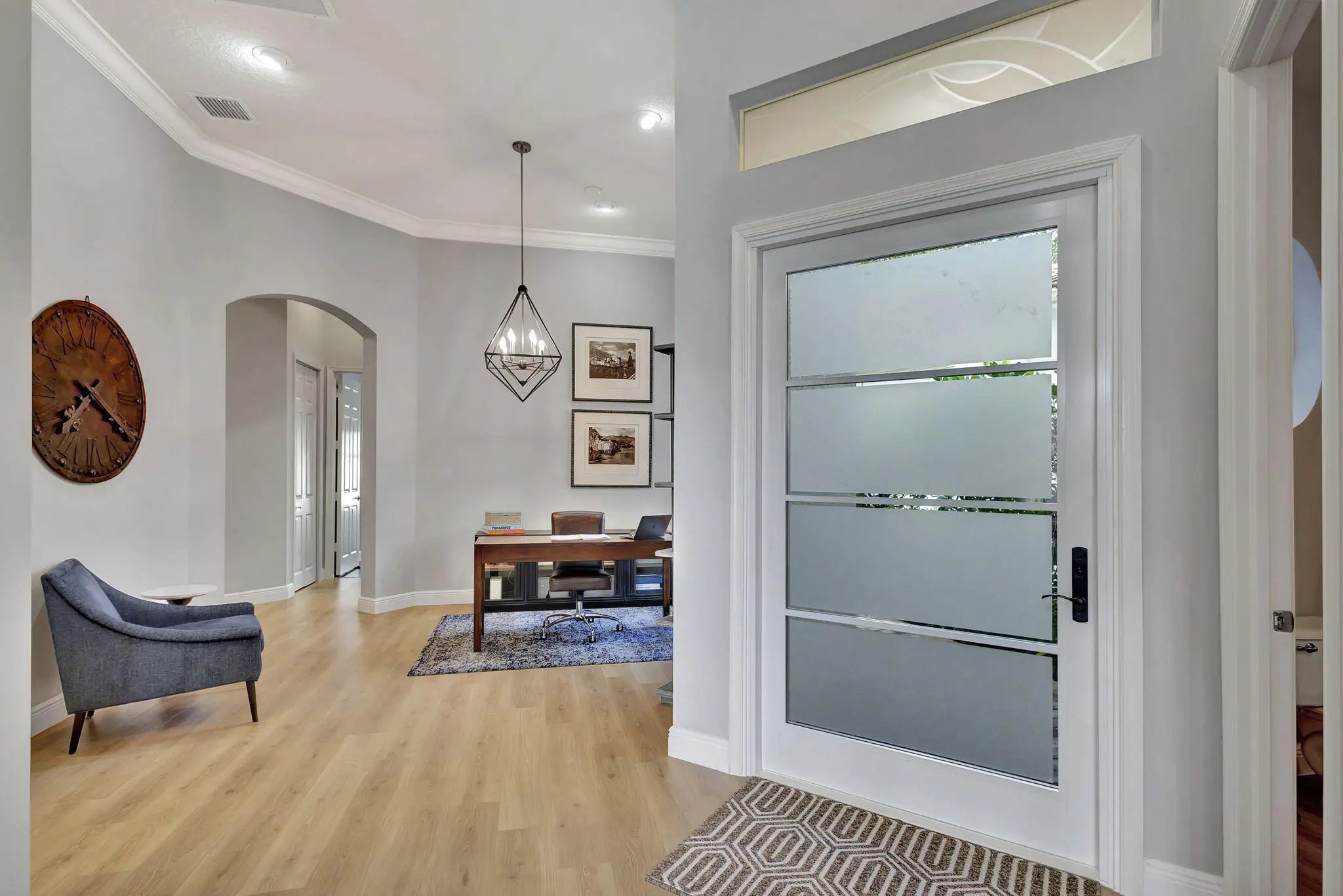 Located in the highly desirable community of The Country Club at Mirasol, this beautifully updated Belize floorplan offers three bedrooms, two full baths, and a powder room, perfectly positioned to capture tranquil water views and the relaxed elegance of Florida living. Upon entering the home, you are welcomed by light-filled interiors, soaring ceilings, and a refined palette enhanced by fresh interior and exterior paint, crown molding, and designer lighting throughout. The main living areas feature attractive laminated flooring, while the bedrooms are finished with engineered wood flooring for warmth and continuity. The renovated kitchen is thoughtfully designed with newer cabinetry, updated countertops, a stylish translucent tile backsplash, and newer appliances including the refrigerator, range top, and dishwasher. The space opens effortlessly to the great room and dining area, creating an ideal setting for both everyday living and entertaining. Large windows and sliding doors frame beautiful water views and allow natural light to fill the living spaces. Hunter Douglas shades and motorized sunshades in the family room, along with designer drapery framing each window, add both elegance and functionality. The primary suite offers a peaceful retreat with custom closet built-ins and a well-appointed bath. Two additional bedrooms provide comfortable accommodations for family or guests. Outdoor living is equally appealing with a private patio and pool overlooking the water. The salt-chlorination pool system offers easy maintenance and enhanced swimming comfort. Additional upgrades and improvements include: • Impact windows and doors throughout (except for two large south-facing windows in the great room and dinette which are protected by hurricane shutters) • Hot water heater - 2023 • Newer lighting and ceiling fans • Newer washer and dryer • Custom closet built-ins • Designer window treatments, Sonos system and motorized shades This move-in ready residence combines thoughtful upgrades, bright interiors, and peaceful water views within one of Palm Beach Gardens' most sought-after private club communities. Sports membership