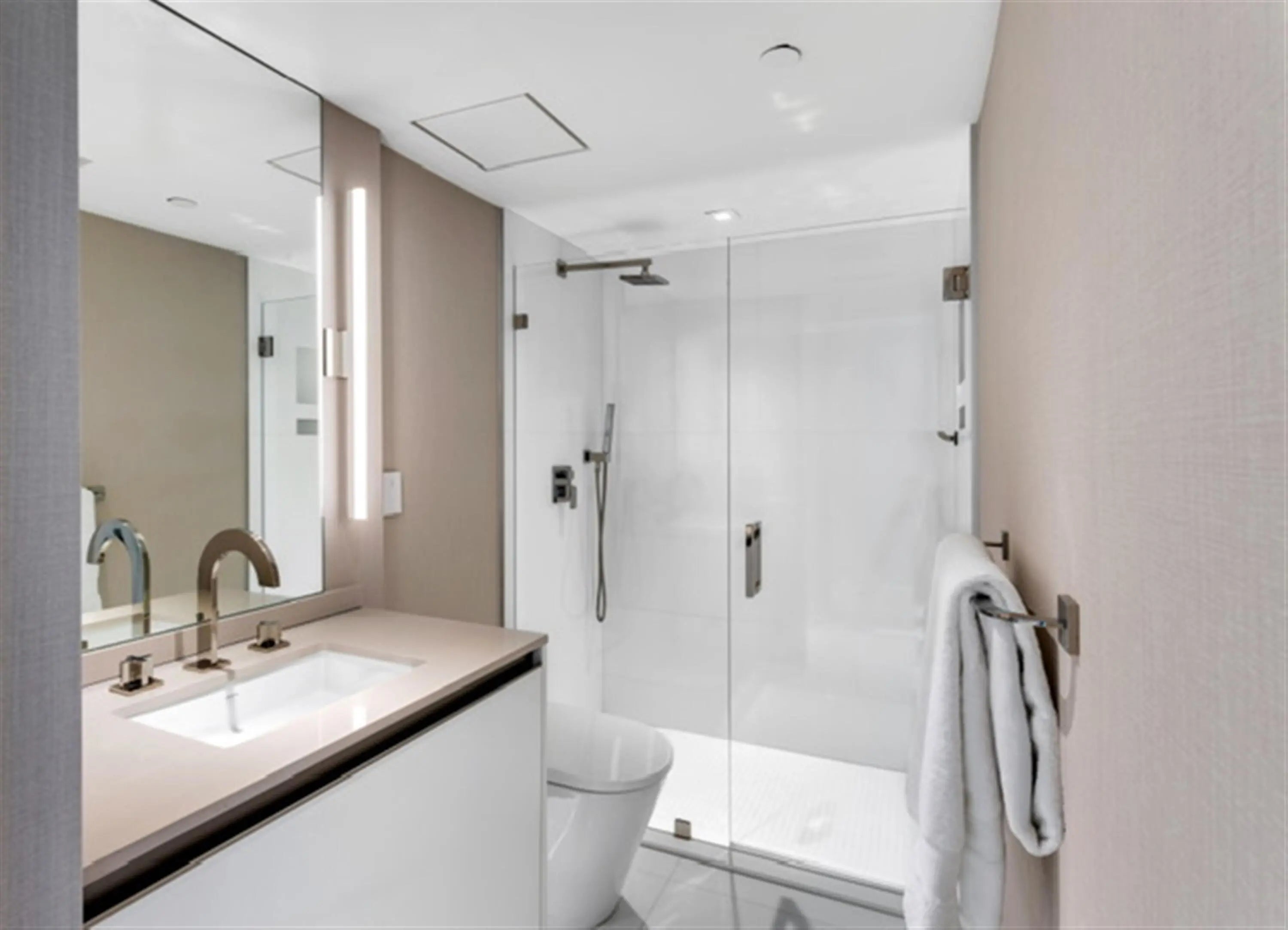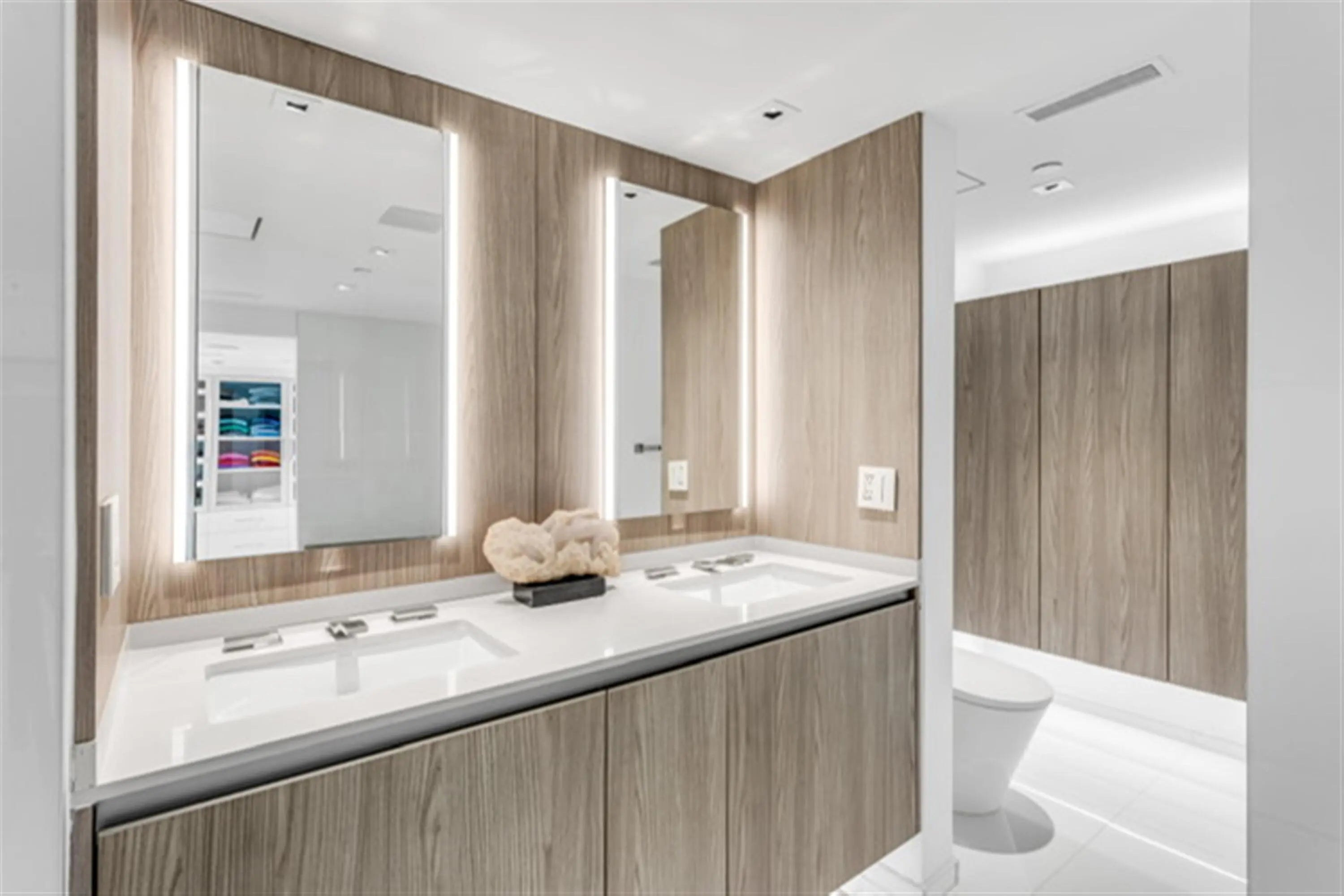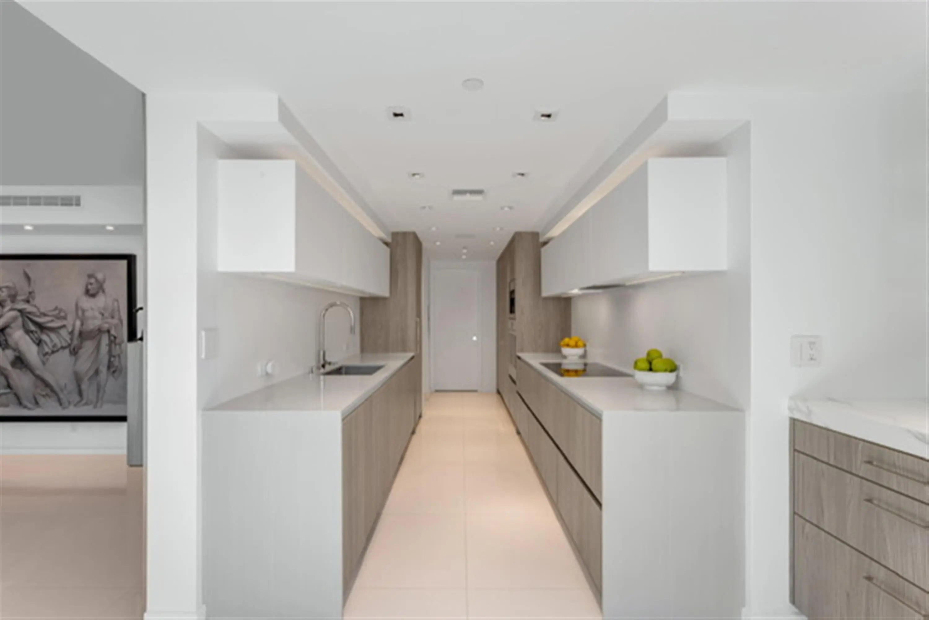 This penthouse oceanfront residence offers rare east-to-west exposure with direct water views from both sides, featuring unobstructed sunrise views over the Atlantic and breathtaking sunset views over the Intracoastal—no buildings across the street, just water and sky from every angle. The 2-bedroom, 2-bathroom home spans 1,886 square feet under air (2,450 total) and features expansive balconies on both sides, each over 50 feet long and up to 8.5 feet deep, creating seamless indoor-outdoor living directly on the beach. • Sub-Zero Refrigeration and Freezer Towers, Wine Refrigerator... • Custom Polished Nickel Dining Room Built-in Cabinet by SieMatic • Custom paneling throughout by SieMatic • White Glass Top Porcelain Floors Throughout • Polished nickel faucets and fixtures throughout by Franz Viegener • Master Bedroom Custom Sconces and Guest Bedroom Chandelier and Sconces all by Lobmeyr, Vienna...collector quality • Sonos soundbars mounted under credenzas in bedrooms • Entire Bespoke Dressing Room is fully glazed (glass front cabinetry) • Floating Beds both by Daniele Lago, Italy...underlit by SieMatic • Primary Bath has Two-Person Walk-in Shower with Starphire Glass Panels And A Soaking Tub • Guest Bath has Sonneman lighting and Starphire Glass Shower Enclosure Fully Furnished and Equipped Includes: • 2 restored curved sofas by Vladimir Kagan in Metaphores Paris White Boucle • Custom KravetCouture Pillows • Custom Starphire Glass Dining Table Seats 10 • Custom Lucite Upholstered Dining Chairs, Set 8 • Custom Starphire Glass Cocktail Table • Custom Lucite Floating Poufs, 2 • Haviland Fine China, Custom Order, Set for 8 • Christofle Acier Flatware, Set for 10 • All-Clad Chefs Selection of Cookware • Top Quality Kitchen Accessories • Full Bar: Stemware by Spiegelau, wine accessories • New Dyson Vacuum Cleaner • Tabletop: placemats, linens • Bed: Linens by Frette, Primary Bed Mattress by Duxiana • Bath: Towels, Bath Mats by Pottery Barn • Master Bedroom Lamps Signed Romeo Rega, Skyscraper, Rare pair in polished nickel, 1970's, collector quality • Guest Bedroom Lamps Signed Romeo Rega, Halston Era, Rare pair in Lucite, Polished Nickel and Stainless All artwork and pedestals are available for sale.