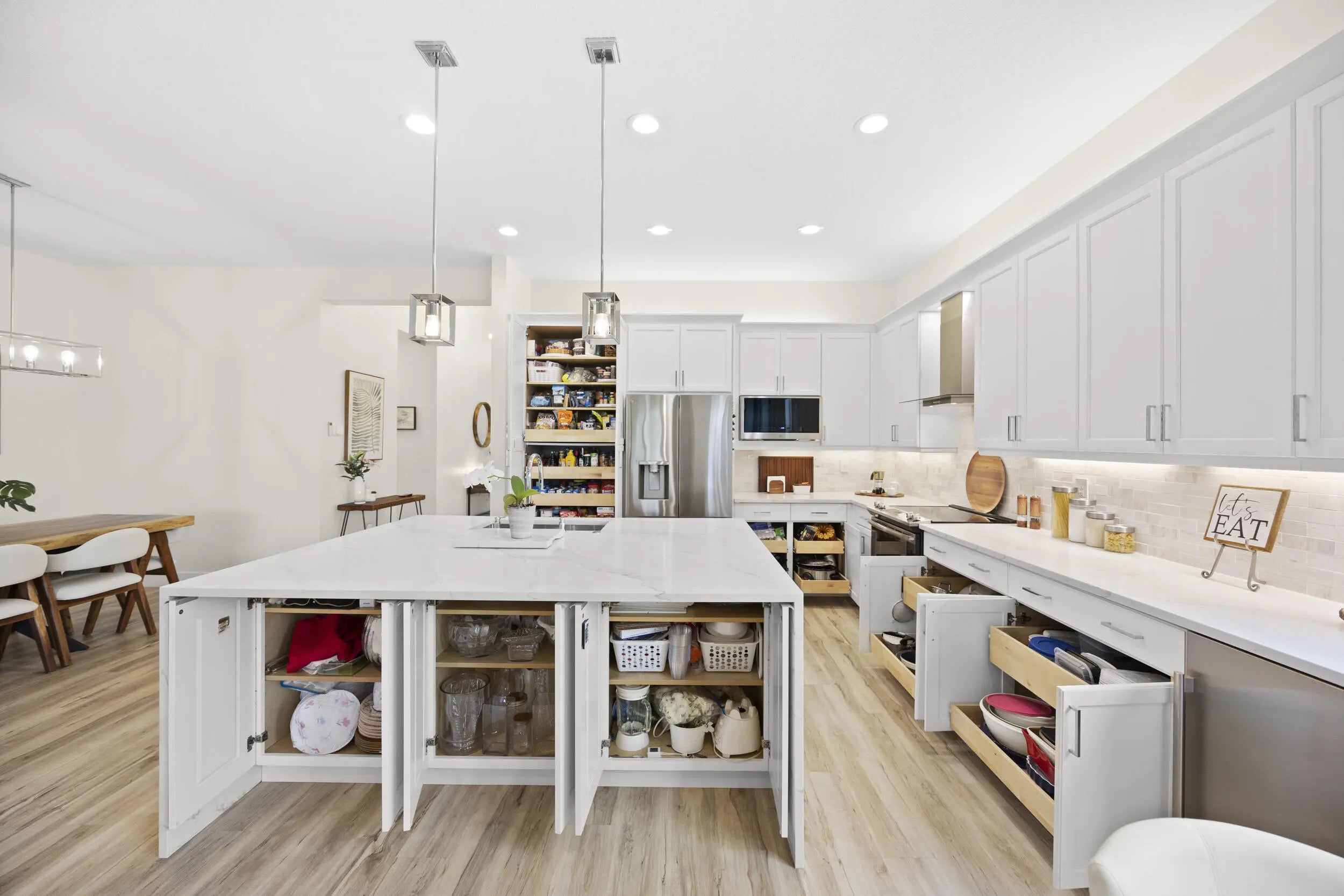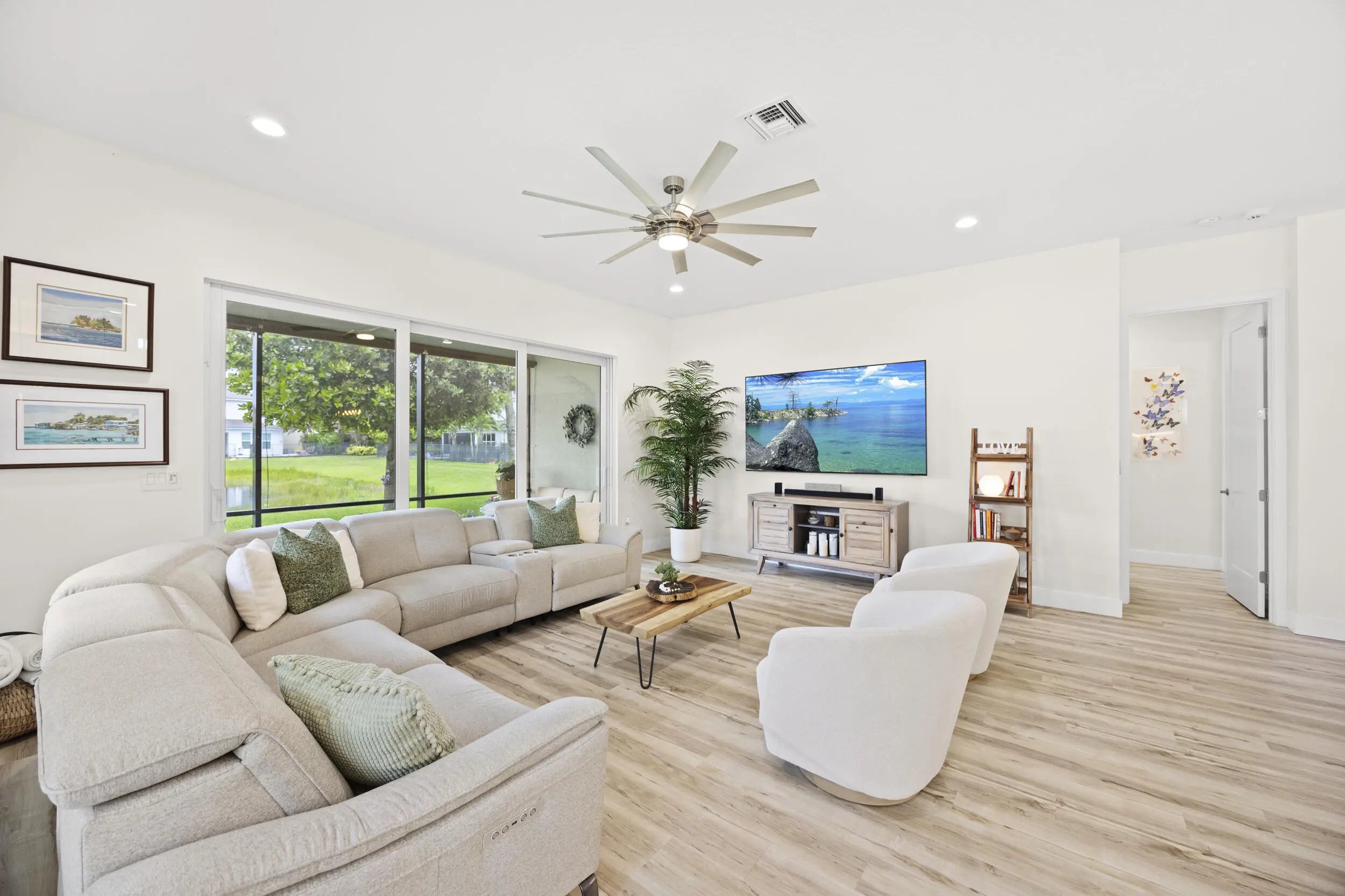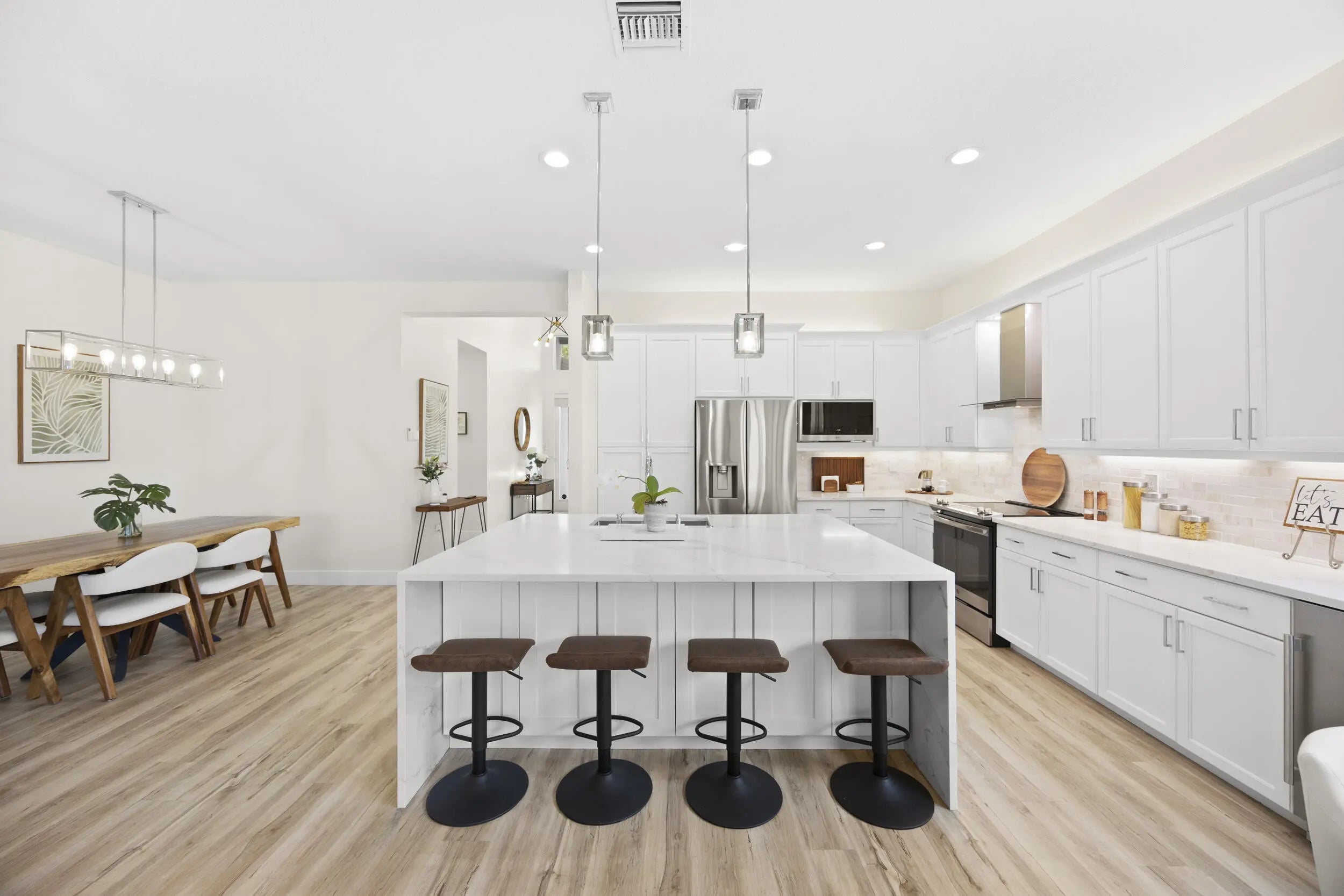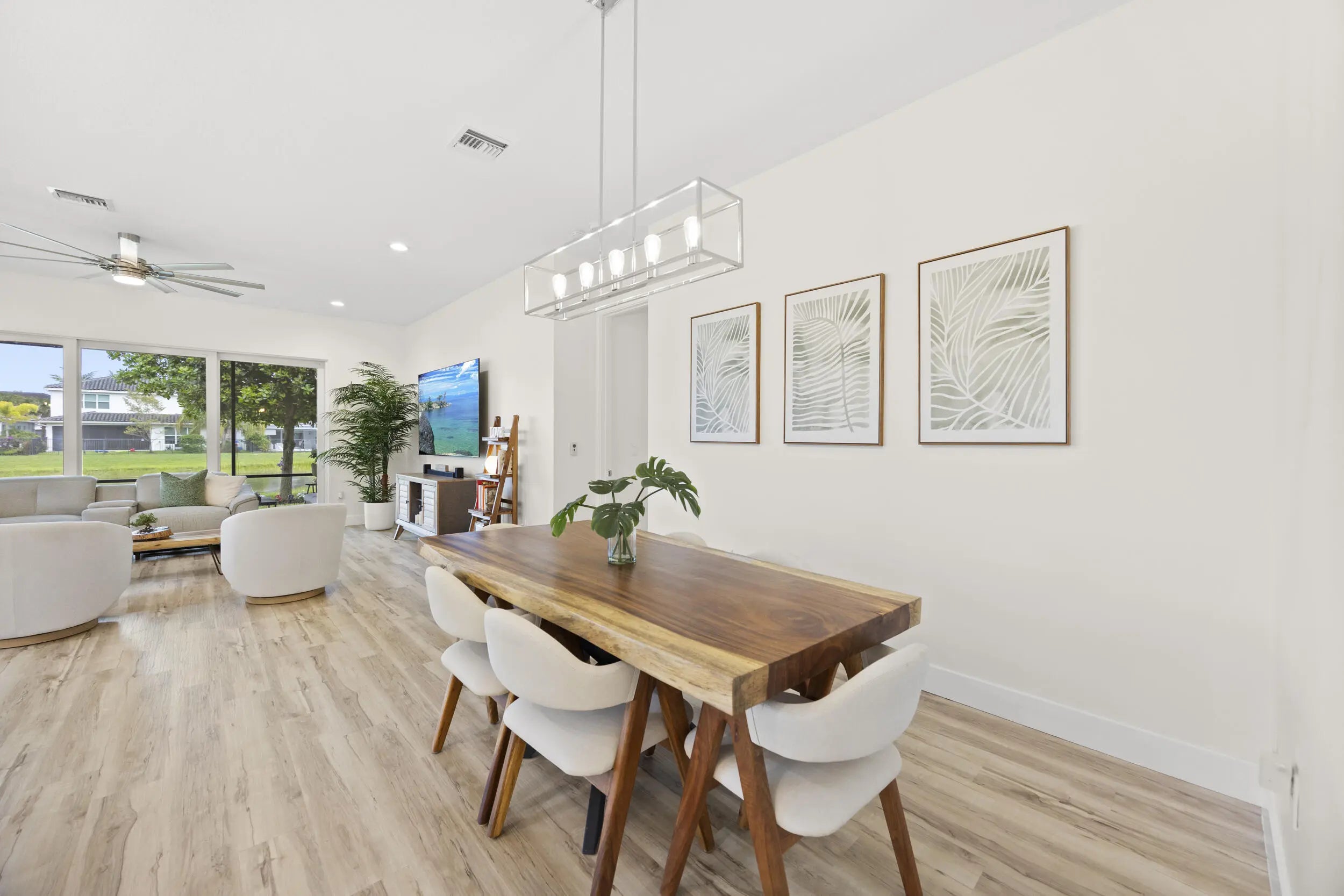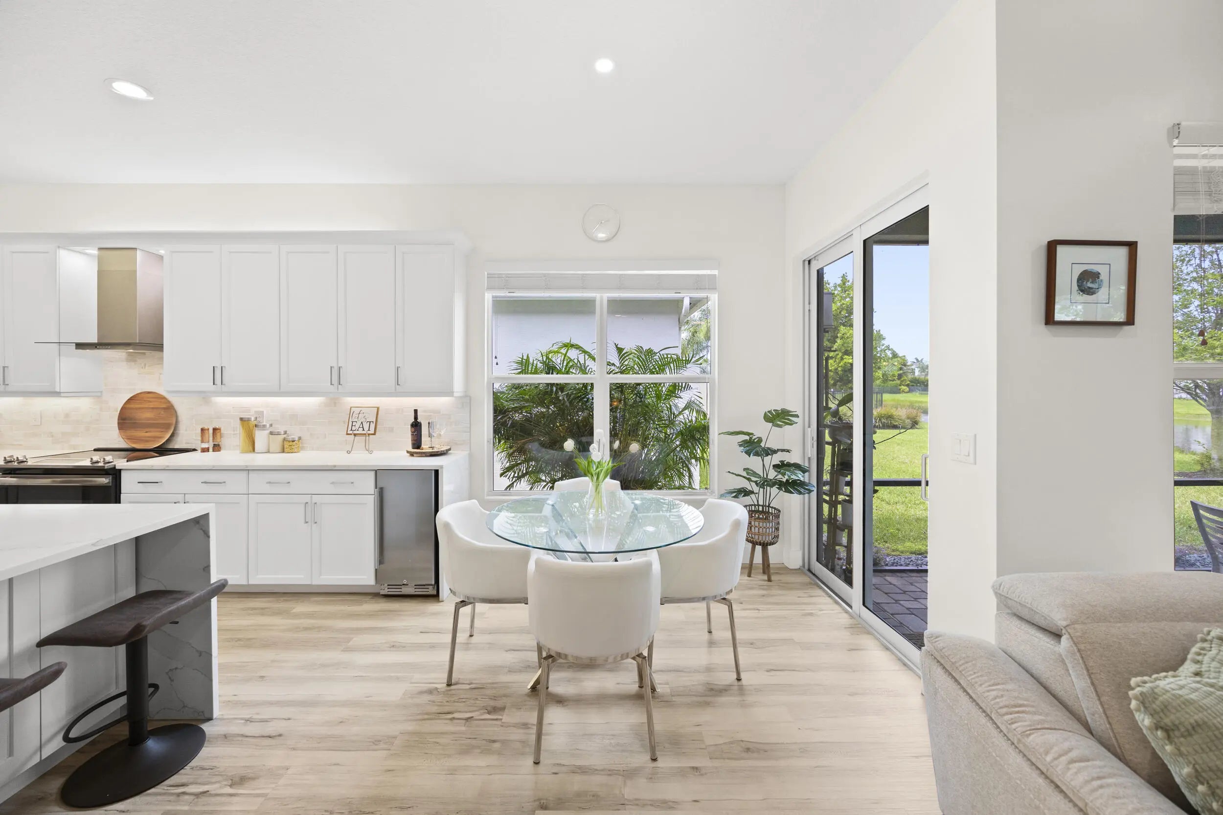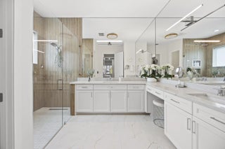 Welcome to this stunning, fully renovated one-story lakefront home in the highly desirable Dakota community of West Delray Beach Florida. This 3 bedroom, 2.5 bath move in ready residence sits on a premium lot with tranquil water views and offers a clean, modern design with high-end and modern finishes throughout. The open floor plan concept features a stunning expanded kitchen with white shaker cabinets, quartz countertops with waterfalls, custom backsplash, upgraded stainless steel appliances, wine/beverage center, vented hood and a gorgeous Calacatta Gold quartz oversized island with extra storage. Additional custom pull outs have been added to the pantry and all bottom kitchen cabinets for ease of use. MORE... The open living areas are bright and inviting, with LED lighting throughout, newer fixtures, and fresh interior paint (2025). Sliding doors lead to a screened patio with manual shades, ideal for relaxing while enjoying the lake view. Enjoy a formal dining room, dinette, and extra sitting by the large kitchen island. The ample & recently landscaped east facing backyard is perfect for your own custom pool (home has been pre-wired for a pool addition). The primary suite offers a water view, 2 large custom closets and a modern & bright renovated spa inspired bathroom with Calacatta quartz tops, roll in shower, floor to ceiling wall tile and new lighting and tile flooring. Secondary bedrooms also feature custom closets, and all bathrooms include new quartz countertops, upgraded fixtures and bidets. Additional highlights include a custom laundry room with extra cabinetry, quartz top and sink, plus a fully finished 2 car garage with epoxy floors, built-ins, and overhead storage. Major exterior upgrades provide peace of mind, including a 2018 roof, full hurricane impact windows, impact garage door, AC and water heater (2018), gutters, and smart home features like Ring cameras and fiber optic internet . Located in a 24-hour guard-gated community, Dakota offers resort-style amenities including a clubhouse, fitness center, pools, new covered playground, BBQ area, indoor and outdoor basketball, tennis, pickleball, and more. Dakota is an all age community with many planned activities throughout the year and a low monthly HOA fee. Located in Palm Beach County school district with highly rated public and private schools, this home combines luxury, comfort, and convenience in one of Delray Beach's most sought-after communities. 6 miles to east Atlantic Avenue for fine dining experiences and nearby beaches. ***Investor friendly. Lease on day 1 with a 7 month minimum.***