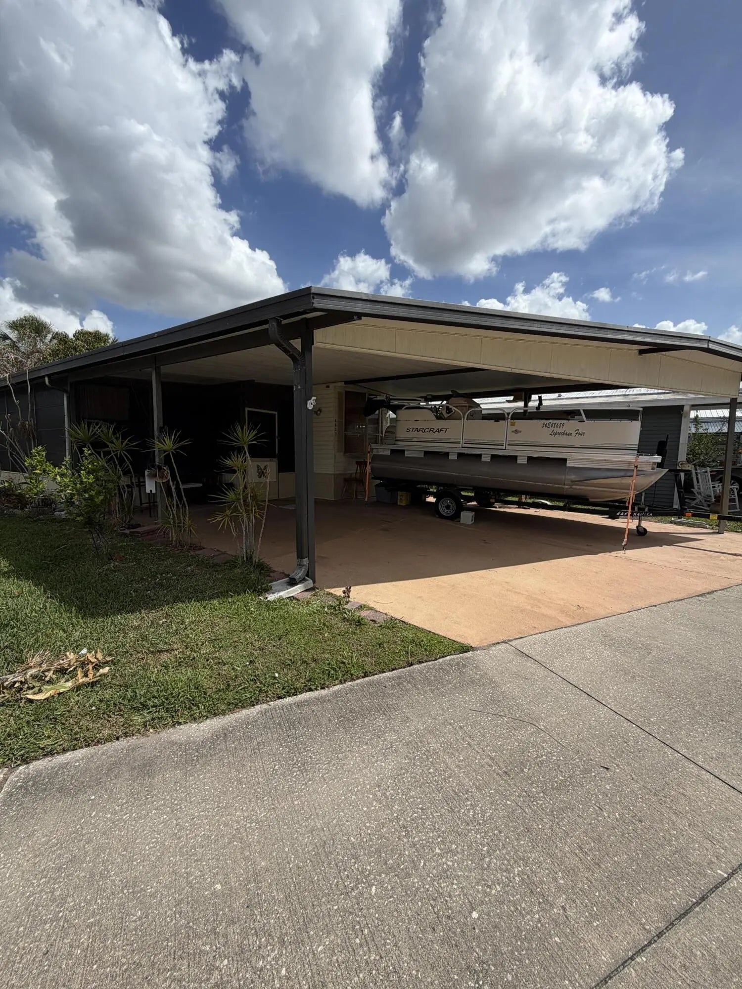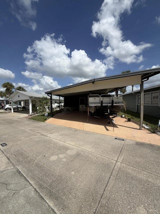 Ancient Oaks- 55+ Community. I Bed 1 bath RV w/Florida room. Laminate floors, Some TLC needed for this to be a super cute affordable living. Clubhouse w/heated pool, Pickleball courts, Billiards the game everyone enjoys! Private mailboxes, Fishermen bring the boat for this double carport- Pontoon boat for sale also.