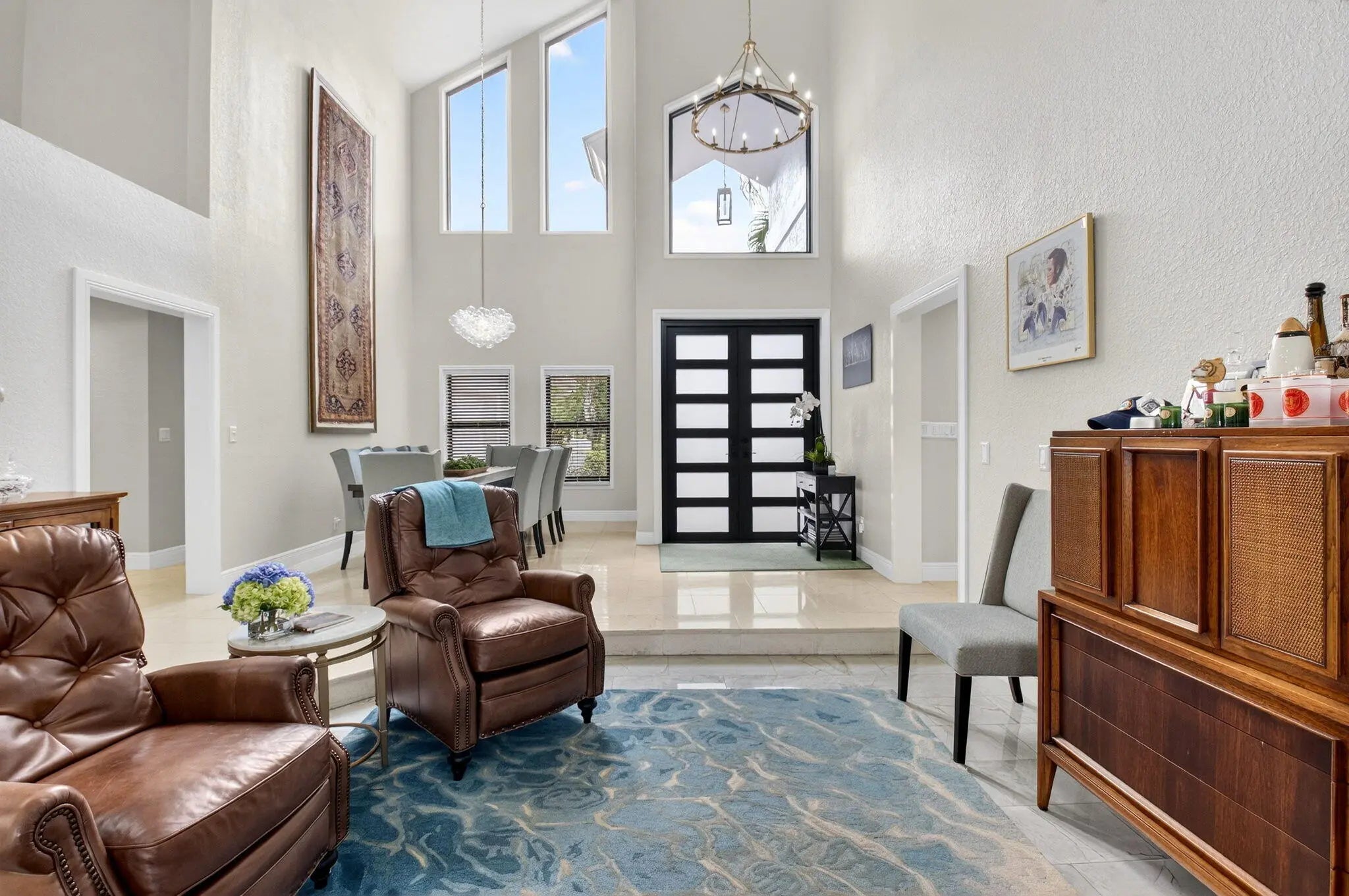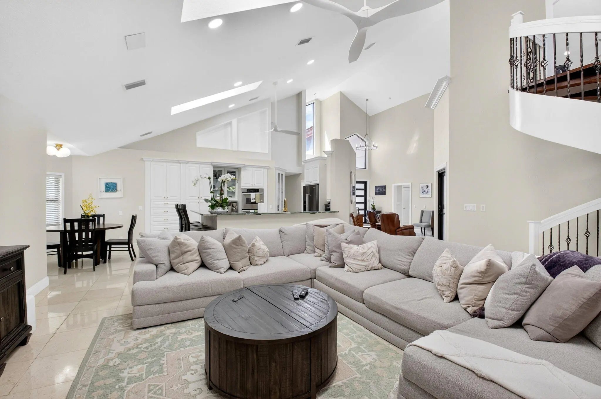 Luxury Waterfront Estate is located in the prestigious community of Rio Poco. This exceptional lakefront estate is situated on one-acre lot within the exclusive, man- gated community with 24-hour security and privacy. This gorgeous property is surrounded by manicured landscaping and serene water views, the property delivers refined living in a highly- sought after setting. The residence features 5 bedrooms and five full bathrooms including a private detached 1 bed 1 bath guest house adjacent to the pool. A dramatic interior showcases volume ceilings, panoramic windows, skylights, spiral staircase and a combination of marble and real wood flooring throughout. The expansive loft overlooks the main living area and may be enclosed to create a media room. The remodeled kitchen is equipped with premium appliances and upgraded finishes. The primary suite offers a tranquil spa inspired retreat. Additional upgrades include impact windows and doors, dual HVAC systems, a whole-home generator and a security system. Outdoor living is enhanced by a remodeled pool and spa with a travertine deck, resealed pavers, fruit trees, and a circular driveway leading to a three-car garage. Fresh interior and exterior paint complete this move-in-ready home. Conveniently located near Atlantic Ave, shopping and entertainment. This is a rare opportunity to own a luxury waterfront estate in one of Delray Beach's most exclusive communities.