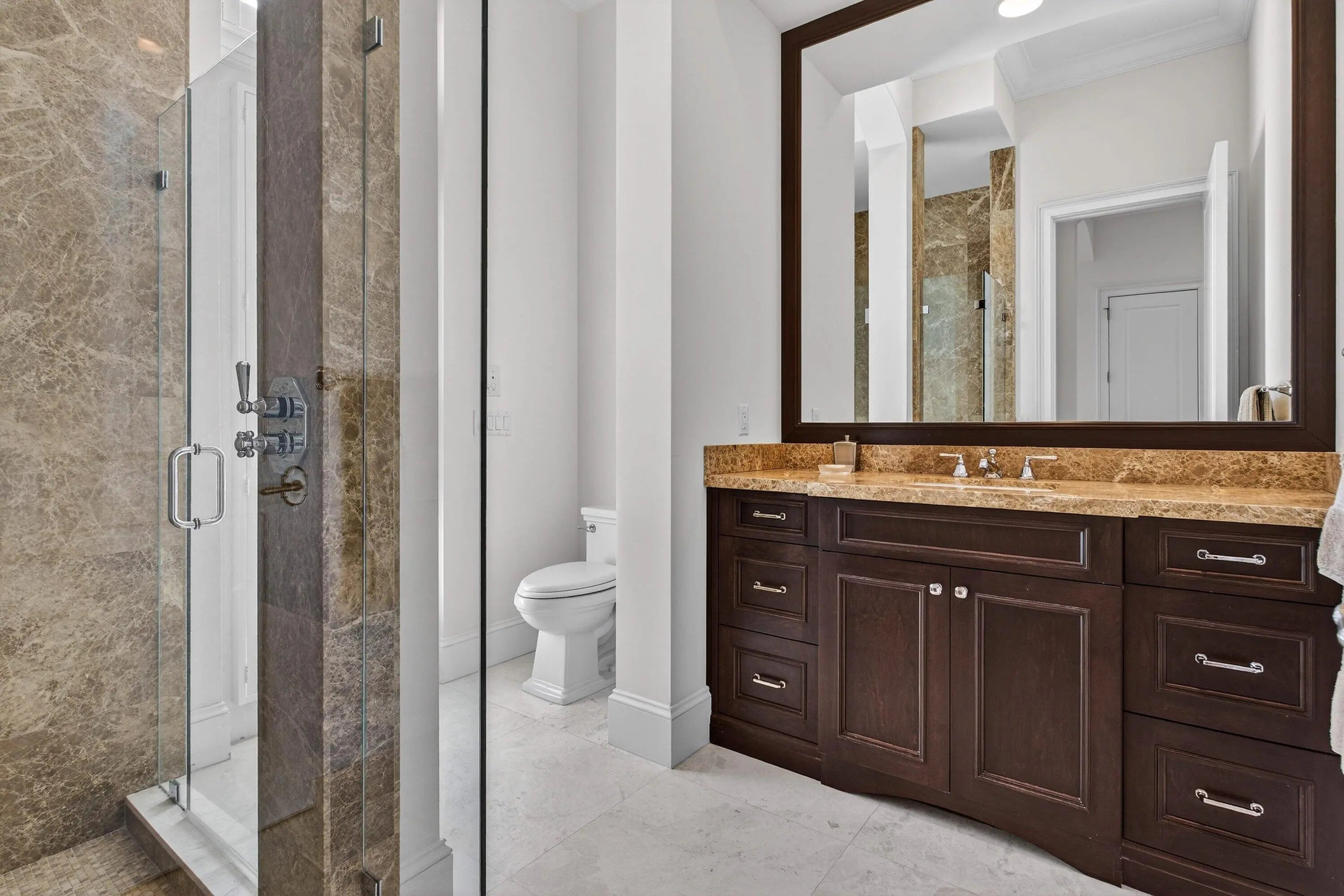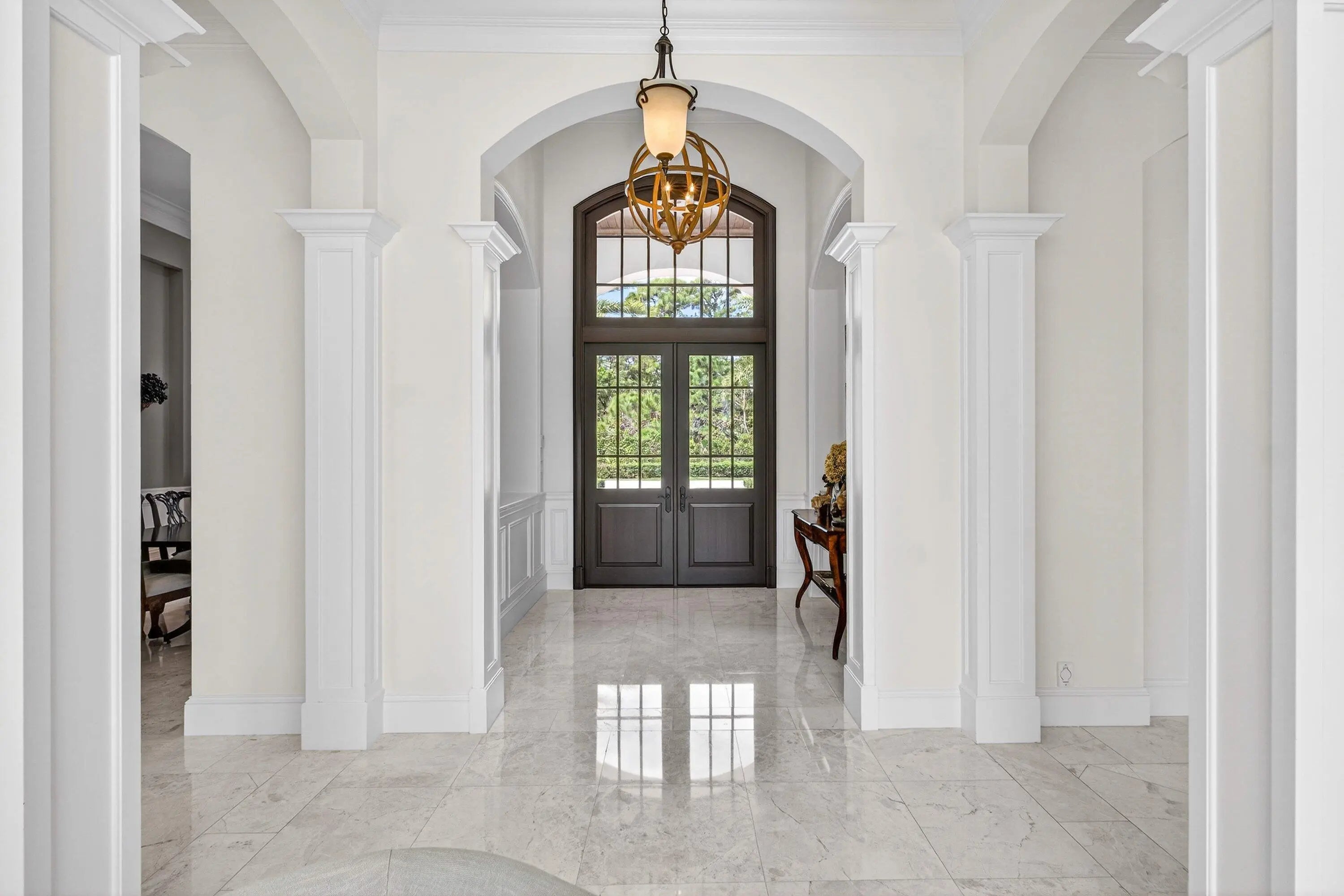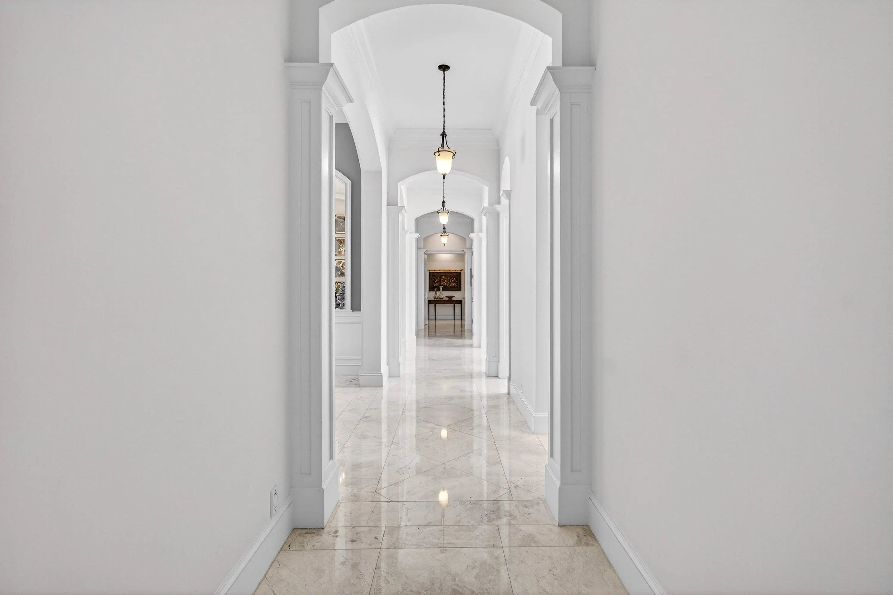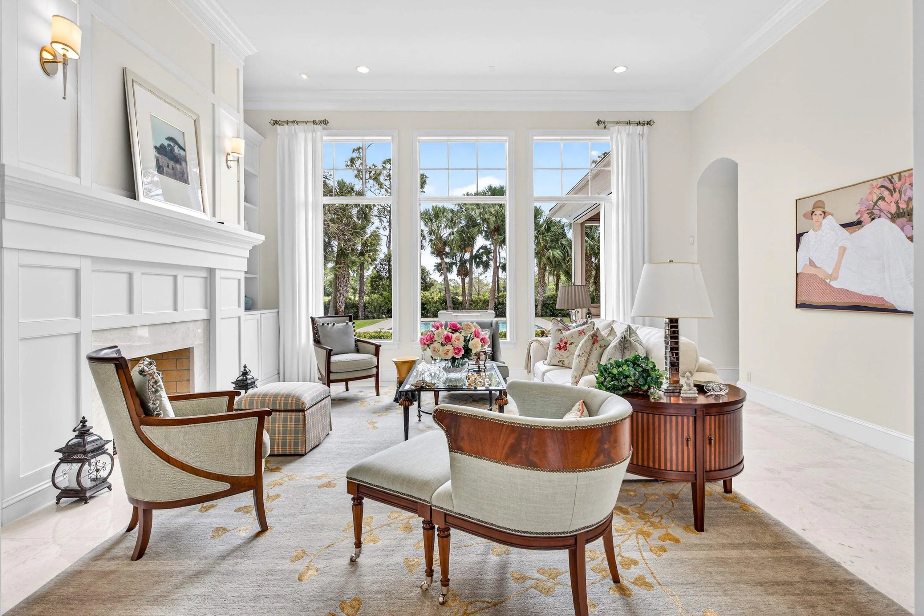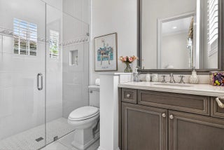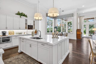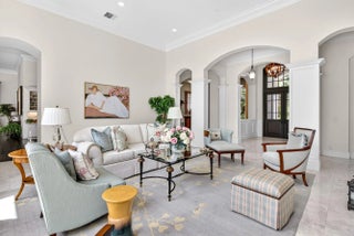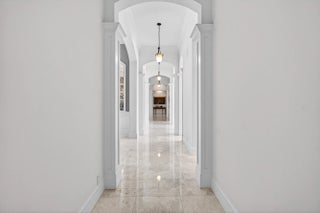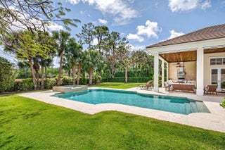This recently built and meticulously maintained custom home sits on nearly two thirds of an acre on a quiet cul-de-sac in prestigious Old Marsh Golf Club. Water, golf course and marsh views abound in this light and airy home filled with window walls of glass. As you walk through each room, the attention to detail becomes obvious - wainscoting, crown molding, marble and wood floors, custom ceilings, window treatments, built ins & light fixtures. The gourmet island kitchen features white contemporary cabinetry, quartz countertops and Wolf and other top of the line appliances. The owners suite has two complete baths and two walk in closets with built in drawers and shelving. Each guest room has its own ensuite bath. Outside, the covered lanai houses a full summer kitchen and tranquil views. And then, of course there is Old Marsh itself, an exclusive, gated enclave of custom estate homes on half-acre or larger homesites, surrounded by protected nature preserves. The acclaimed Pete Dye-designed championship golf course offers no tee times, a nationally recognized caddie program, and ranks among the best in the country. Just minutes from beaches, the airport, excellent public and private schools and fine dining, shopping, and cultural attractions, this impeccably decorated and maintained home presents a rare move in ready opportunity in one of the Palm Beach's most sought-after private communities.