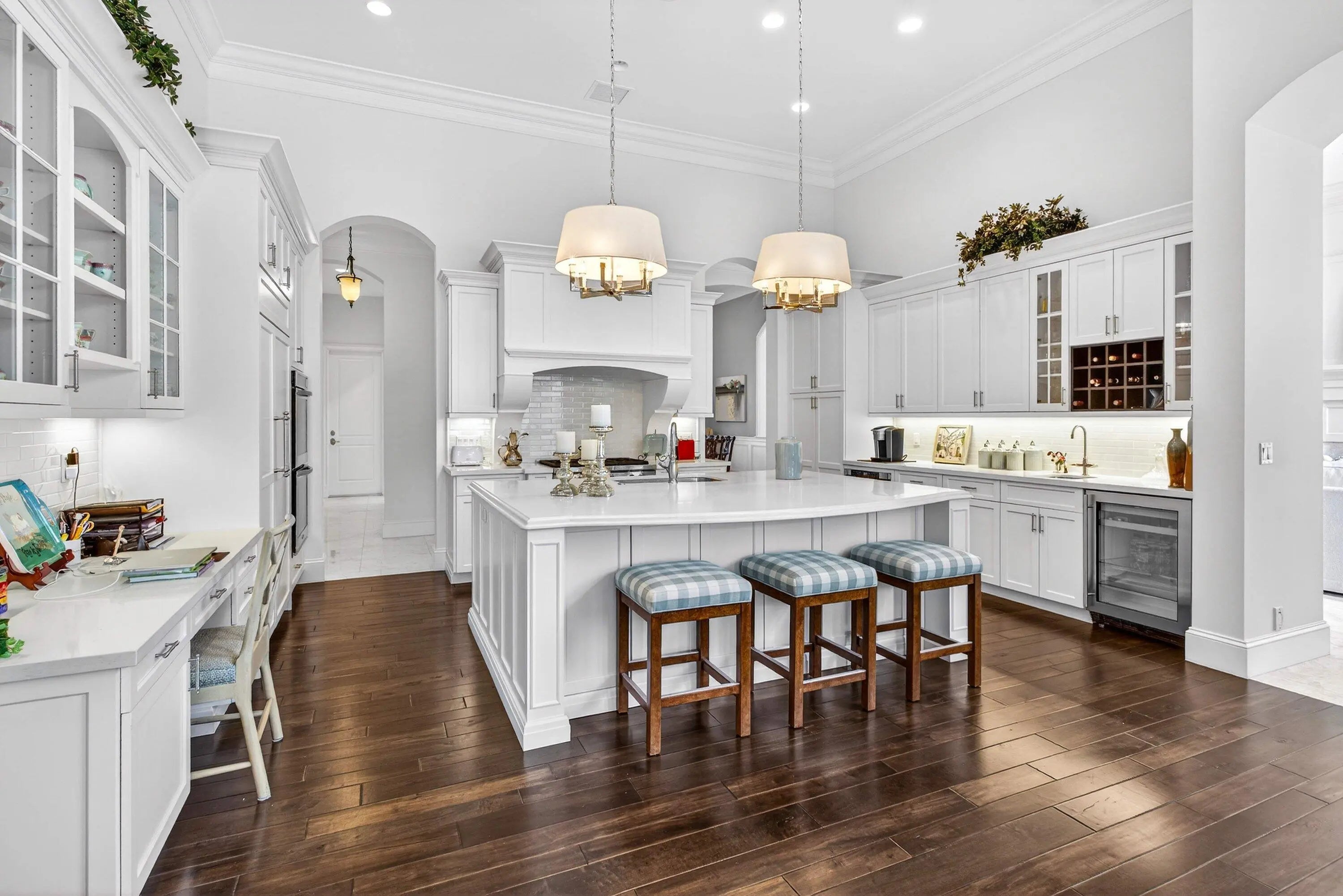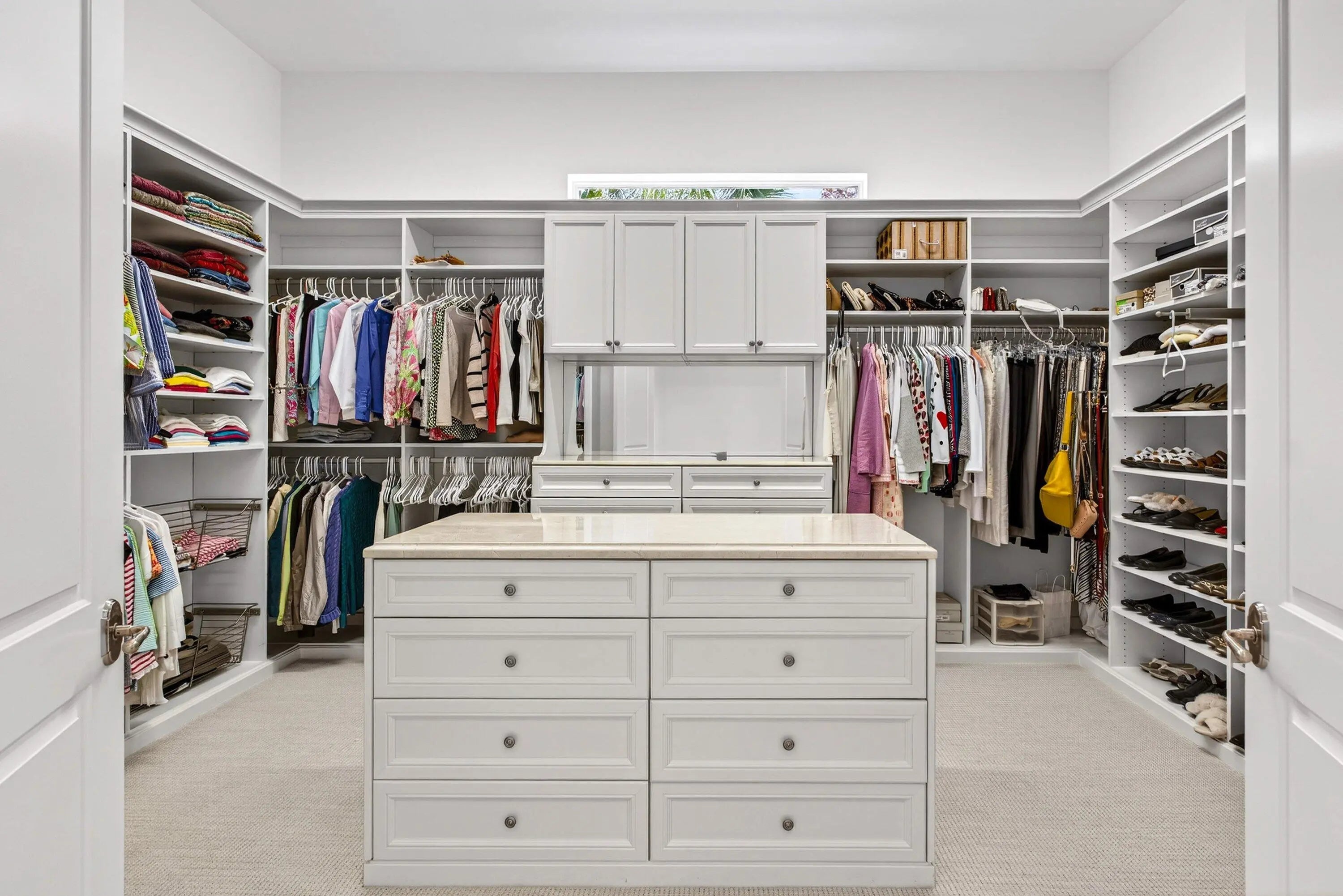 Built-in Features, Entrance Foyer, High Ceilings, Kitchen Island, Walk-In Closet(s), Bedroom Layout - Split, Closet Cabinetry, Custom Mirrors