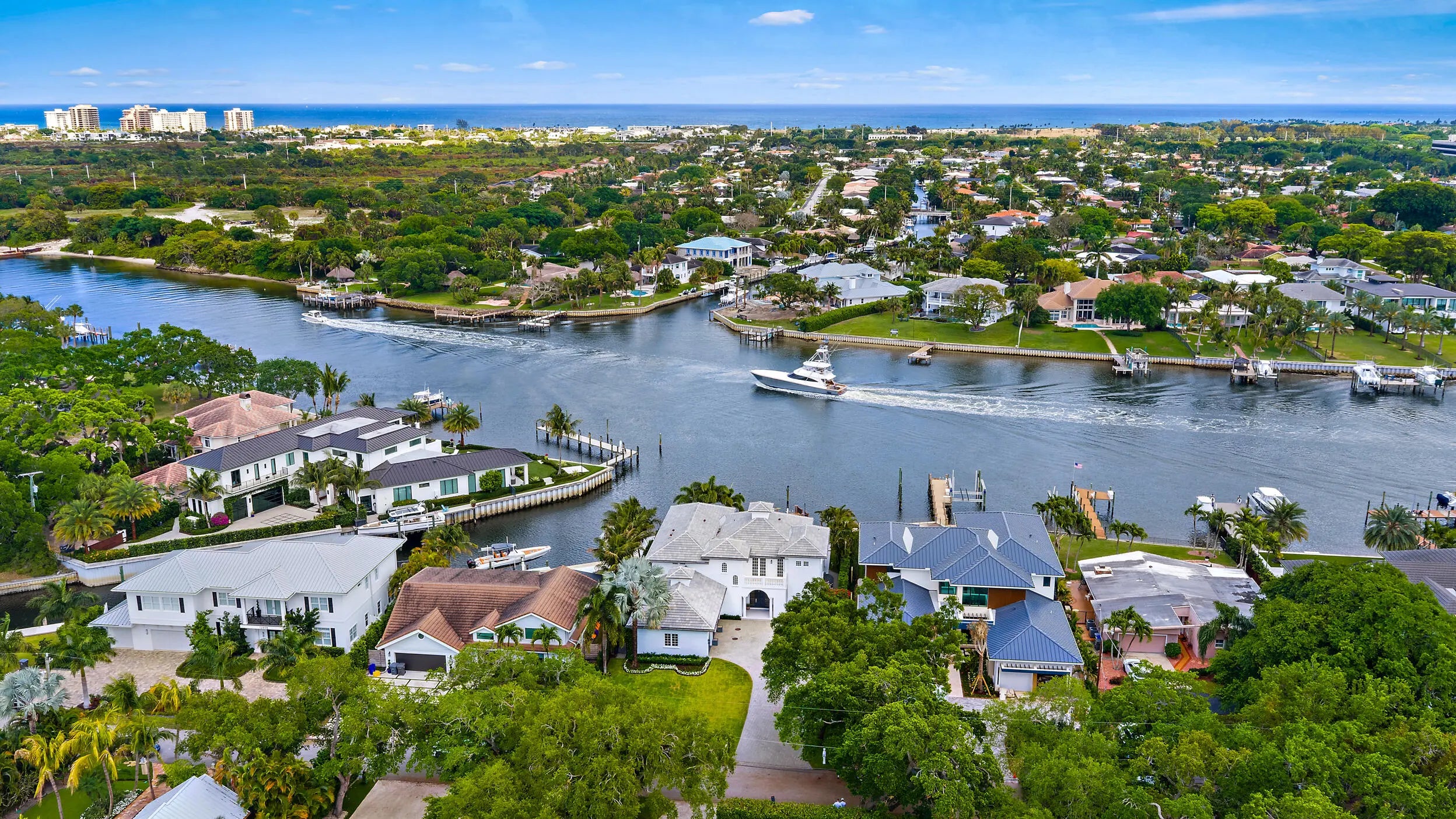 Direct Intracoastal waterfront with wide water views and no fixed bridges, offering rare, hard-to-find dockage with the ability to accommodate multiple vessels, including a sportfish yacht and center console. Located in a no wake zone with direct ocean access, just minutes to the Palm Beach Inlet, this is a true boater's dream. Recently refreshed with a new 2024 roof with copper drip edge, new landscaping and hardscaping, fresh interior and exterior paint, and updated lighting. The home features volume ceilings, five private ensuite bedrooms, a private office / den with water views, and an oversized 3-car garage with lifts ideal for car collectors. Close to world-class golf courses, shopping, dining, and the best of the Palm Beach lifestyle.