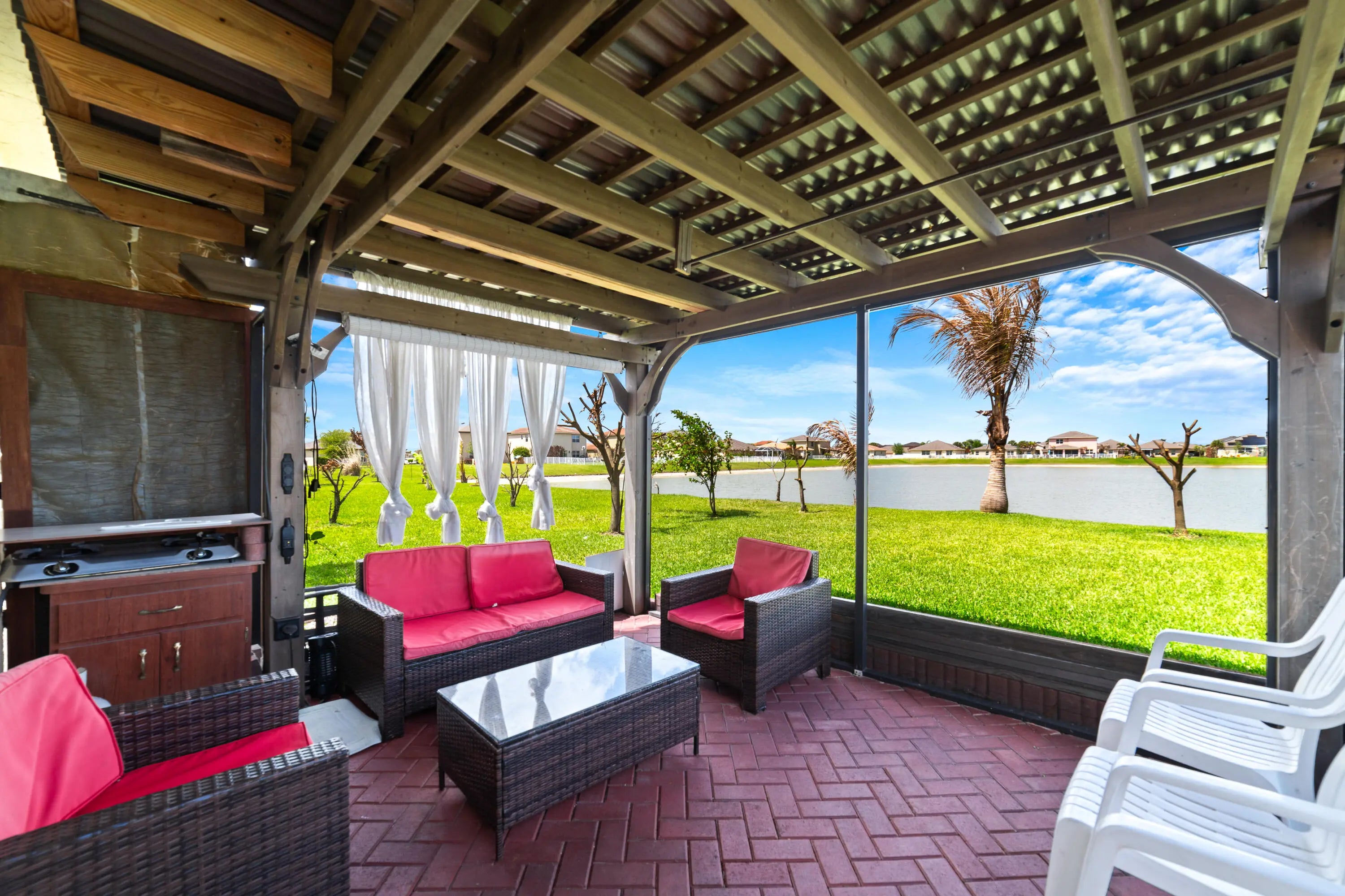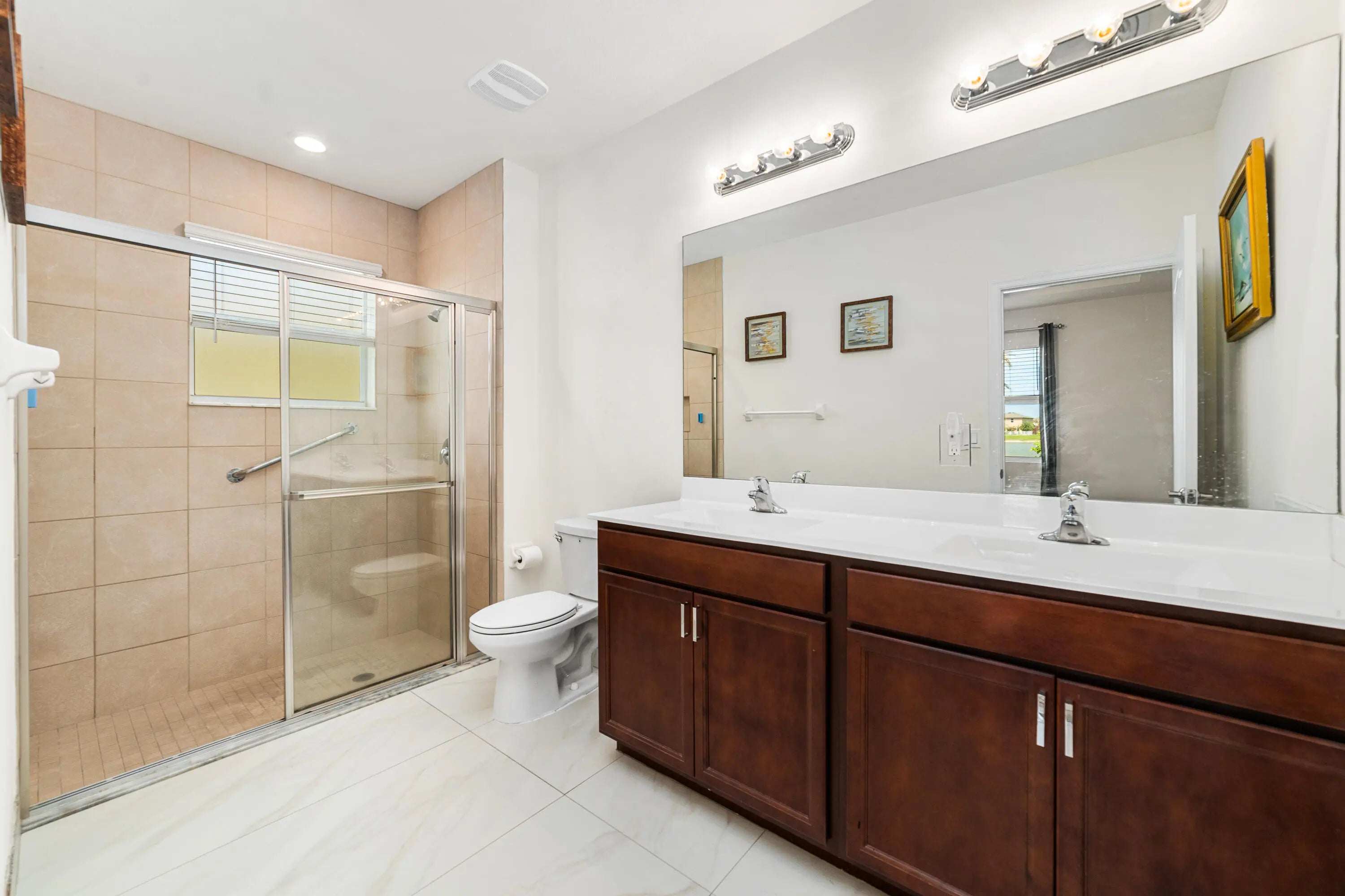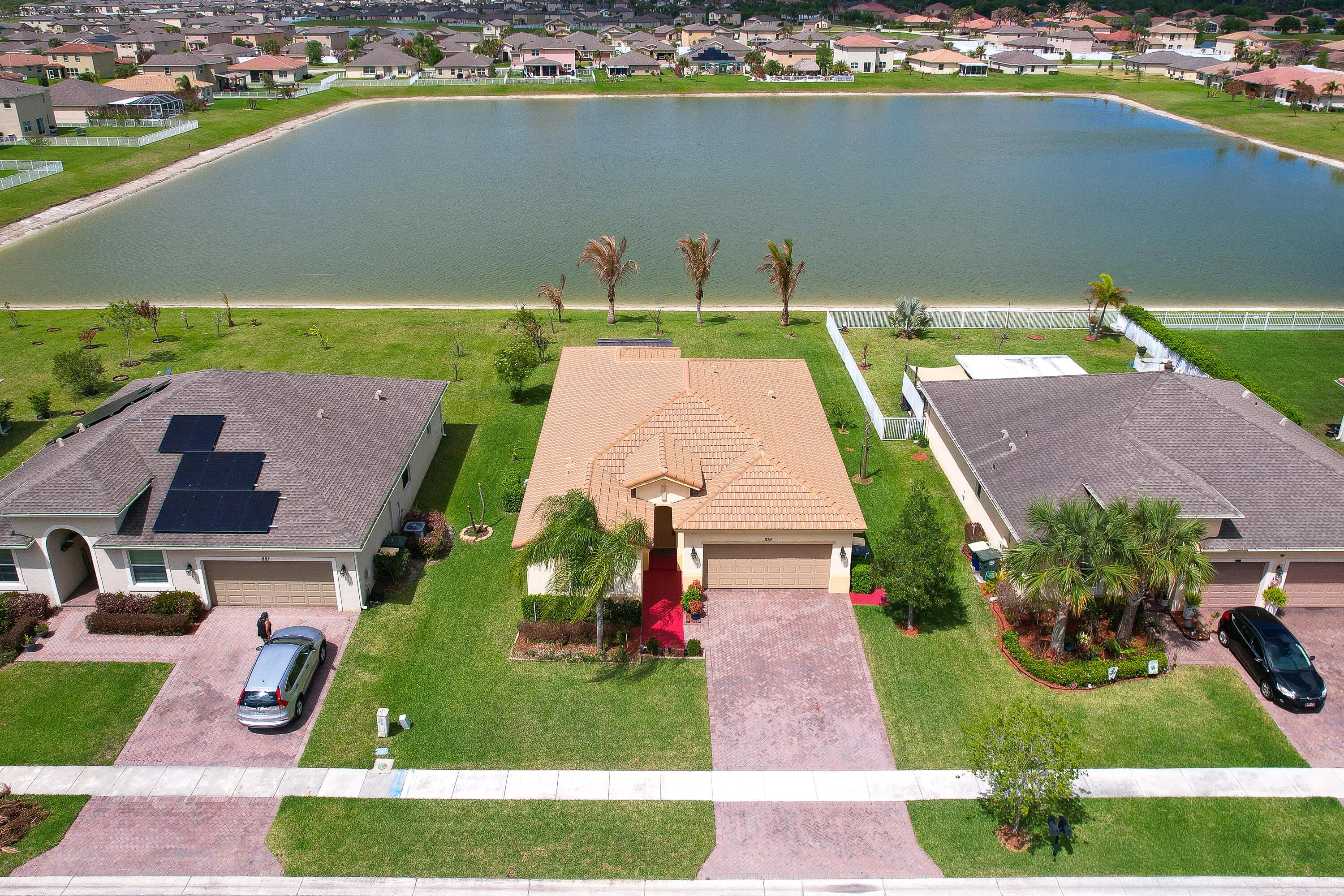 Exceptional waterfront 4-bedroom, 3-bath residence in The Meadows at Bent Creek, a well-maintained community in Fort Pierce. This home offers a bright, open-concept layout with soaring ceilings, expansive windows, and large tile throughout the main living areas. The kitchen is thoughtfully designed with granite countertops, stainless steel appliances, a spacious pantry, and a stylish dining chandelier. Bedrooms feature whitewashed luxury vinyl plank flooring, while the primary suite includes dual sinks and a walk-in shower. Outdoor living is equally inviting, with a screened patio and open paver patio overlooking serene water views and an oversized yard, ideal for relaxing or entertaining. Bent Creek residents enjoy a resort-style lifestyle with a clubhouse, fitness center, pool, spa, playground, basketball and tennis courts. The community is both pet- and rental-friendly, with notably low HOA fees. Ideally located, Fort Pierce offers easy access to beautiful Atlantic beaches, vibrant downtown dining, marinas, and cultural attractions, all while maintaining a relaxed coastal charm.