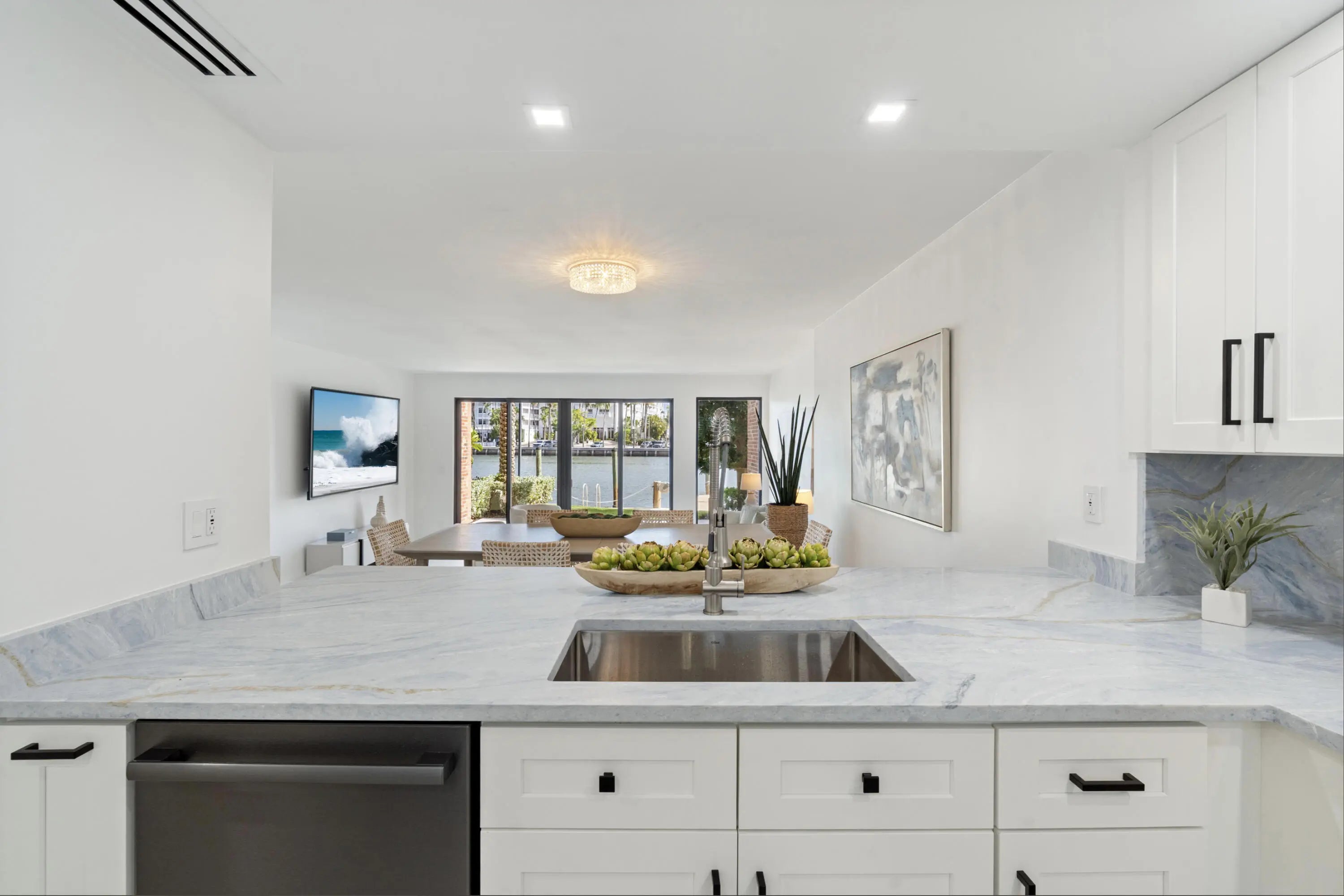 She wants the beach! He wants a boat! Why compromise? Do both at this stunning, newly-renovated townhome a block from the beach that comes with its own dock slip! Be the first to enjoy this lakeside townhome since its total renovation where EVERYTHING is sparkling new! This beauty was taken down to the studs and newly-reimagined for the discerning buyer with exquisite taste in design and luxury living. The kitchen features gorgeous quartz countertops and backsplash, complemented by shaker-style cabinetry and a Bosch stainless appliance package . Gorgeous light wood-like porcelain flooring gives the entire townhome that casual, coastal feel. New A/C, duct work, electrical, painting, the list is endless. Waterfront pool, external storage, and dock for up to 32' boat (2 fixed bridges.)
