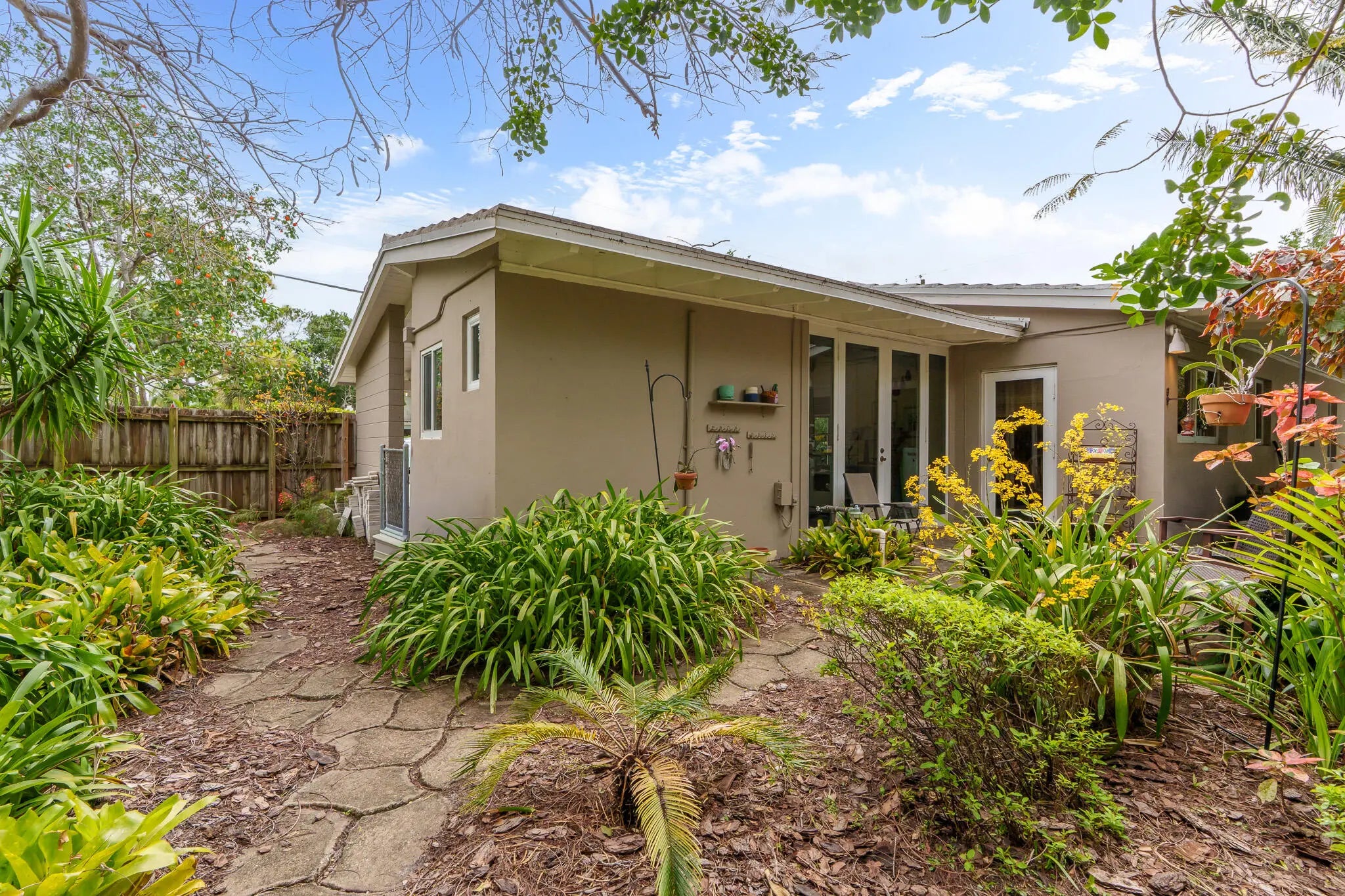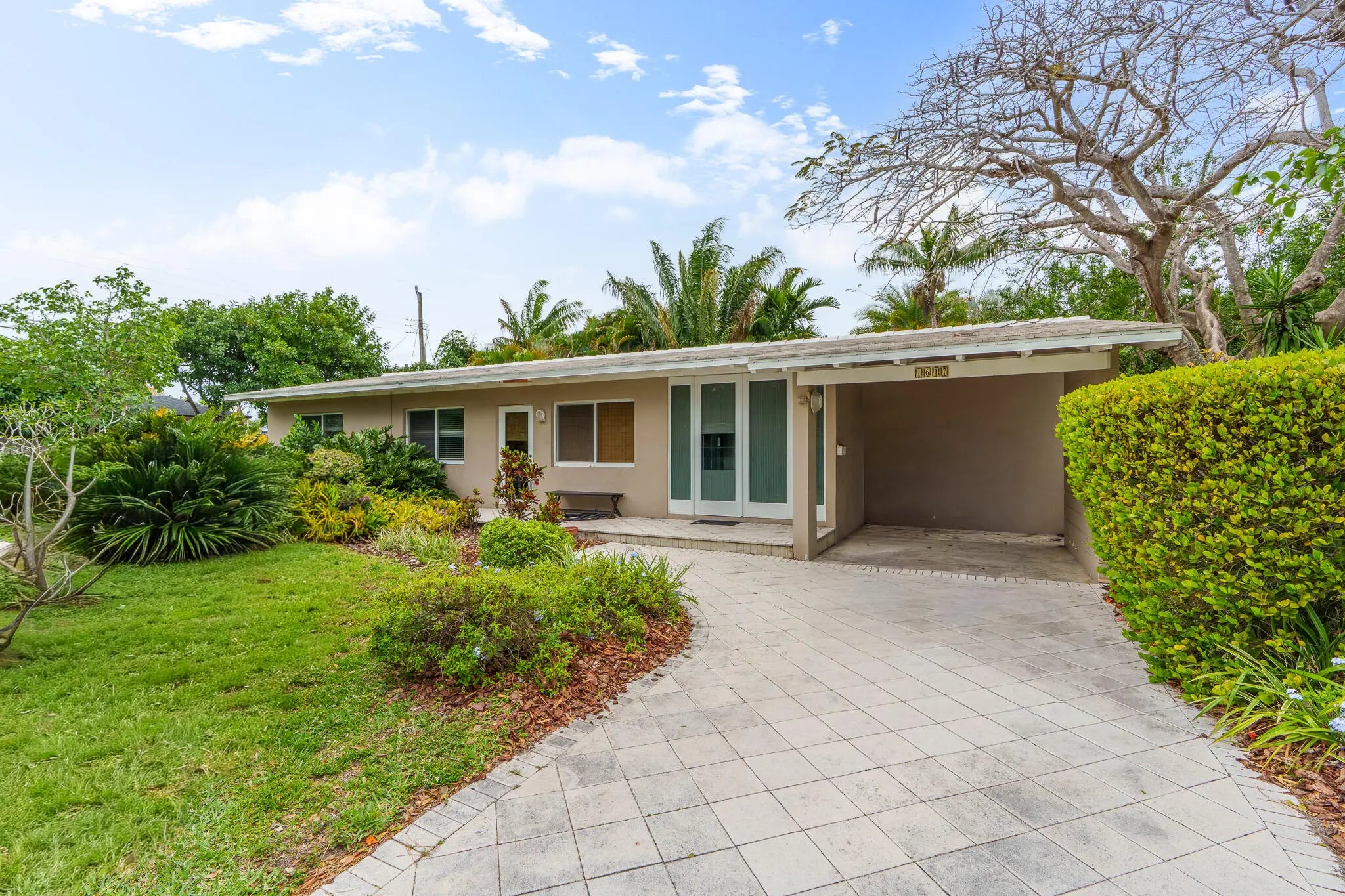 Mid-century charm meets modern upgrades in this beautifully maintained Corner lot home in Fort Lauderdale. Vaulted ceilings and abundant natural light highlight a functional layout with 3 bedrooms and 1 full bathroom in the main wing. Full impact windows and doors provide peace of mind. A sunroom adds flexible living space with access to a second full bathroom—ideal for guests, office, or future pool cabana. Updated kitchen with granite countertops and hickory wood cabinetry. Major updates include roof (2021), A/C (2025), electrical panel, and new driveway/front patio. Spacious backyard with garden and room for a pool. Just 2 blocks from Fort Lauderdale High and minutes to Wilton Manors, beaches, and I-95.