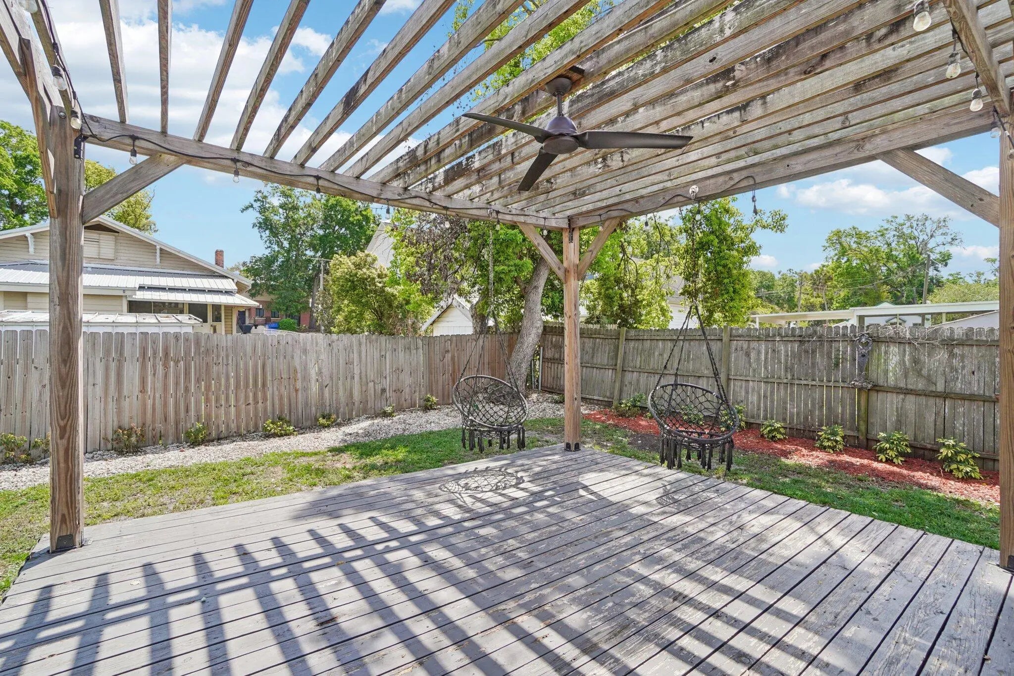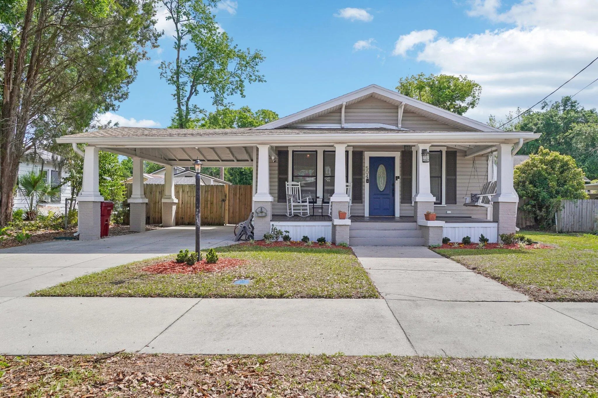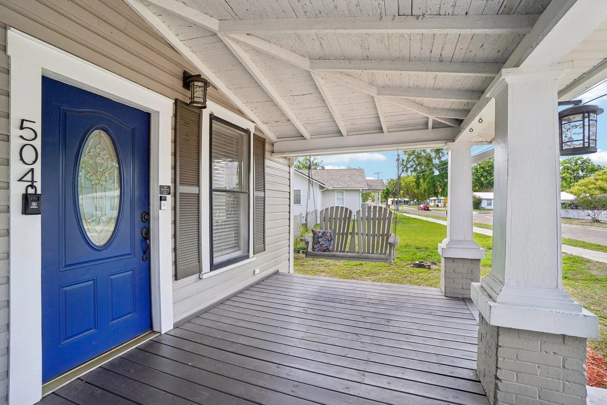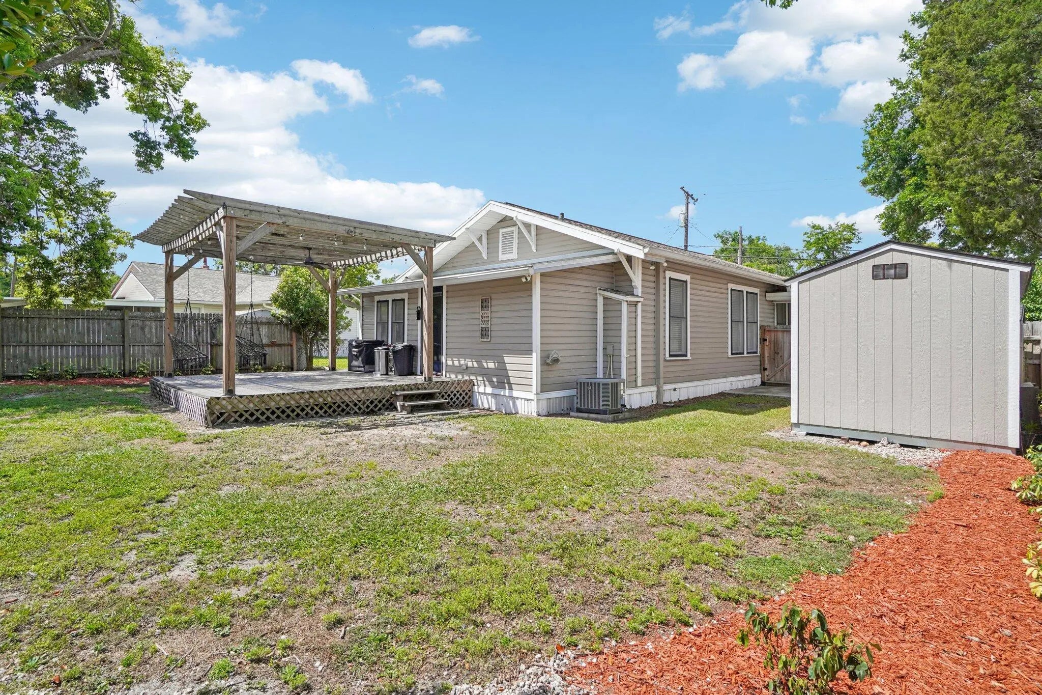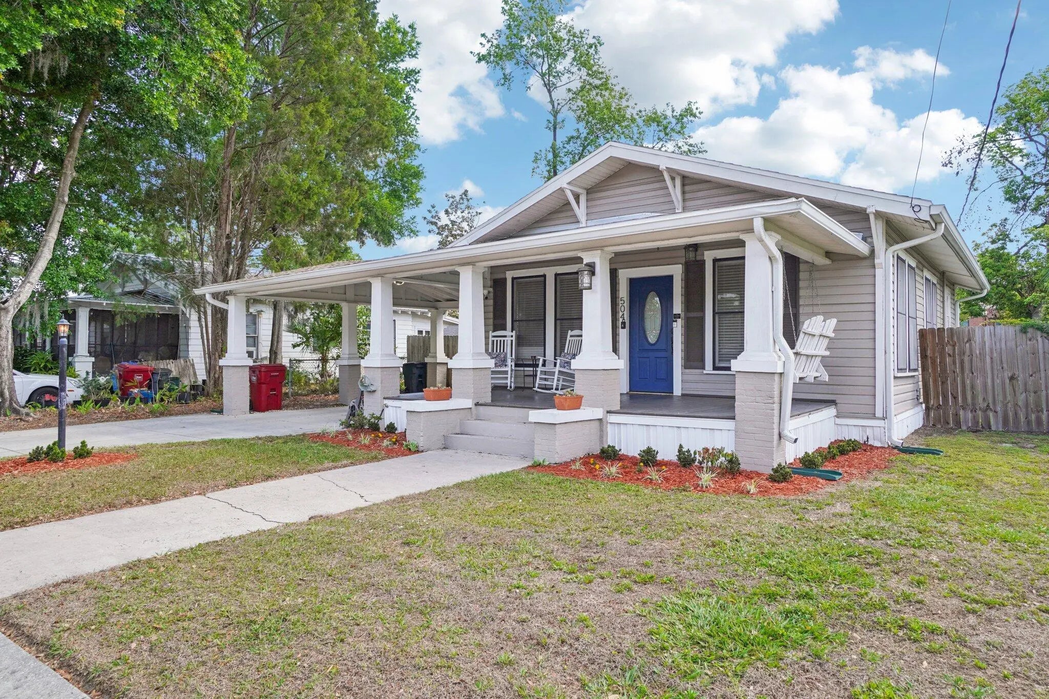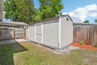 Timeless character meets modern updates in this charming and cozy 3 bedroom, 1 bathroom home. It is nestled on a great, historic, brick street and only blocks away from downtown and the library. Light-filled living area features a classic fireplace (currently capped). Additional features include built-ins and high ceilings. The kitchen and bathrooms have been tastefully refreshed, featuring modern updates. A deck and spacious, private yard are designed for gardening, relaxation and entertainment. There are two functional storage sheds. The roof was installed in 2024. The home is equipped with security cameras wired through the exterior. No HOA or CDD! All measurements are approximate. Take a look at the 3D walkthrough.