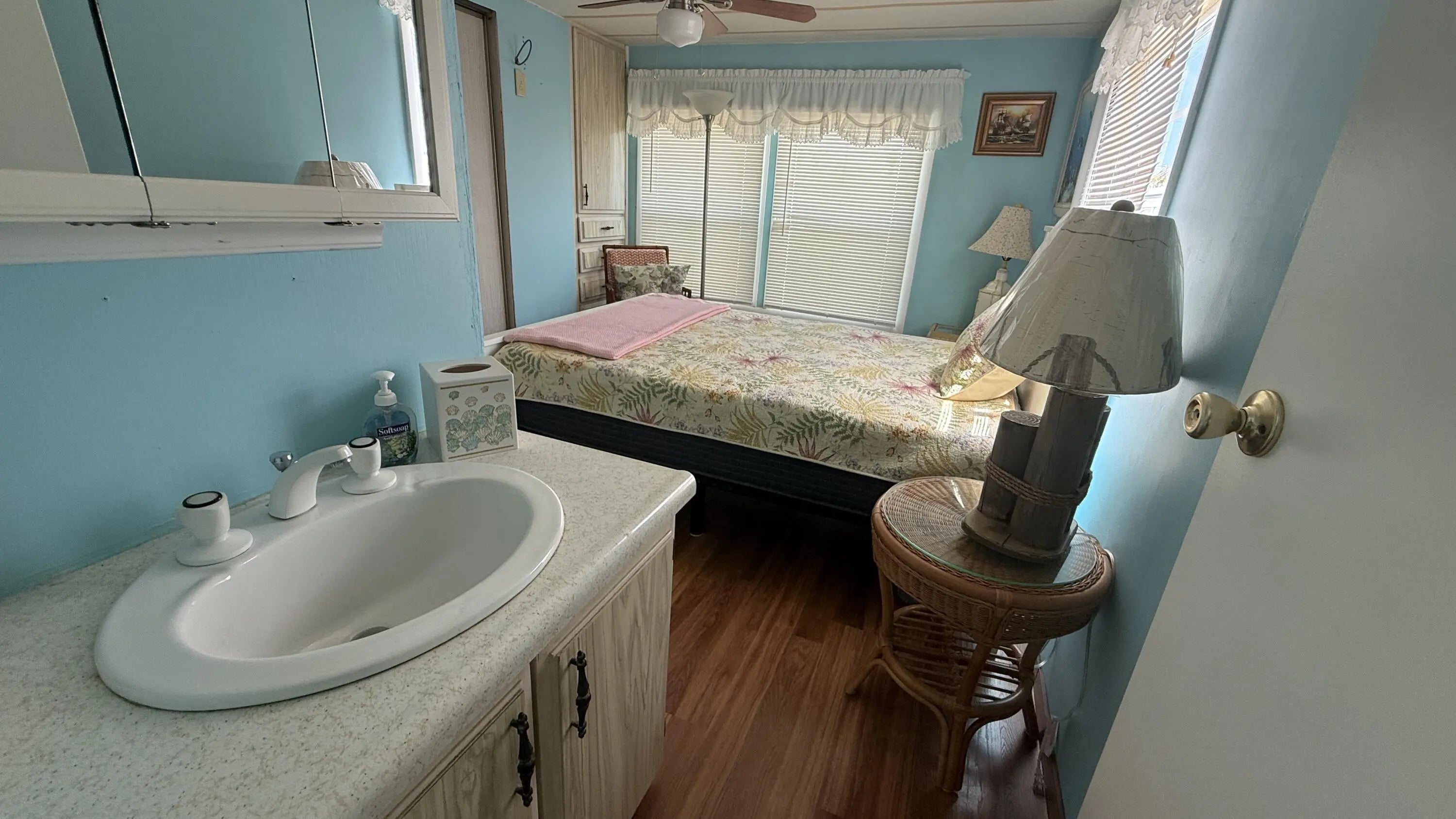 BRING YOUR BOAT/RV. Darling Key West inspired 2 Bedrm/2 Bath Expanded Singlewide in Ridgeway, all ages community in Hobe Sound. Fully furnished, turnkey. Updated Kitchen w center island & great storage, open to the sunny dining area & Living Room. This home is so LIGHT & BRIGHT! Split Bedroom Plan. Primary Bedrm & Bath in the rear of the home. The 2nd Bedrm is in the front of the home w full bath. The Screened Lanai is the perfect place to enjoy the famous Hobe Sound ocean breezes. The Laundry/utility room is large & there is an additional storage shed. The Sellers used this home as their winter retreat for many wonderful years. They installed window a/c units when there was a need for a/c. New AMS Aluminum Roof 2020 w Lifetime Warranty, new Electrical Panel! YOU OWN THE LAND - NO HOA. There is a Clubhouse, heated community pool & activities which you can join for $365/YEAR. ALL PETS WELCOME