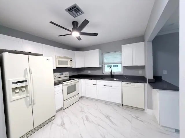 Ultra-modern remodel on this spacious end condo situated on the Savannahs Nature Preserve. The contractor remodeled this unit with these finest finishes. All wood doors, repainted interior walls in today's colors & crown molding, 6" base boards, oversized ceramic tile flooring throughout, sleek white kitchen cabinets with black pulls & self closing doors & drawers, black granite counters, farmhouse style kitchen sink, all modern lighting & ceiling fans, both baths with modern vanities & sinks, removed 1/2 wall between master vanity & private area thereby making it more open. Owner had installed impact windows allowing for great storm protection & drop down shutters are still on windows could be removed allowing more natural light into unit. Slider original. Modern interior doors & handles. Wood louvered doors where needed no more metal doors in unit. Fairly new stack washer/dryer. Older kitchen appliances that a new owner could update with stainless to finish out this beautiful ultra remodeled end condo. HURRY Call now to see and make it your own.