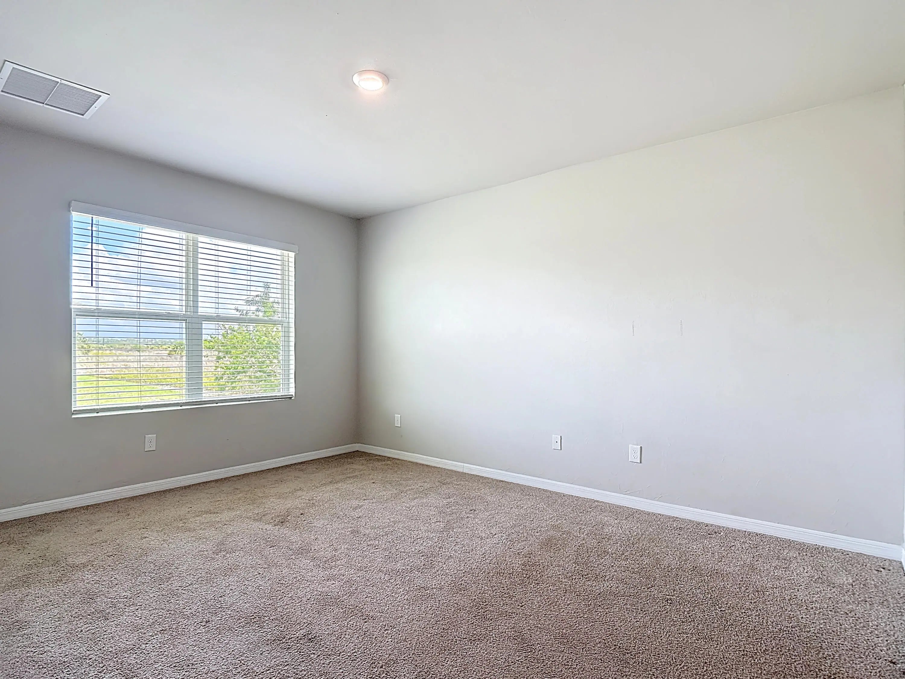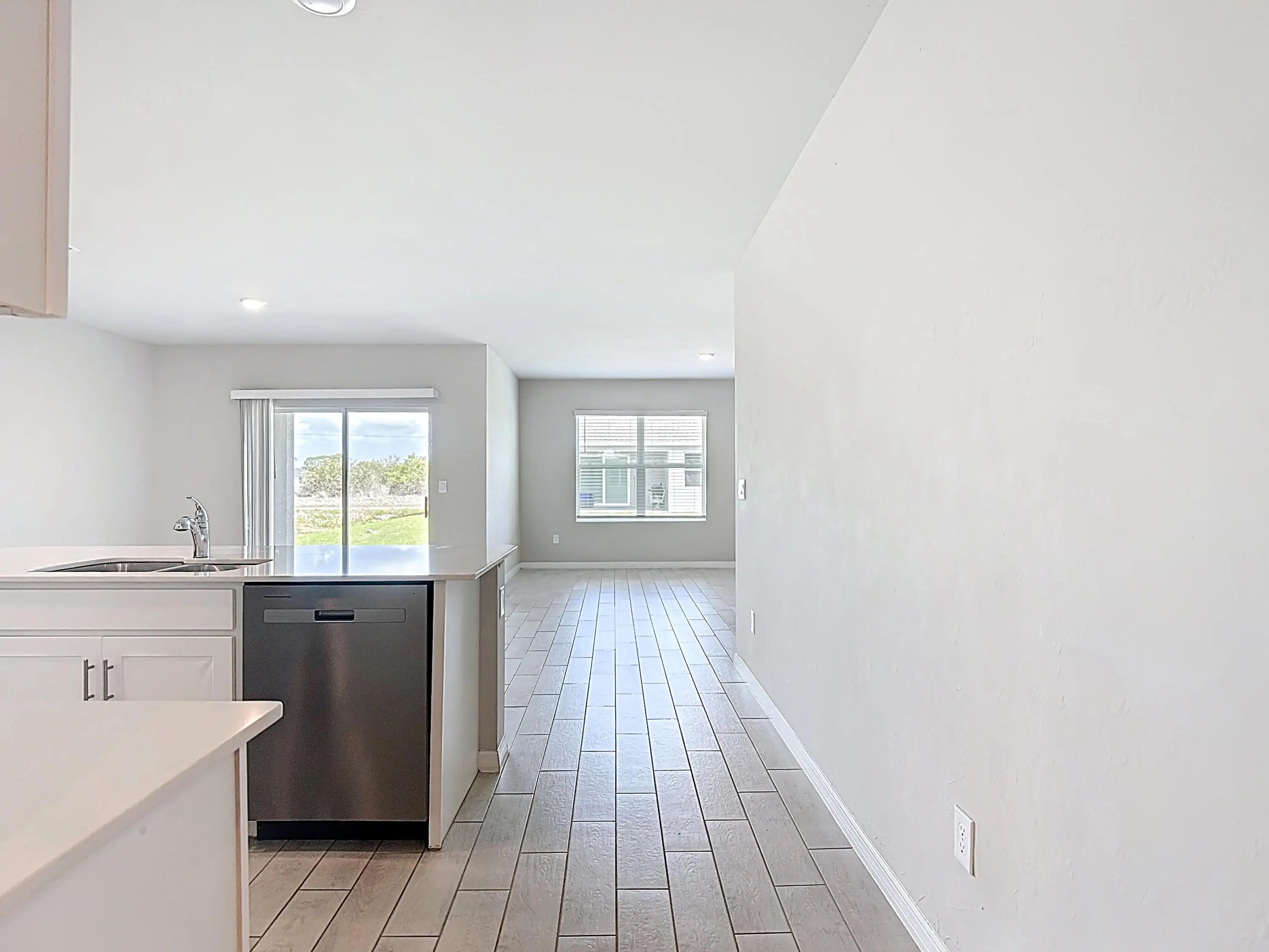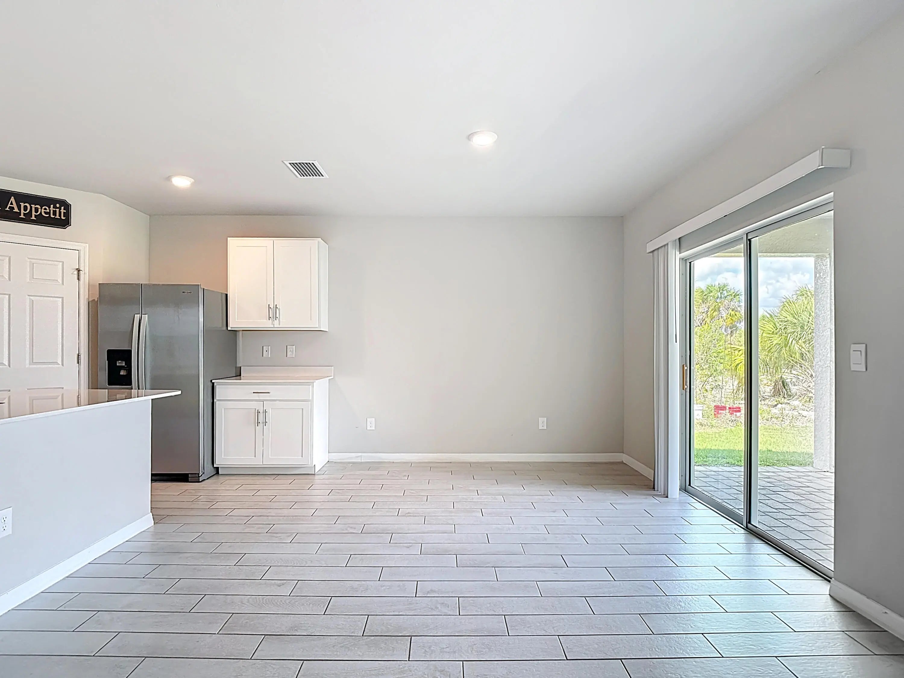 Enjoy relaxing on the covered lanai in this serene country setting. 4 bedrooms, 2 bathrooms, one-story home in Banyan Village, featuring a bright and inviting open-concept layout. The modern kitchen offers quartz countertops, stainless steel appliances, white cabinetry, a large center island, and a walk-in pantry perfect for everyday living and entertaining. The dining and living areas overlook the covered lanai with pavers to match the driveway, creating seamless indoor-outdoor flow. The private primary suite comfortably fits a king bed and features dual vanities, a spacious walk-in closet, and a separate linen closet. Additional highlights include tile flooring throughout, abundant storage, and storm shutters for added peace of mind.