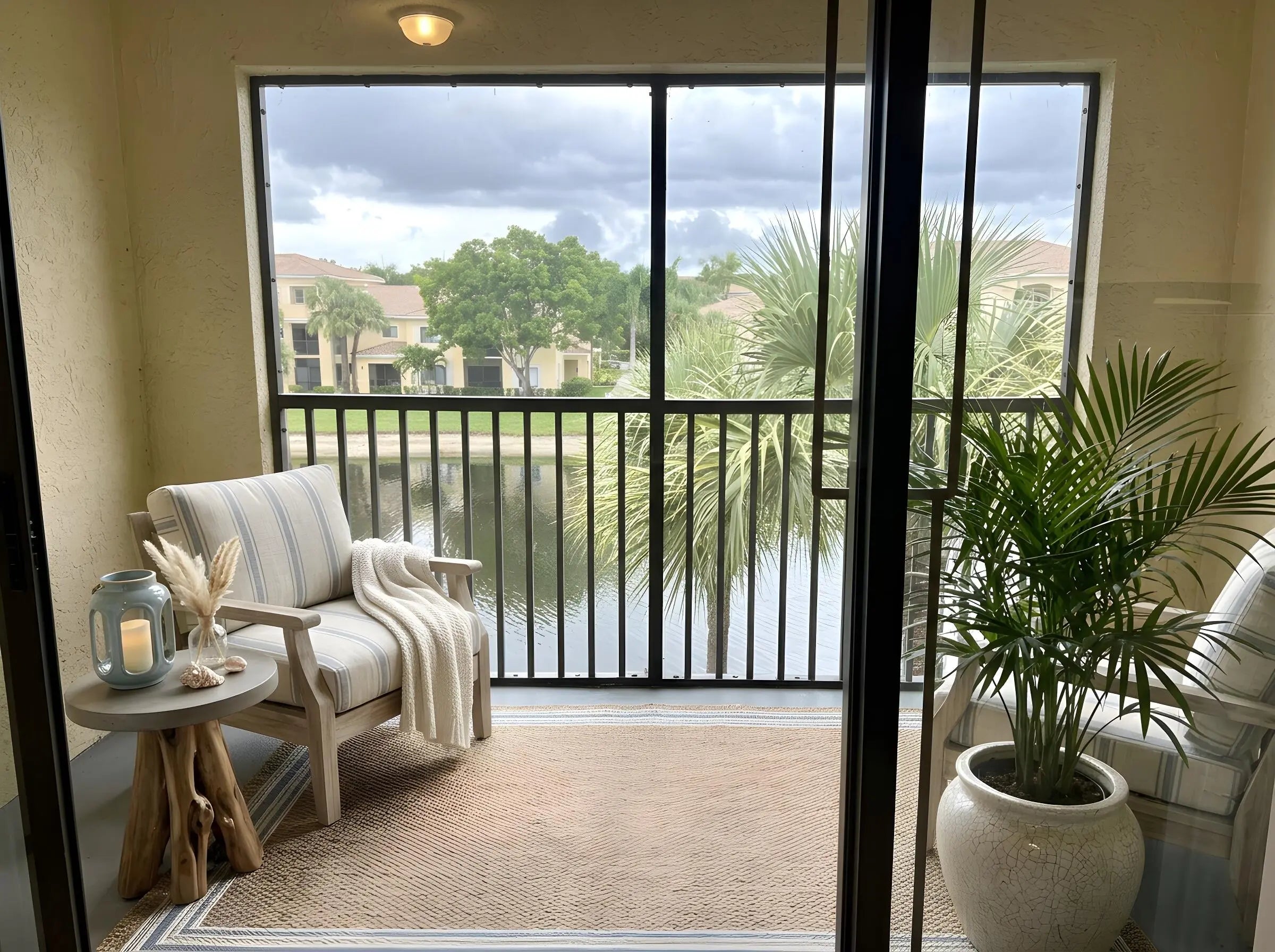 Luxurious waterfront condo in the heart of Palm Beach Gardens! This rare 3BR/2BA residence features light-colored flooring, abundant natural light, and a bright open layout. The updated kitchen and bathrooms offer modern finishes, while spacious bedrooms include walk-in closets and ample storage throughout. A full-size laundry room adds everyday convenience. Enjoy serene fountain views from your private screened balcony—perfect for relaxing or entertaining. Residents enjoy resort-style amenities including a lakeside pool, hot tub, sauna, steam room, fitness center, pickleball and tennis courts, clubhouse, business center, playground, car wash, and EV charging. Pet-friendly community ideally located within walking distance to shopping, dining, and fitness, with easy access to major highways