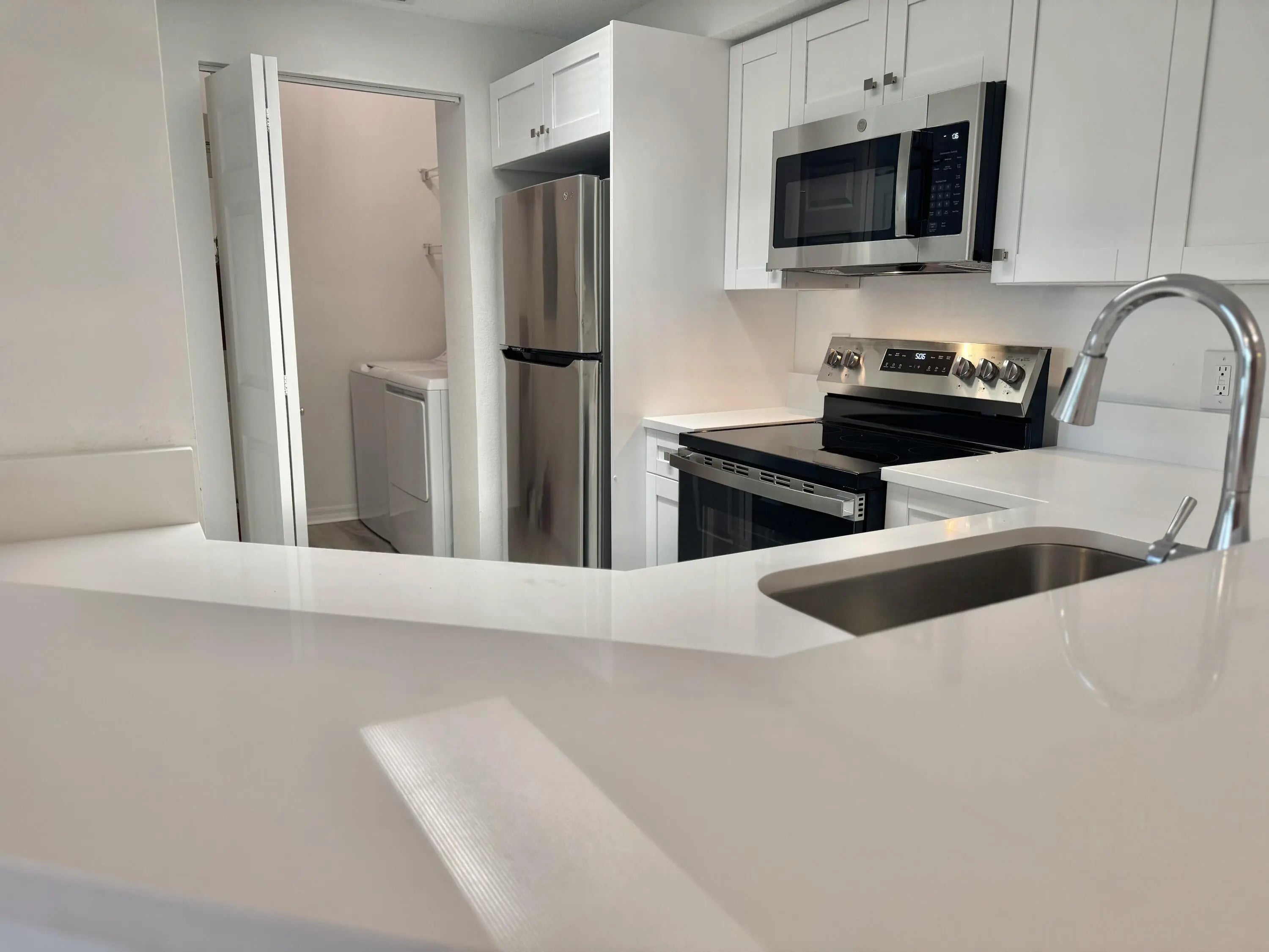 Dryer, Dishwasher, Electric Range, Microwave, Refrigerator, Washer