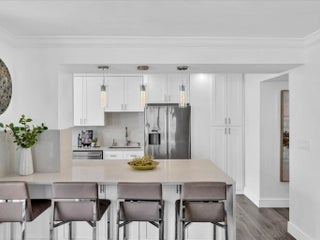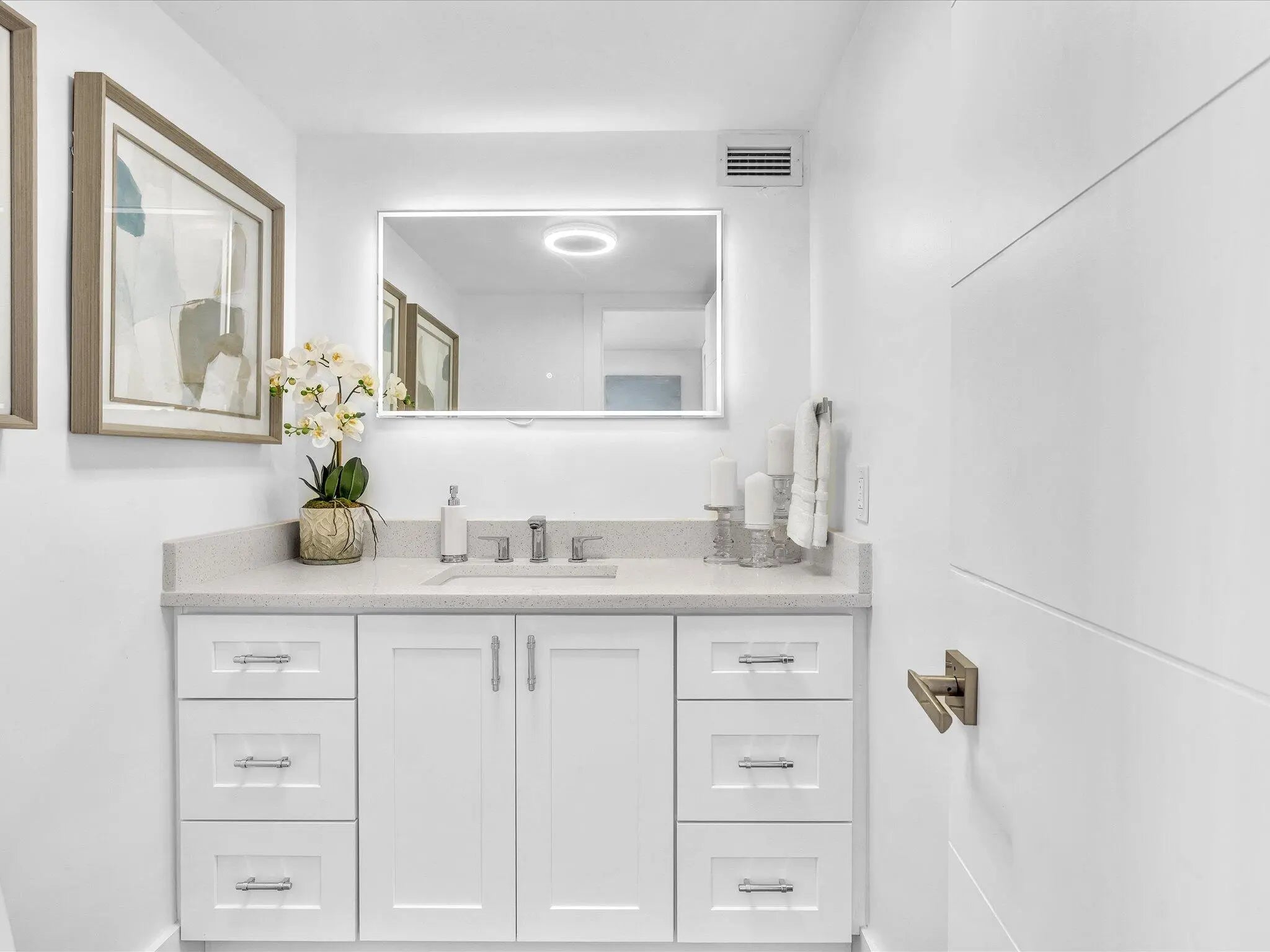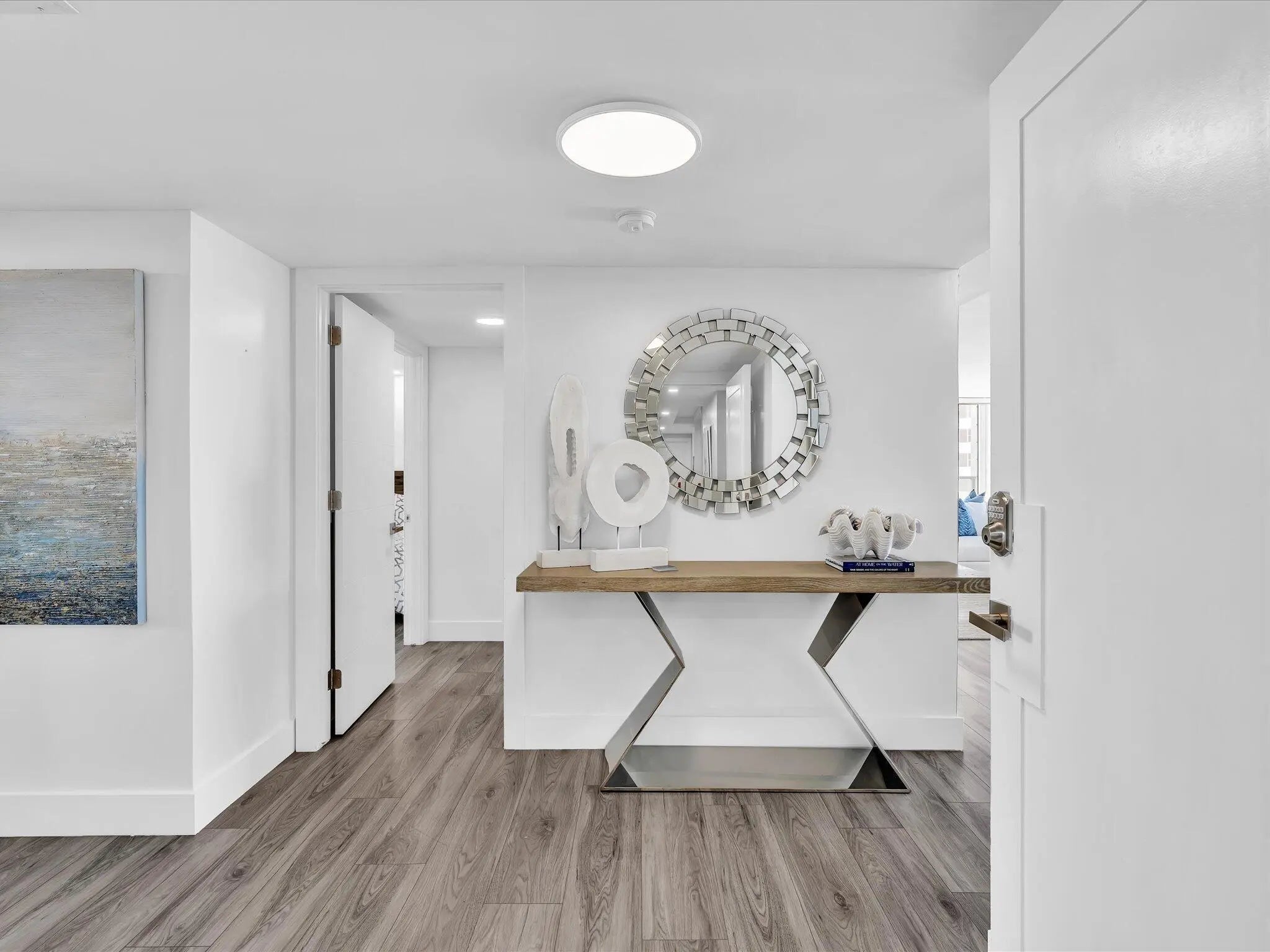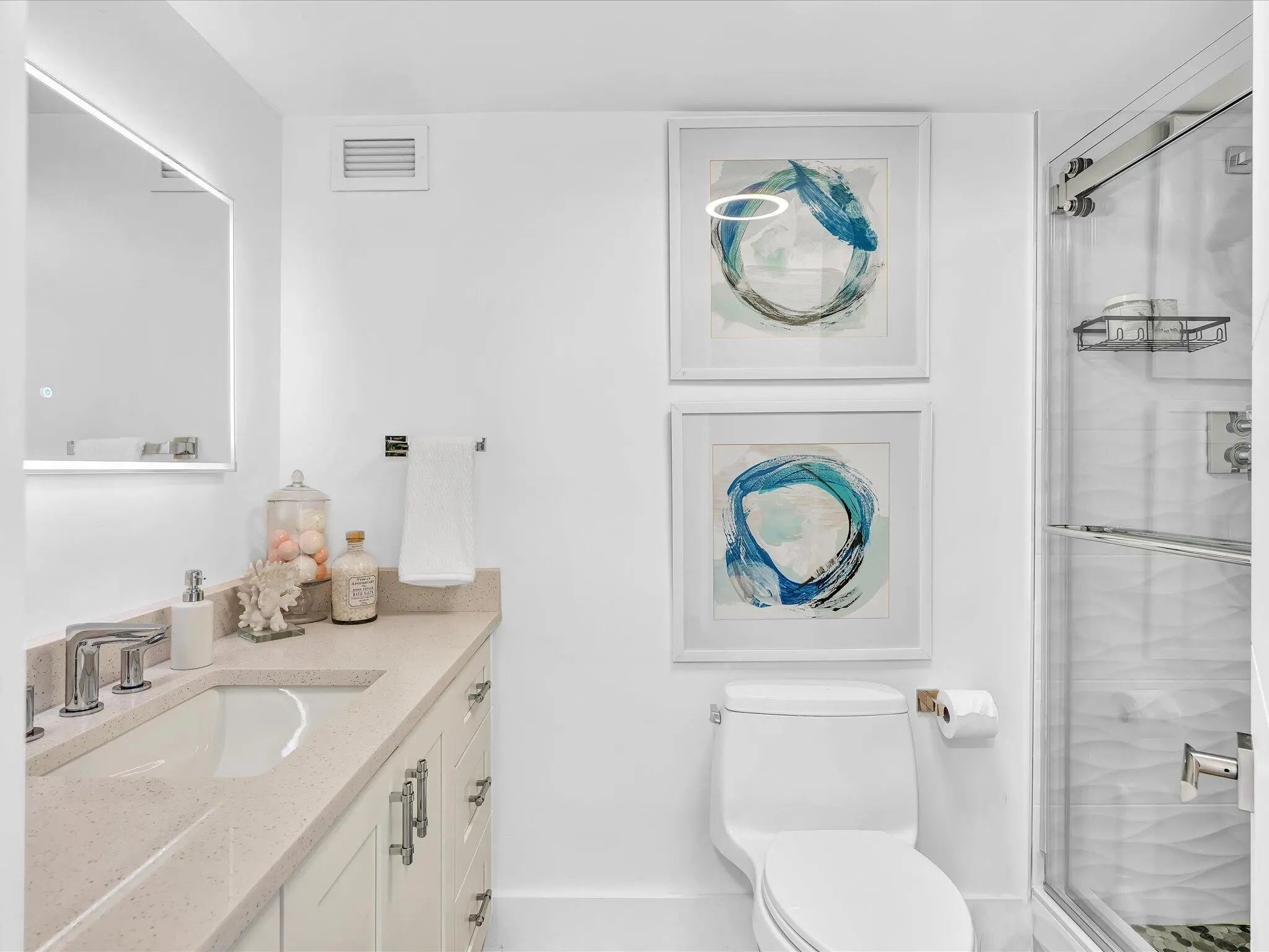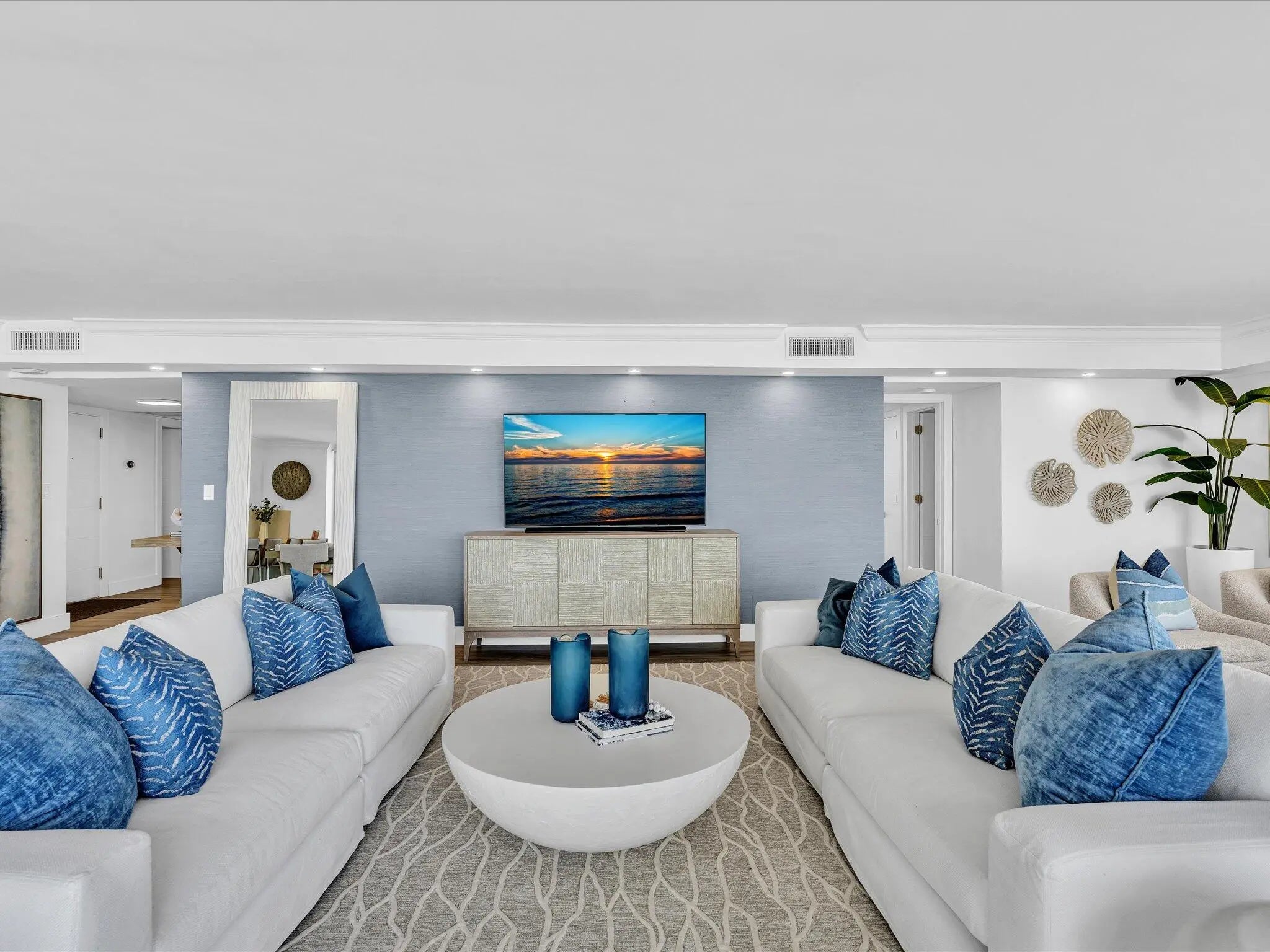 Experience over 2,000 square feet of direct oceanfront living in this beautifully renovated corner residence at Plaza East. This 3-bedroom, 2.5-bath home offers a bright, open layout with a semi-private elevator and stunning ocean views from the moment you enter. The modern kitchen features quartz countertops, shaker cabinetry, and Bosch stainless steel appliances, seamlessly connecting to the living and dining areas. Renovated bathrooms showcase high-quality finishes, while luxury vinyl flooring runs throughout. Accordion shutters provide added peace of mind. Plaza East offers resort-style amenities, a rentable guest suite, fully funded reserves, and completed 50-year recertification,SIRS and budgeted at full reserves. One of the few "vintage buildings" that is financially secure !