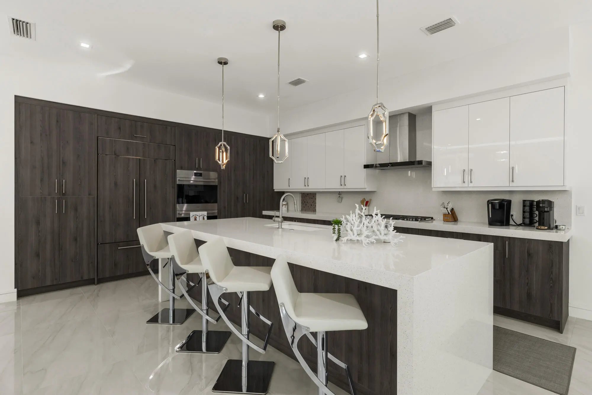 PRIVATE contemporary residence 400 yards fr the seaside haven of Juno Beach. Boutique enclave of 22 ultra luxury residences. Expansive spaces bathed in an abundance of natural light. Walls of glass. 10 ft impact sliders. Motorized shades. Palm Beach designer appointed every imaginable detail. Open floorplan w/5 bedrooms/5 baths/2car garage. Hydraulic elevator. Steel and glass staircase. Great room floorplan. Luxurious over the top zen primary suite and bath. Bedroom size custom closet.Chefs kitchen w/Wolf appliances and sleek custom cabinetry. 10 ft quartz center island. Huge custom walkin closets. 27ft rooftop deck w/ocean views and Media Room. Resort style heated salt waterfall pool/spa. Summer kitchen. Lushly landscaped. Turf grass. South exposure. Smart high speed technology/security. Five bedrooms en-suite with king size beds. One bedroom with queen size bed. Flat screen TVS in all bedrooms and deck. Summer kitchen. One year lease ONLY. No cats plz