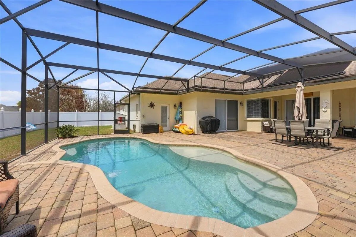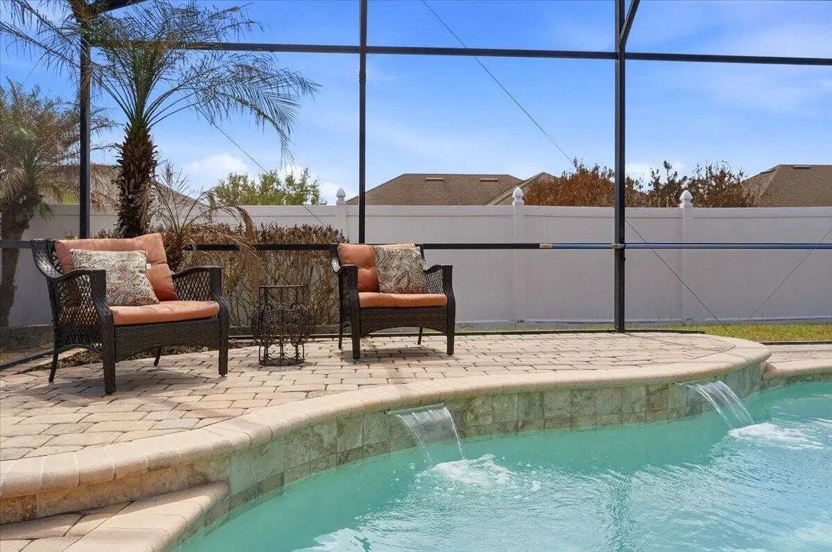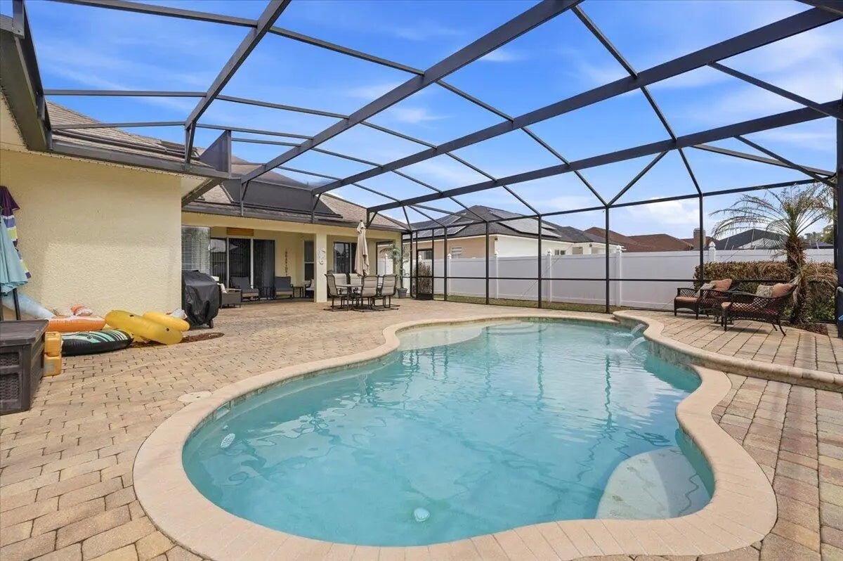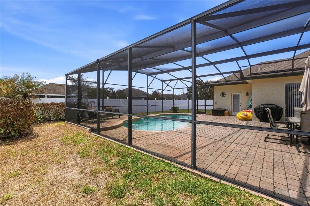 Welcome to your ideal Florida home, nestled in a quiet gated community only a short drive to the hustle and bustle of Orlando, the fun capital. This cozy 4 bed 3 bath home offers a perfect blend of comfort, style and convenience. A warm and inviting living space with an open- concept layout that flows effortlessly from the entry through the living and dining areas ideal for everyday living or entertaining.. The bedrooms provide ample comfort and privacy, designed with practical finishes. The kitchen features generous cabinet and counter space, and easy access to the main gathering areas. Natural light creates a bright and airy atmosphere throughout. Outdoor living is a breeze: step onto an enclosed patio with gorgeous pool and fenced in yard where you can entertain or simply relax.